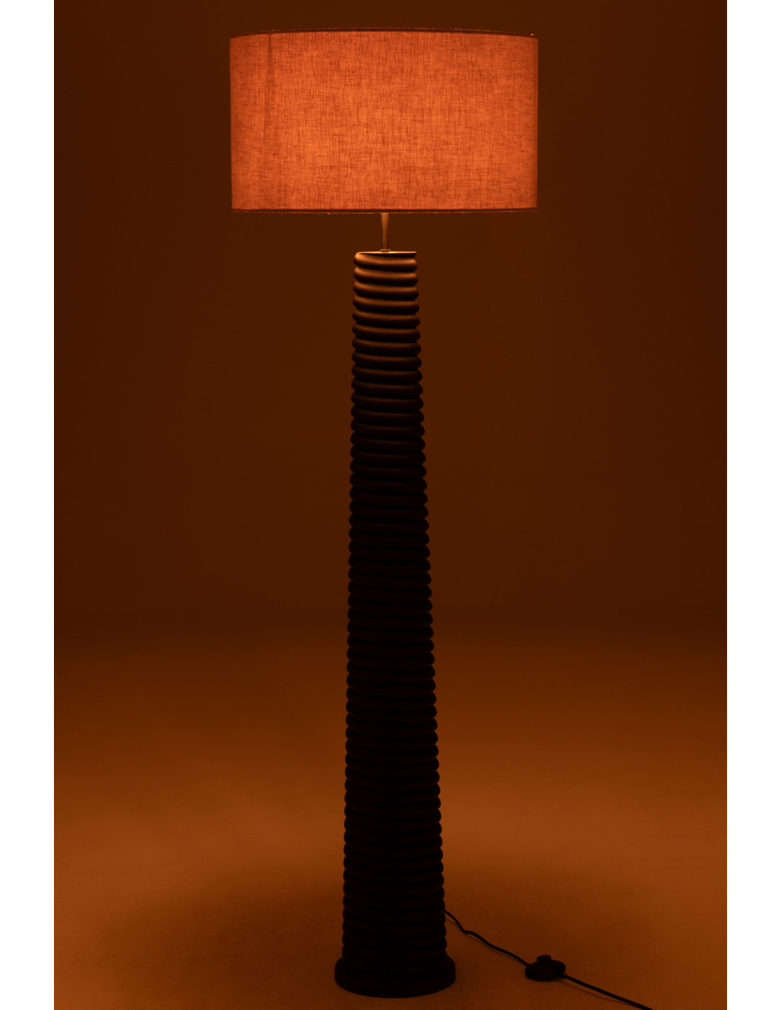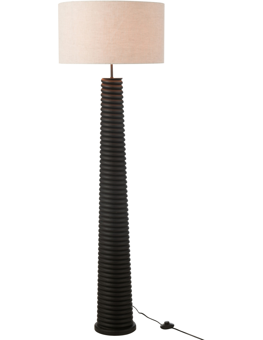 Lampadaire original fileté Hauteur 160 cm en Bois d'ailanthus Noir Tissu Gris Varil