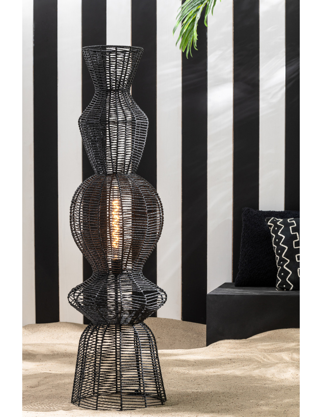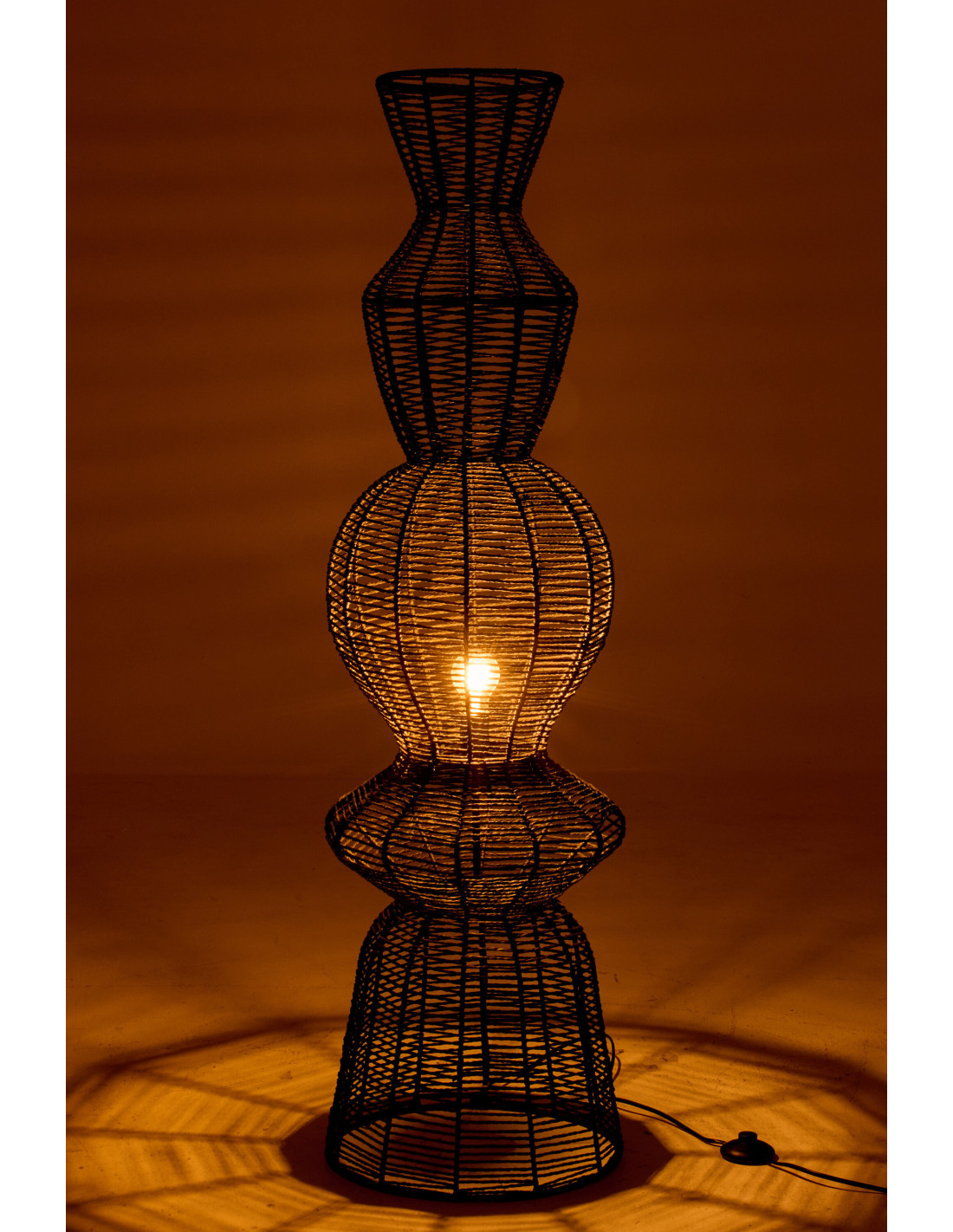 Lampadaire style ethnique moderne H 135 cm Corde Noir Tressé Métal Noctyra