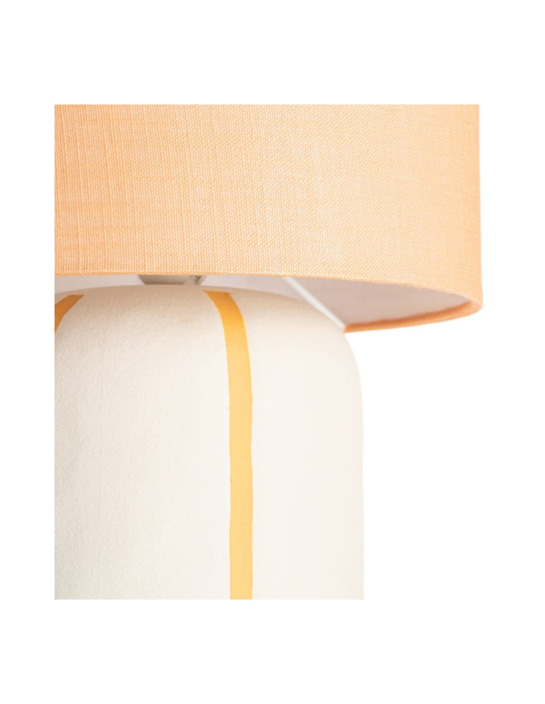 Lampadaire style rétro années 70 Hauteur 122 cm en Céramique Blanc Motif lignes Tissu Orange PVC Velira - 3