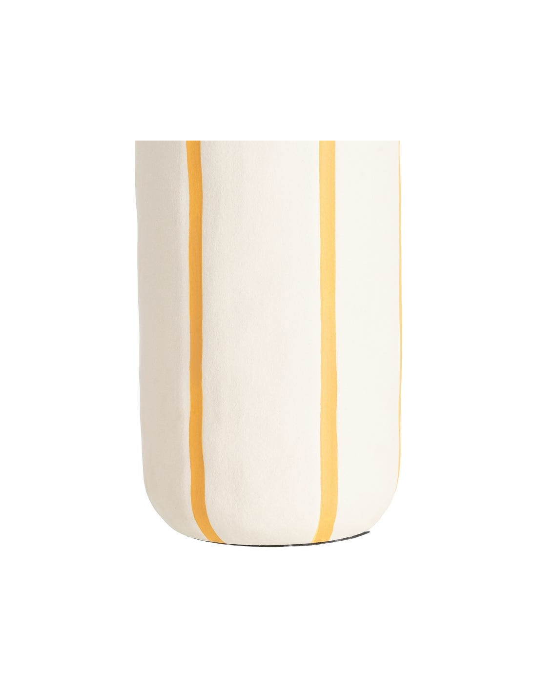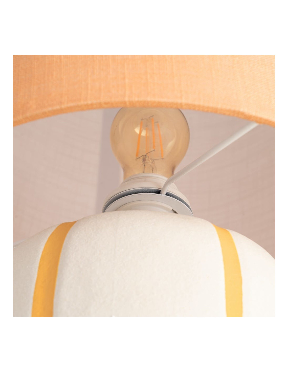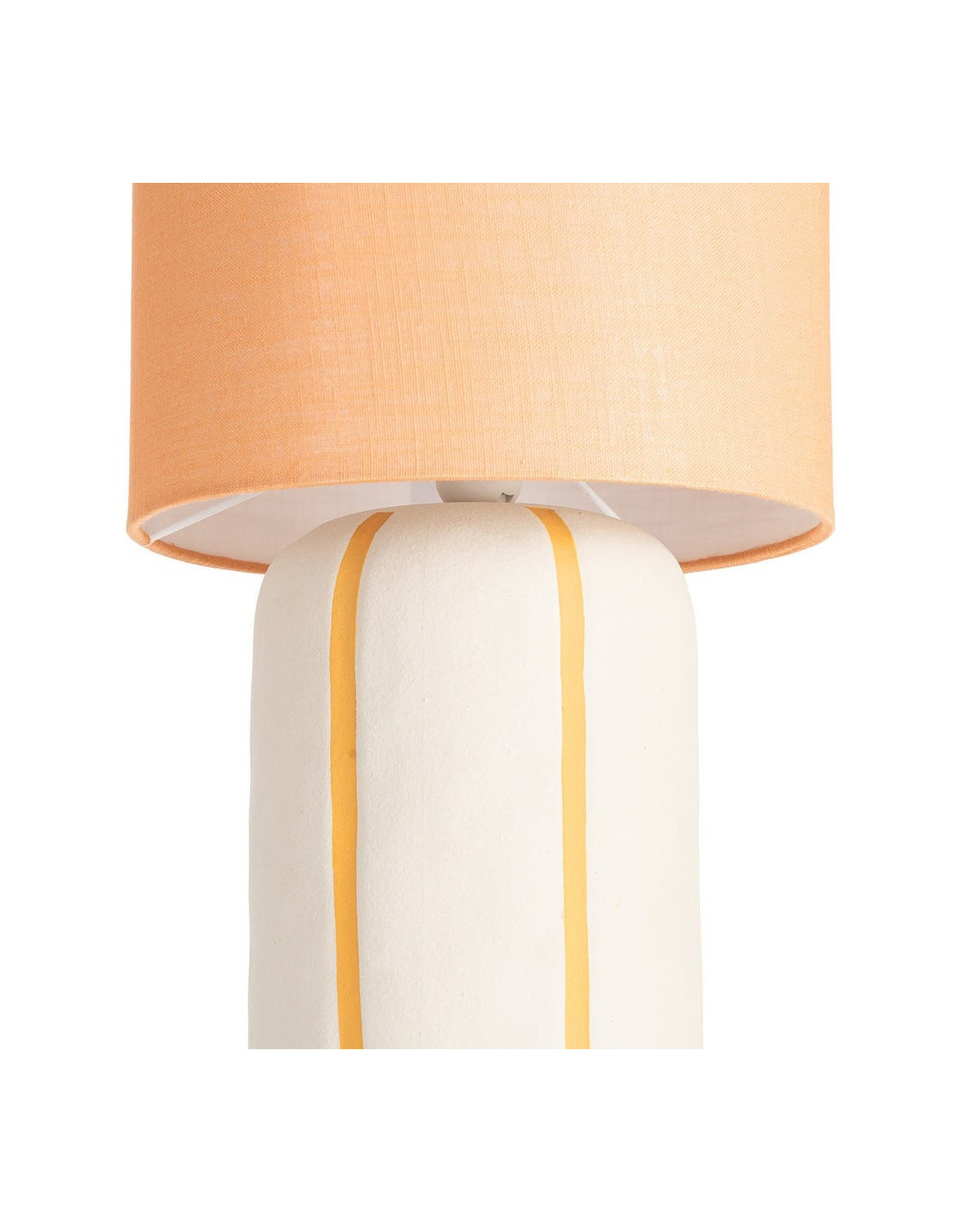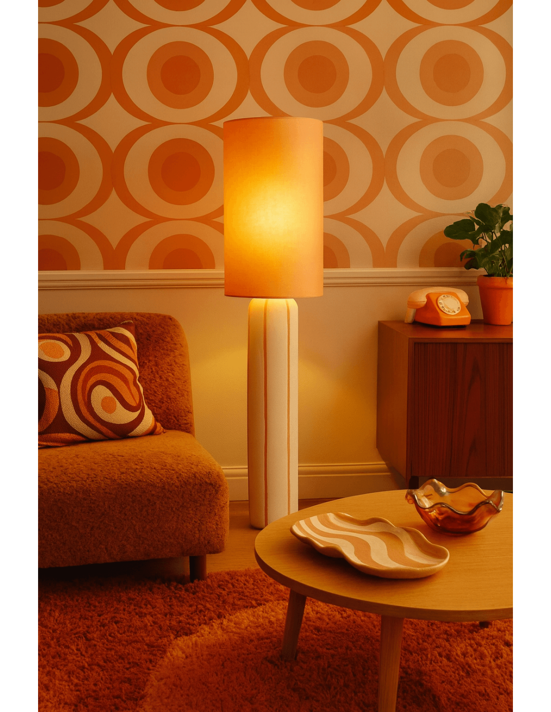 Lampadaire style rétro années 70 Hauteur 122 cm en Céramique Blanc Motif lignes Tissu Orange PVC Velira - 1