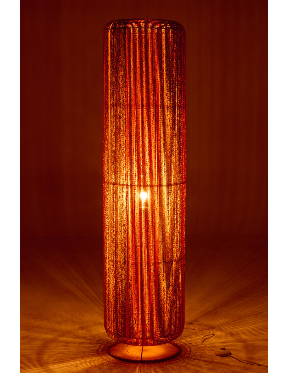 Lampadaire sur pied bohème cylindre H 138 cm Corde Naturel Orange Tressé Métal Linéora