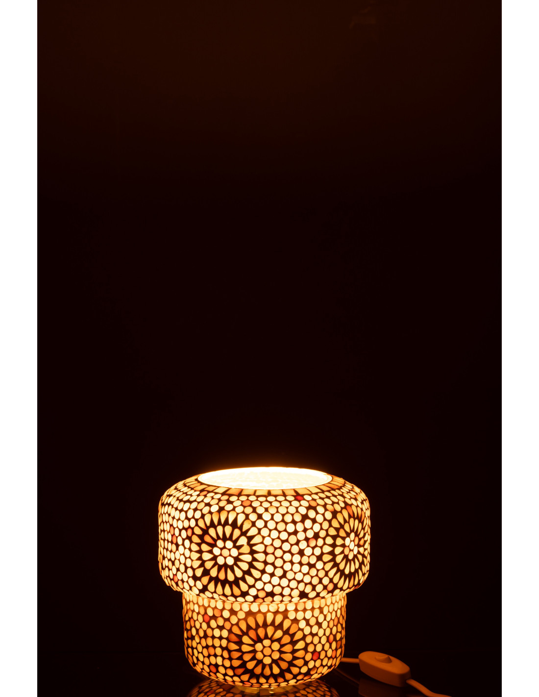 Lampe à poser Champignon style bord de mer H 18 cm Verre Beige Blanc Mosaïque Corallia