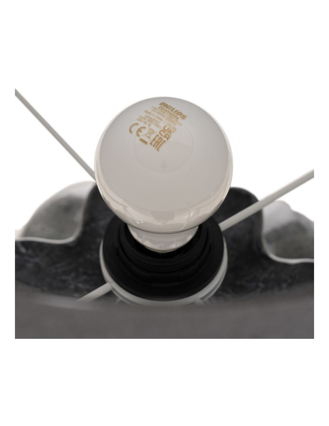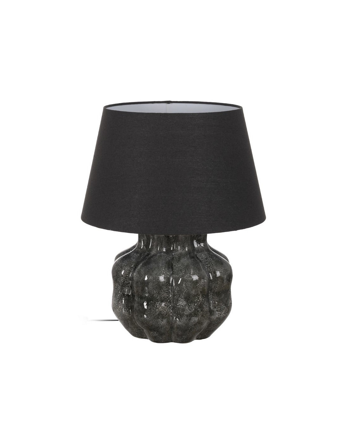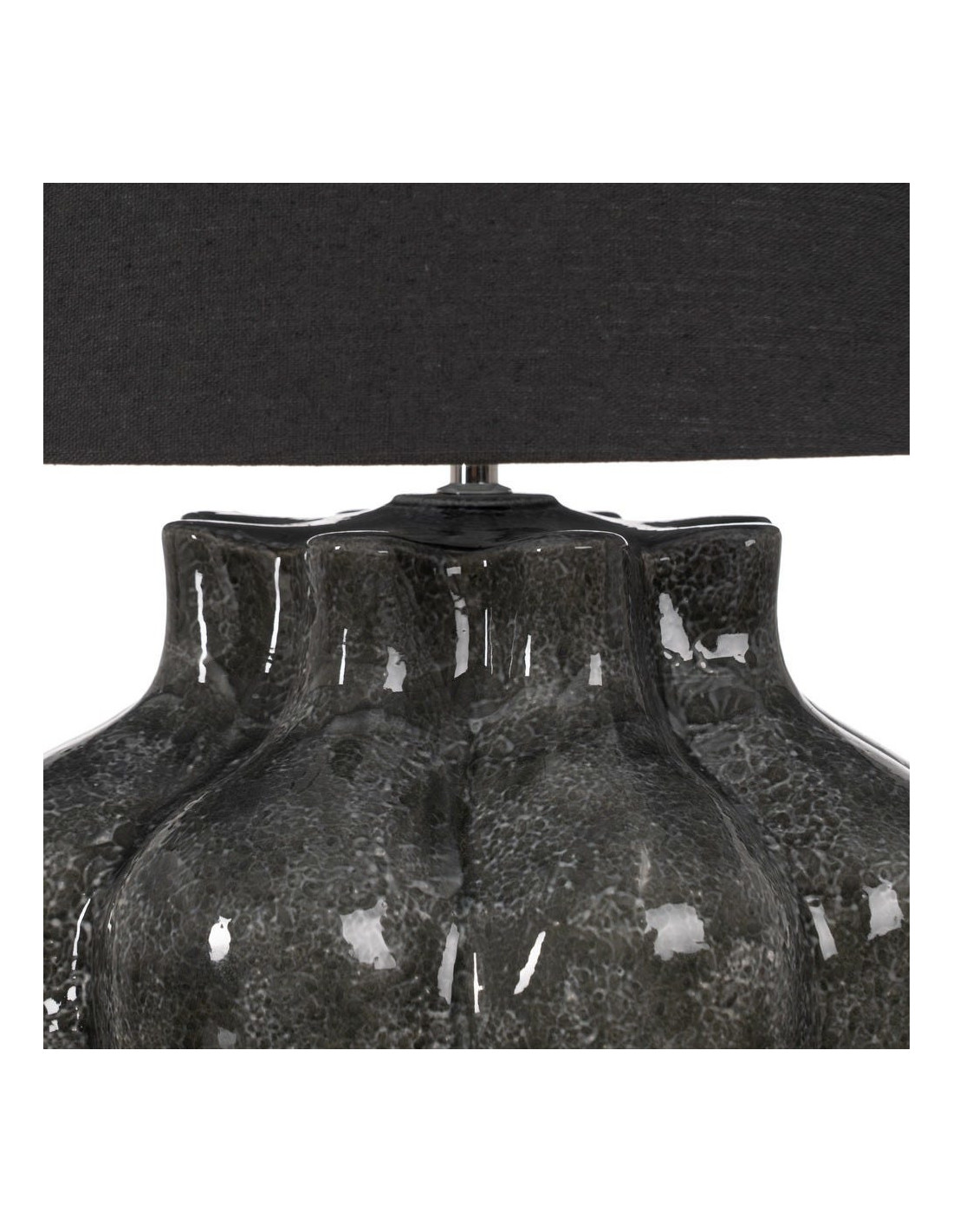 Avec sa base sculptée en céramique gris profond, cette lampe impose une esthétique forte. Les reliefs irréguliers captent la lumière et créent un effet minéral subtil.