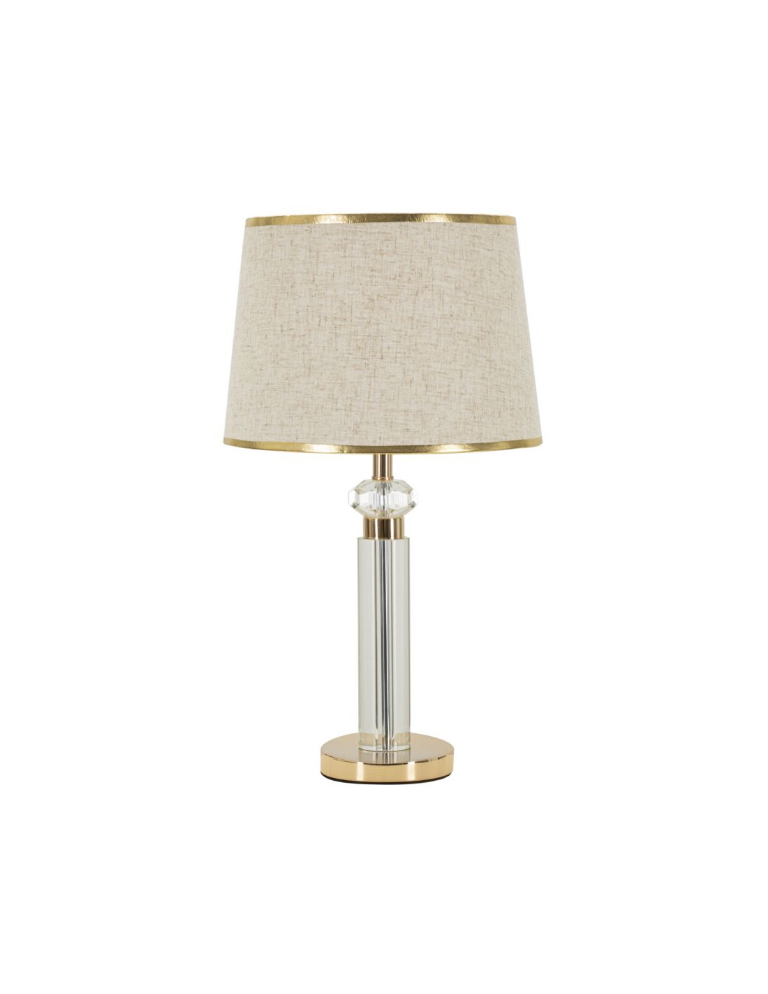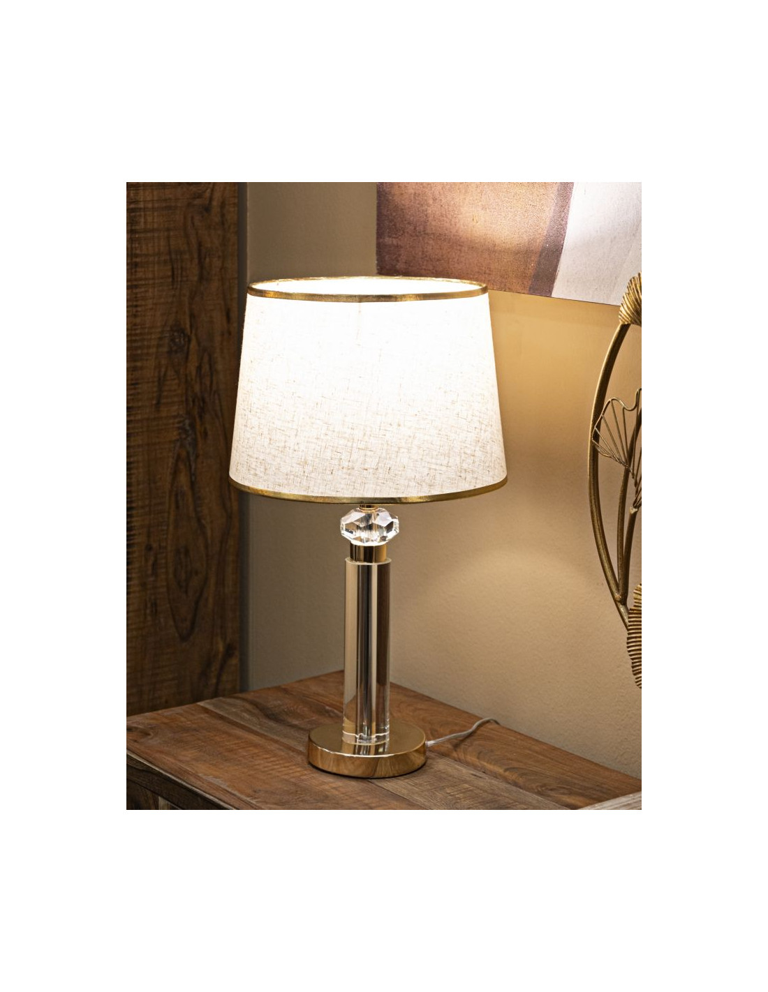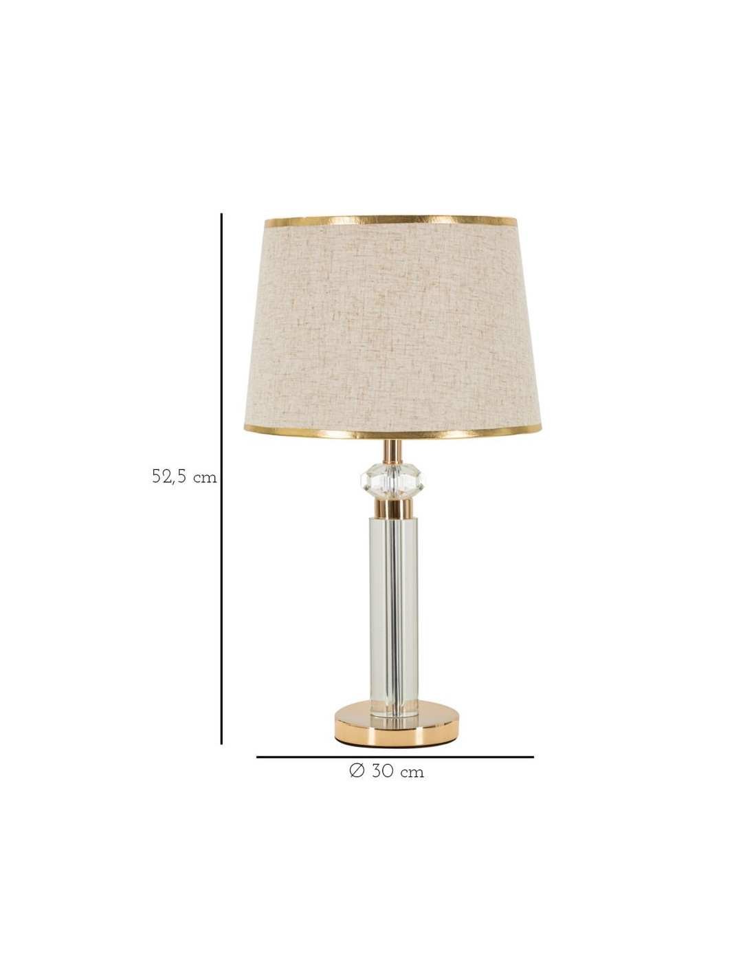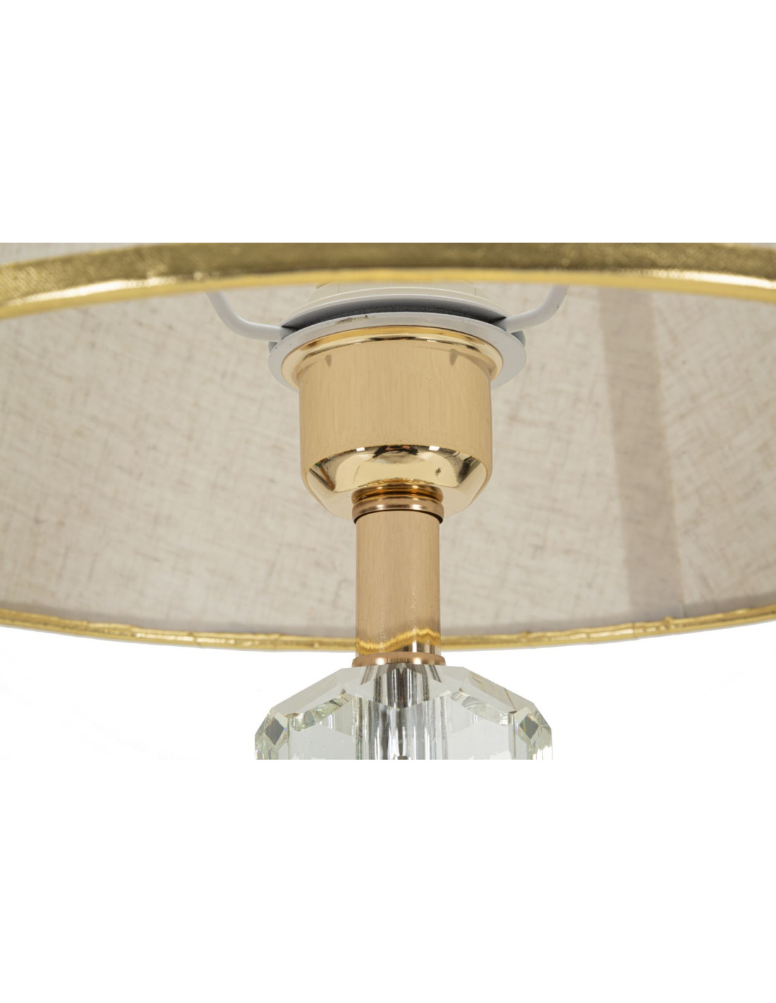 Lampe à poser design chic H 52 cm Verre Transparent Métal Doré Tissu Beige Praga