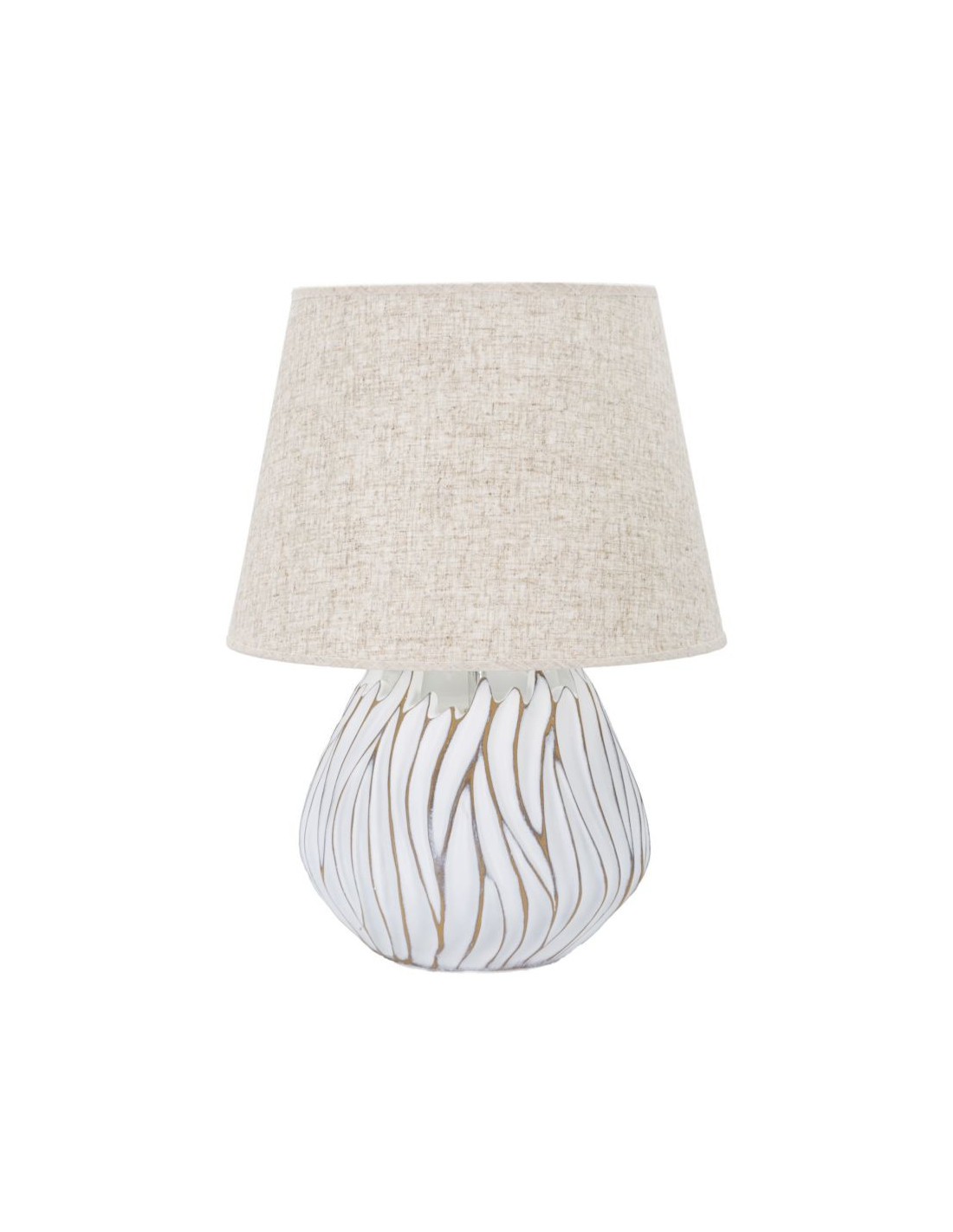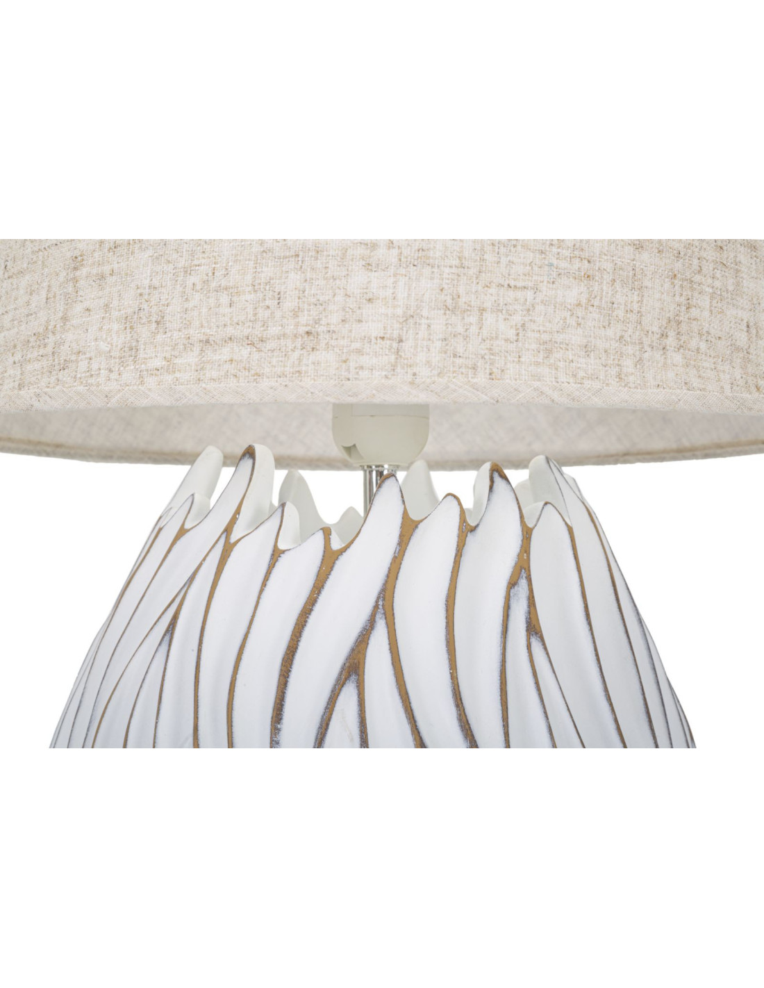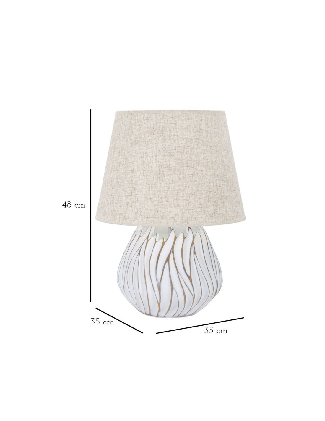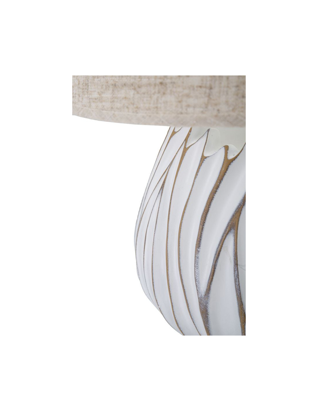 Lampe à poser design contemporain Résine Blanc Motif lignes Tissu Beige Honduras