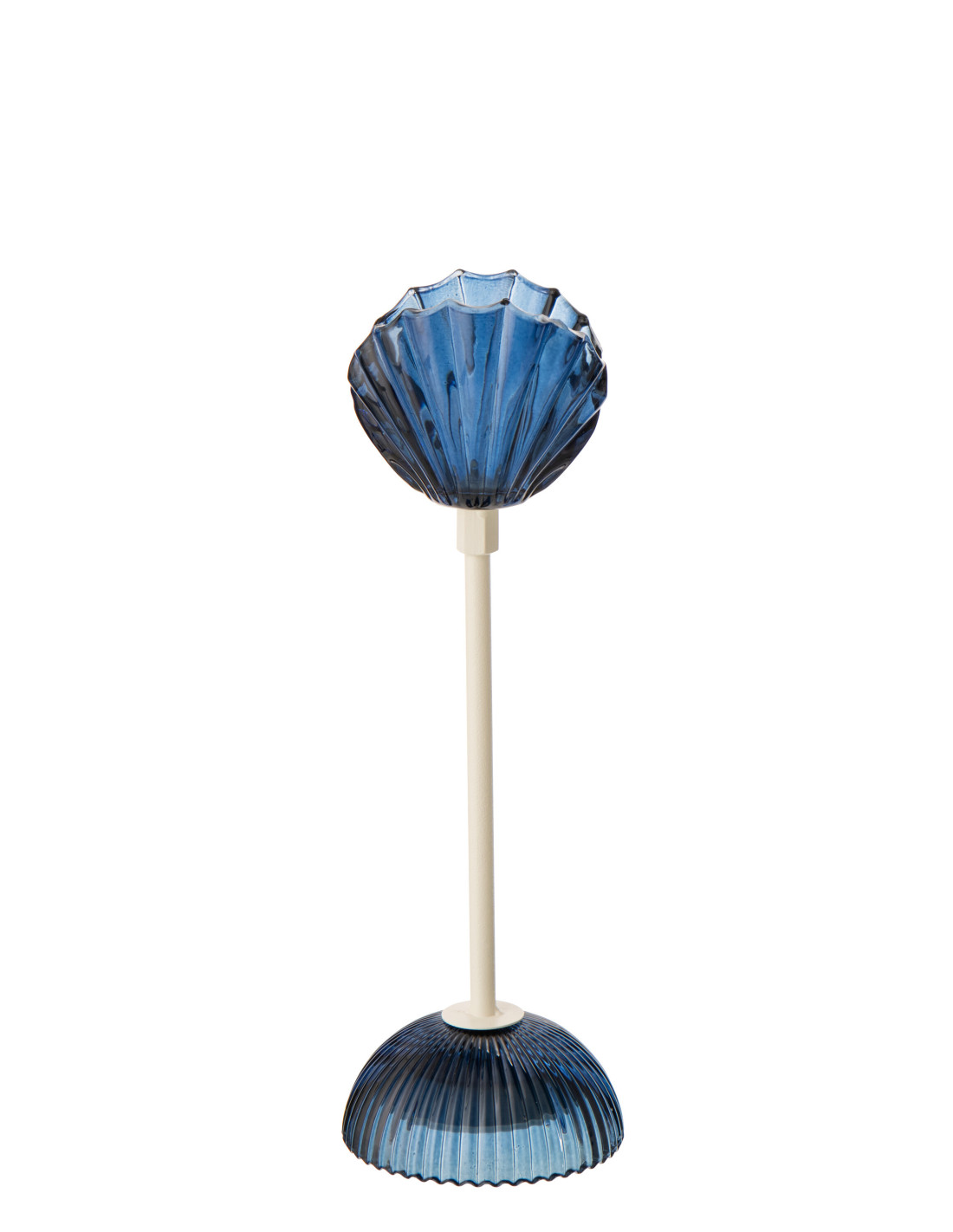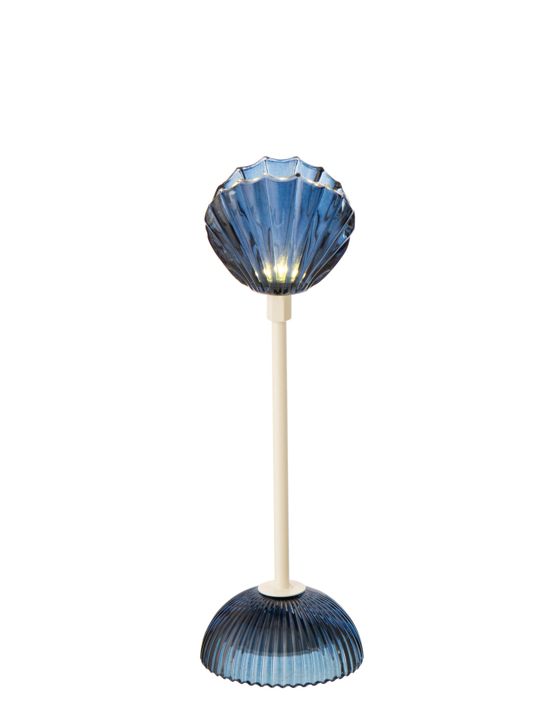 Lampe à poser design Coquillage Led H 31 cm Verre Bleu foncé Métal Blanc Shell