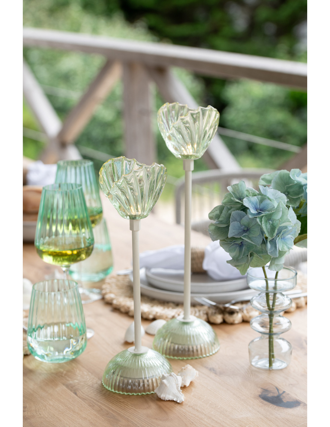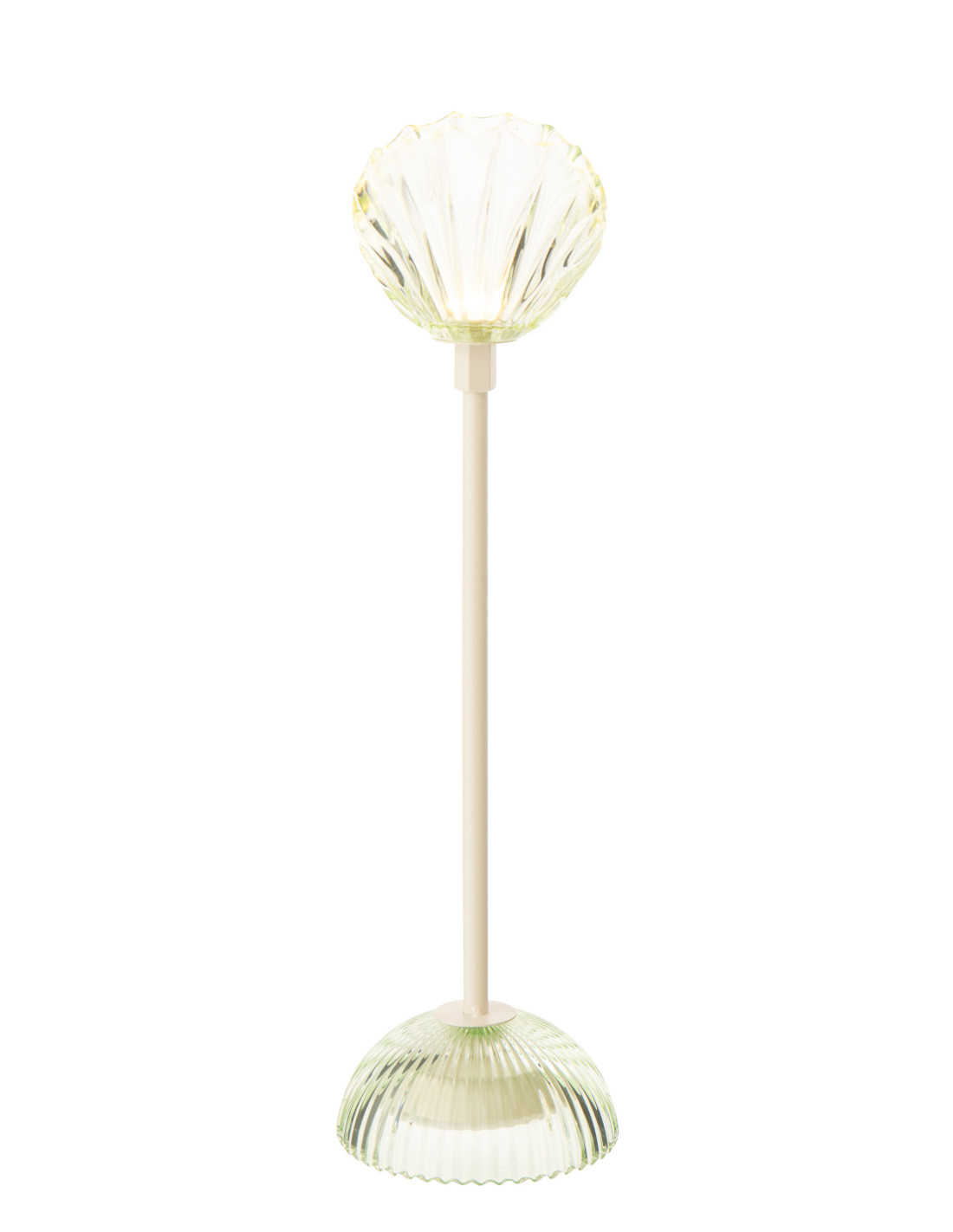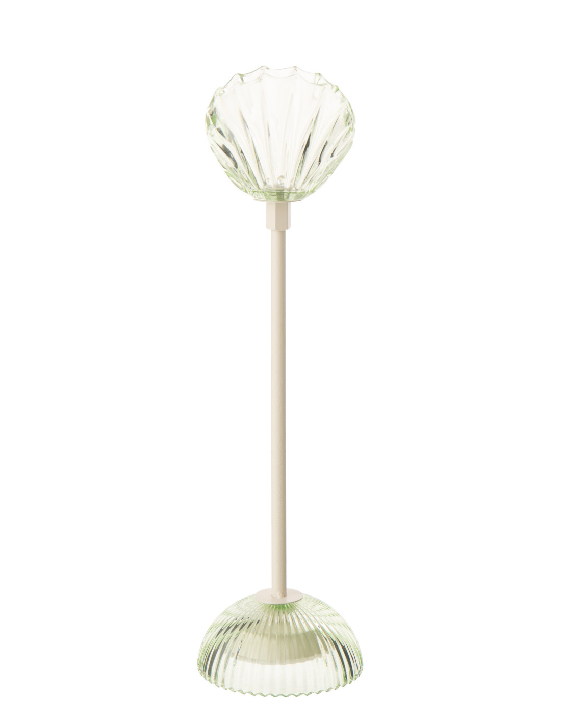Lampe à poser design Coquillage Led H 37 cm Verre Vert clair Métal Blanc Shell