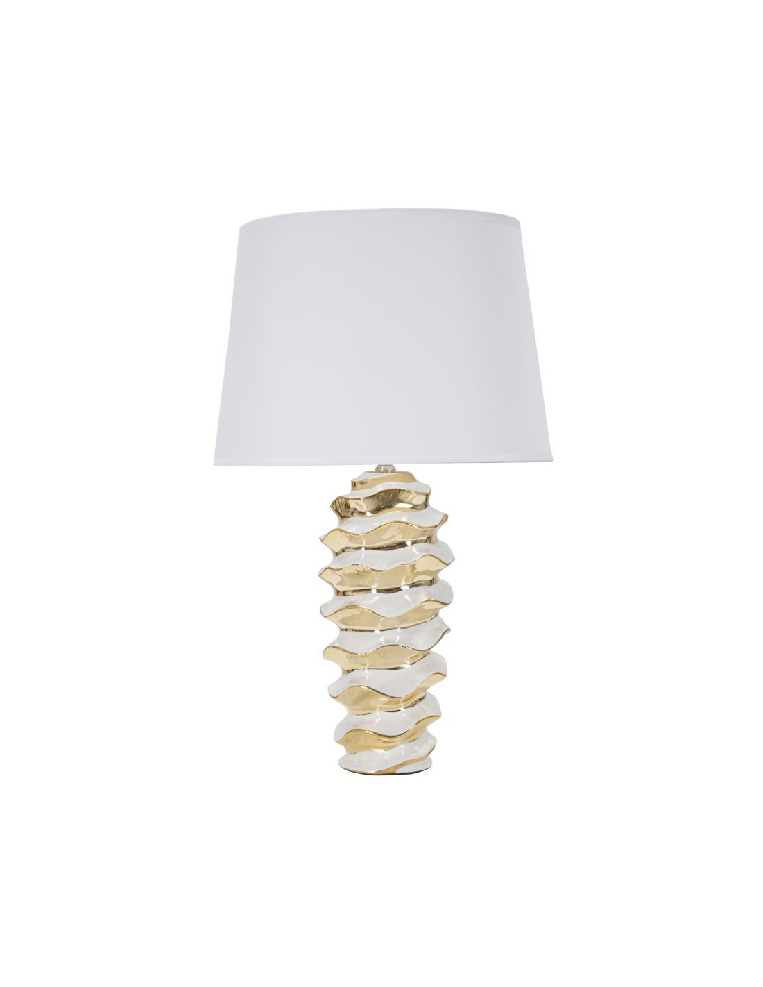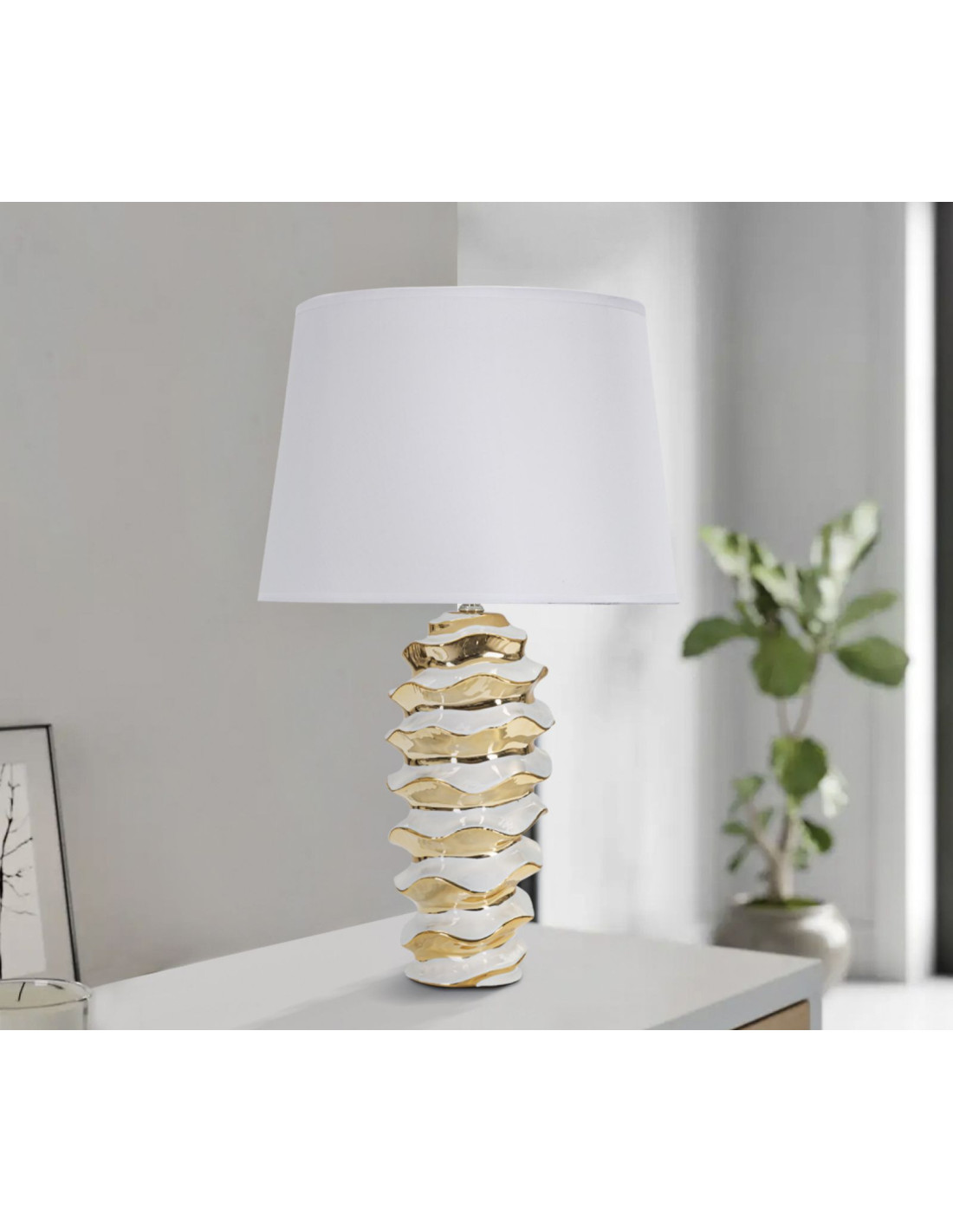 Lampe à poser design glamour H 53 cm Céramique Doré Blanc Tissu Space