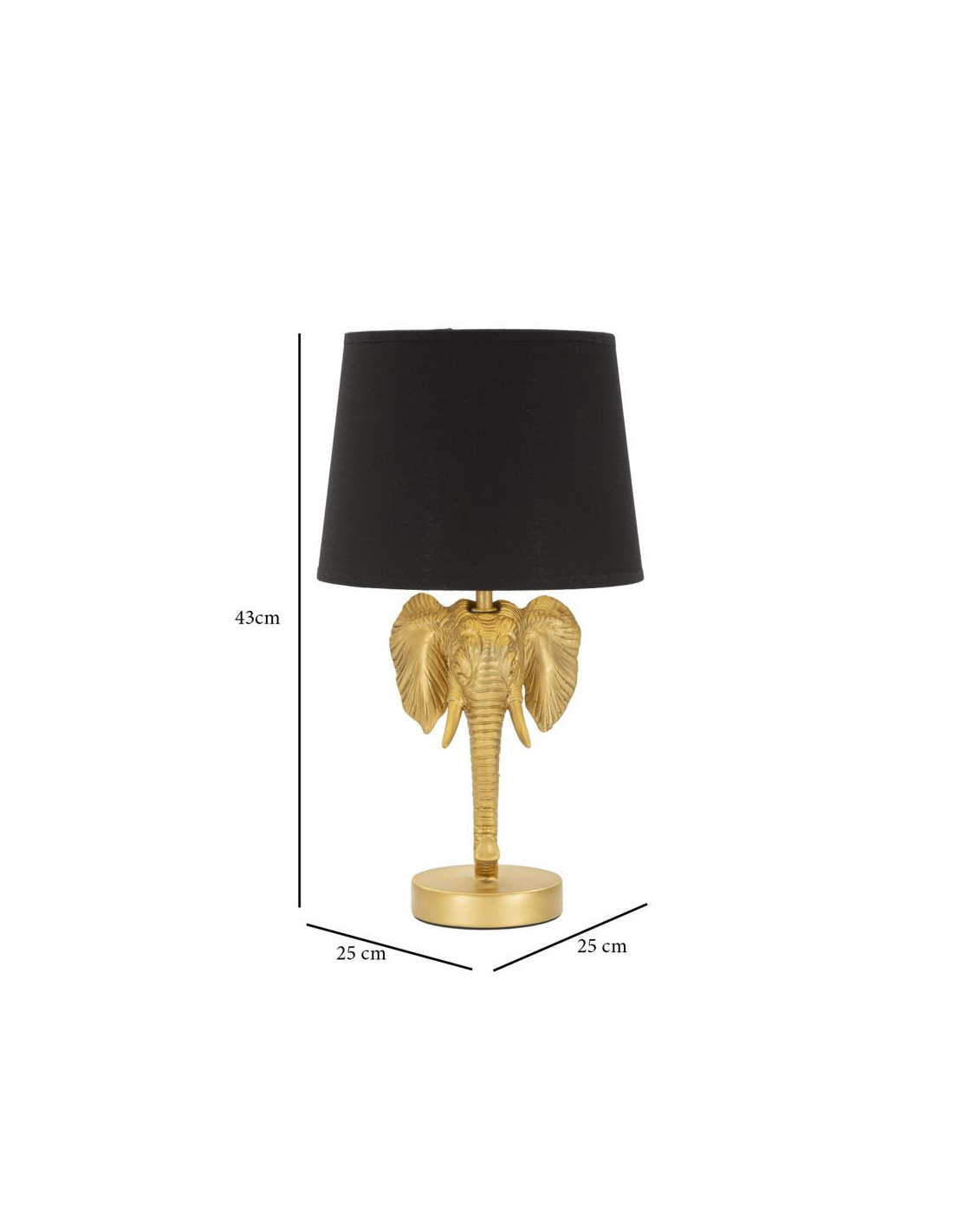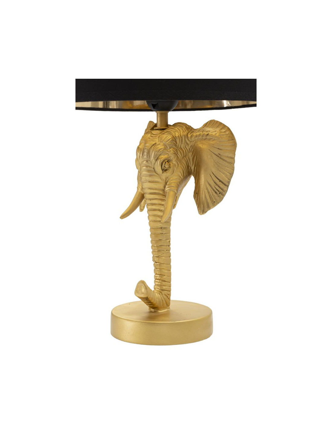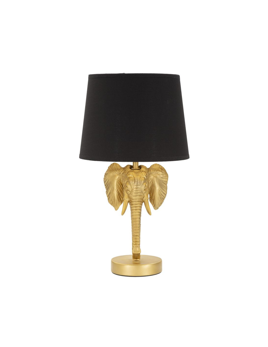 Lampe à poser design original Éléphant Résine Métal Doré Tissu Noir Elefante H 43 cm