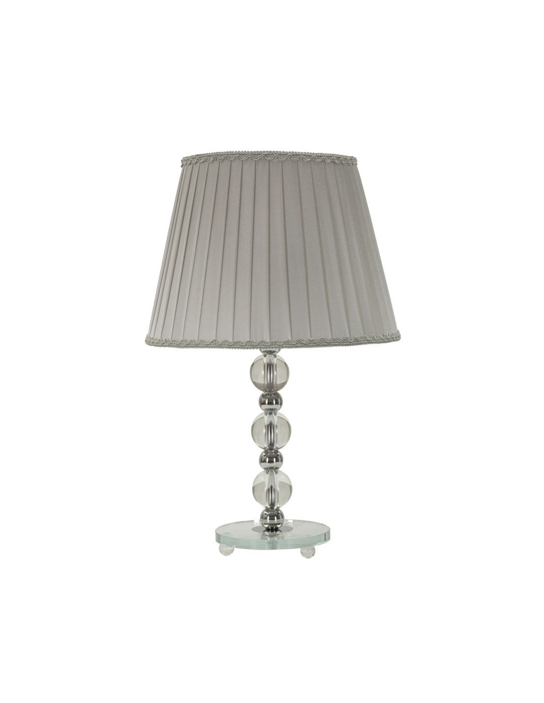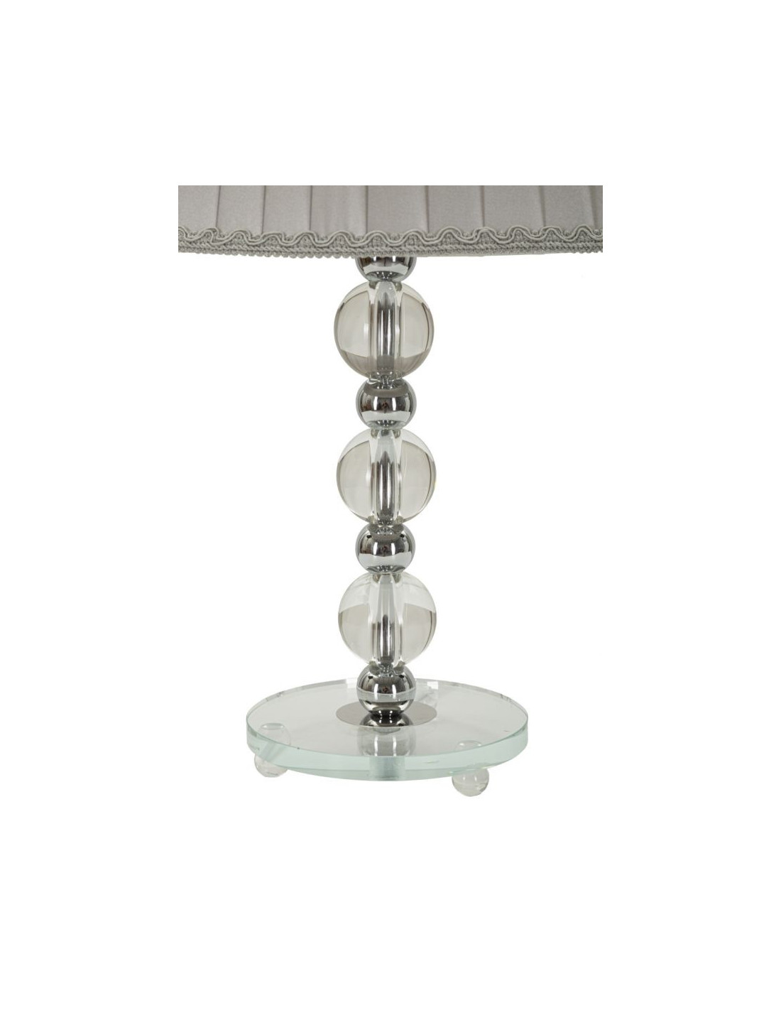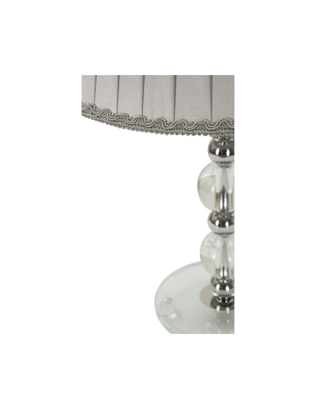 Lampe à poser glamour Hauteur 48 cm en Métal Argenté Verre Transparent Tissu Gris Tolly
