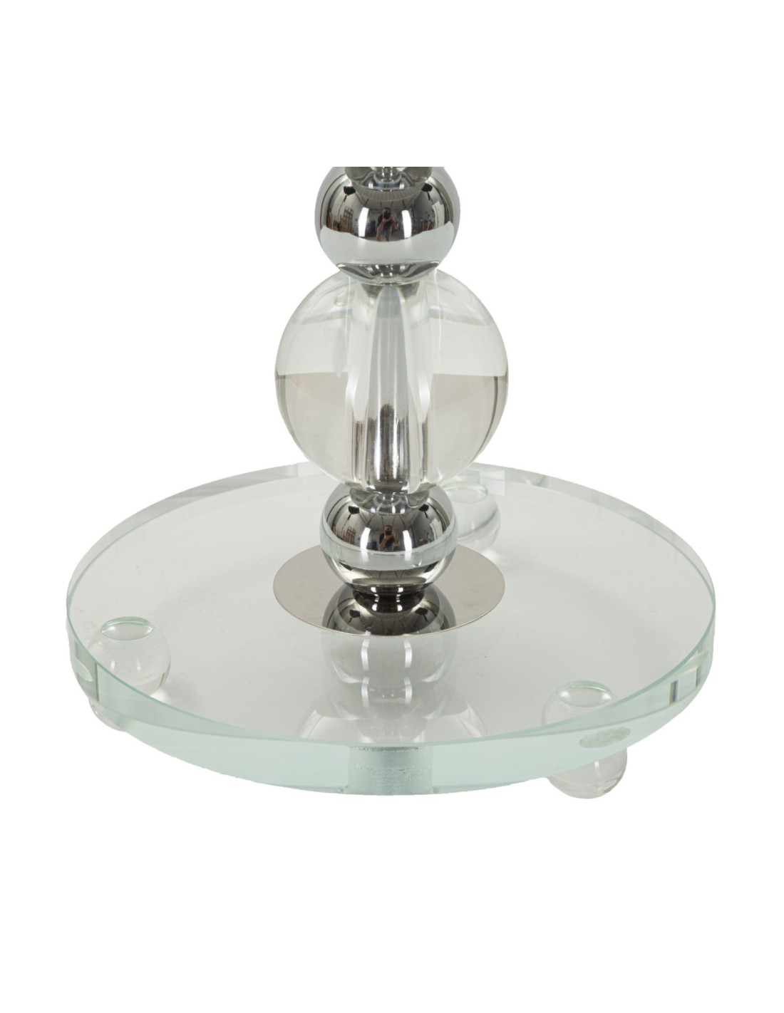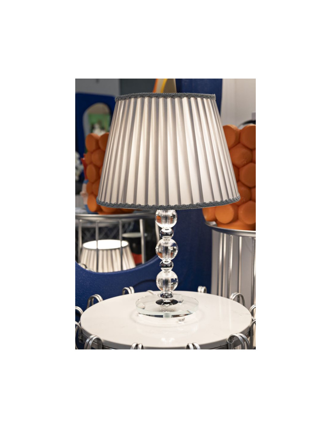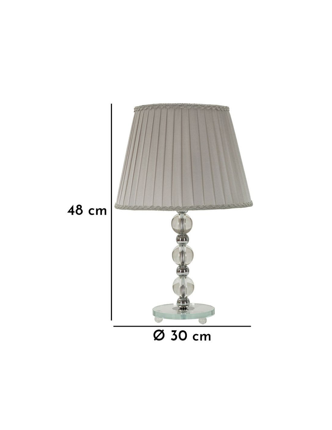 Lampe à poser glamour Hauteur 48 cm en Métal Argenté Verre Transparent Tissu Gris Tolly