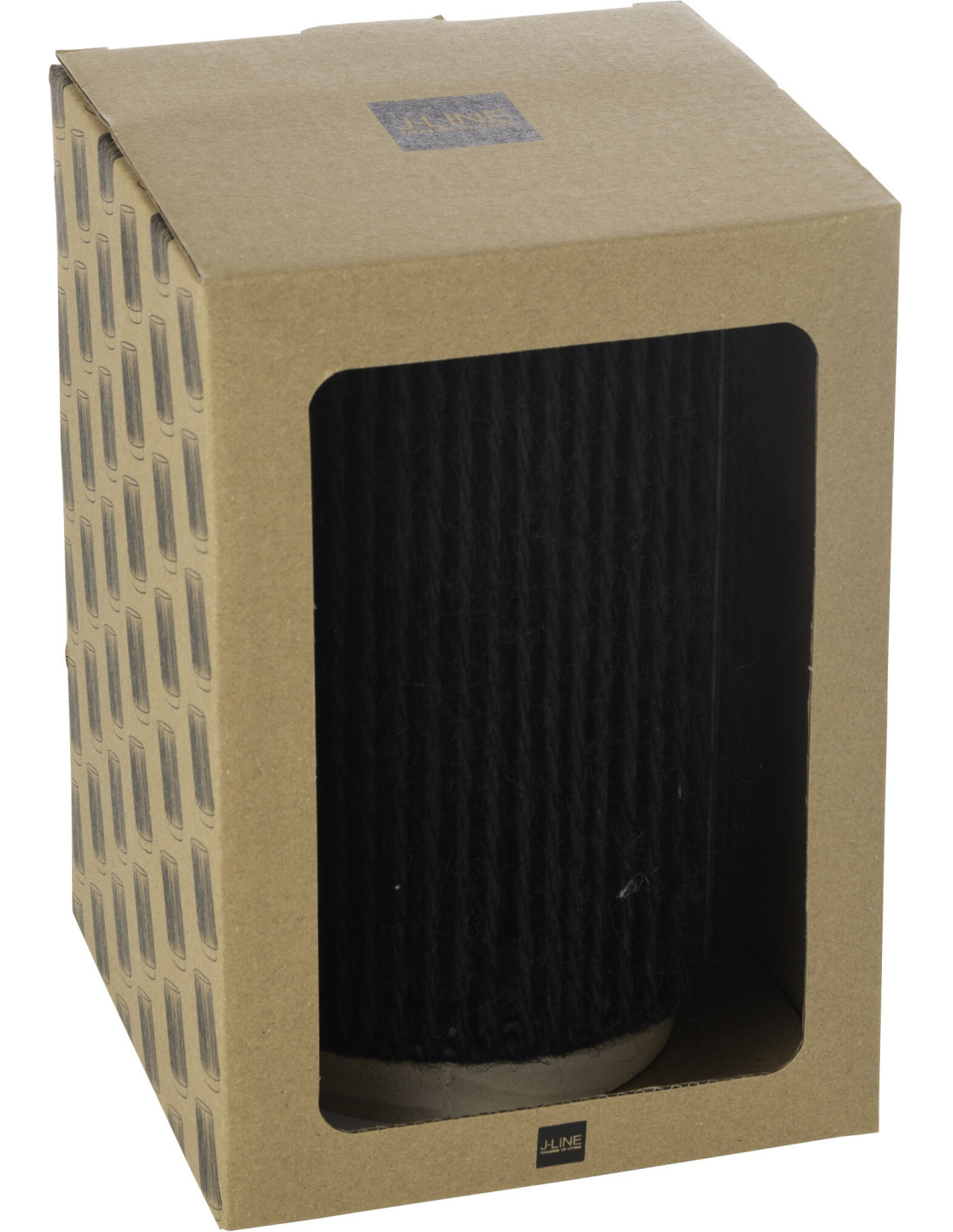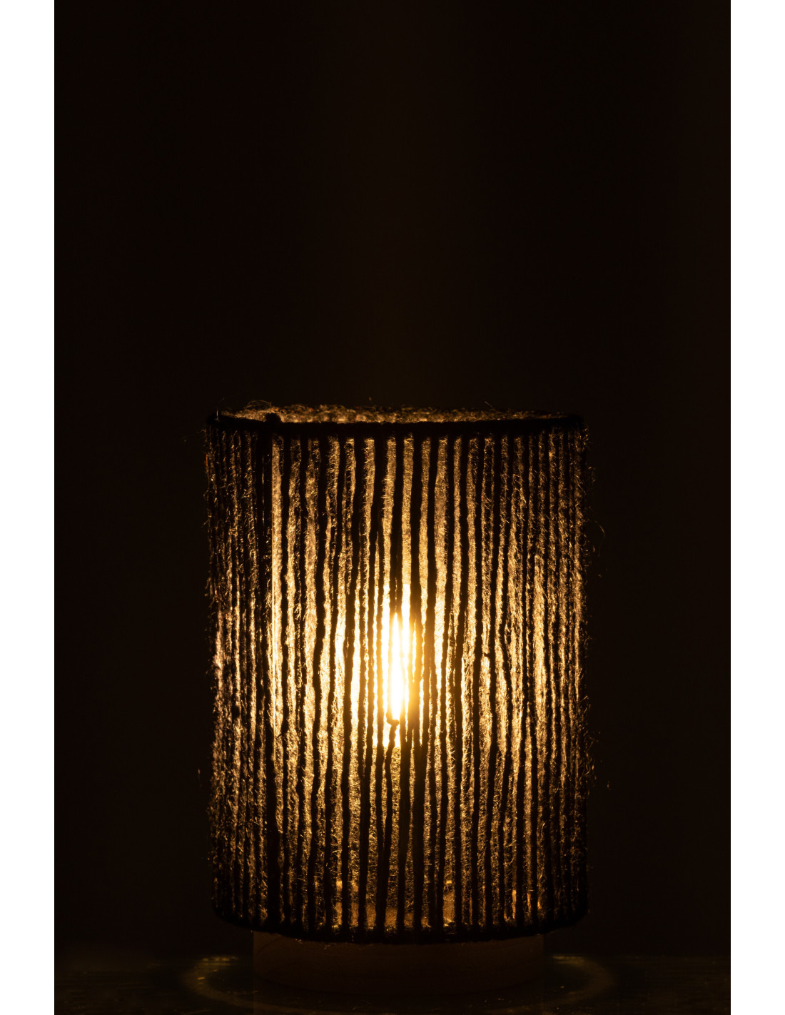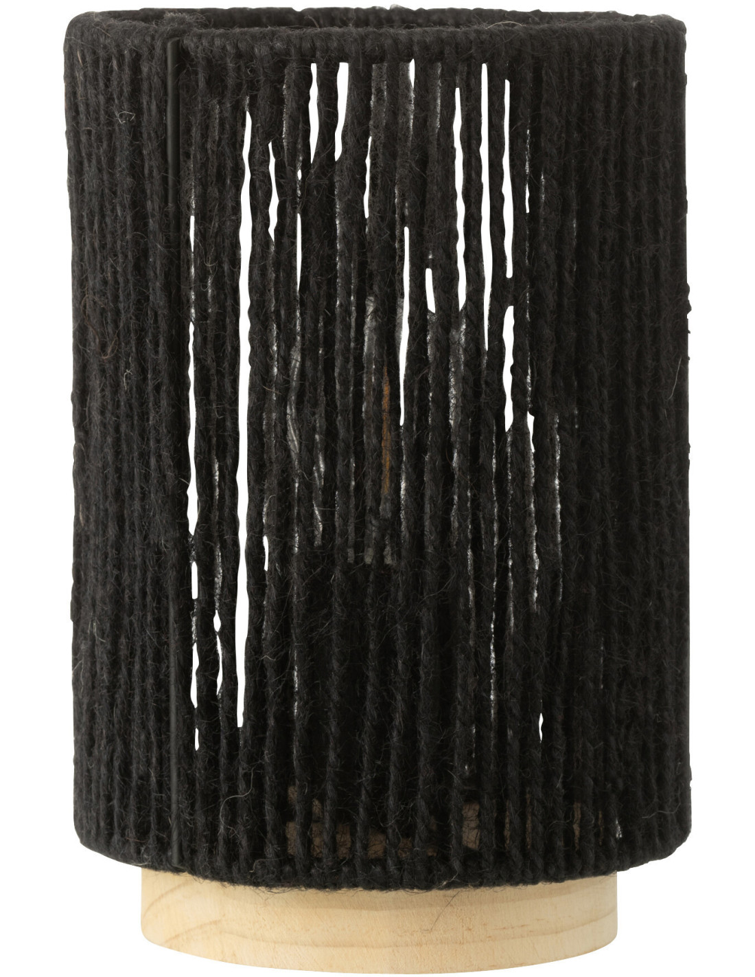 Lampe à poser Led ethnique chic cylindrique H 20 cm Coton Noir Tressé Bois Naturel Métal Shory