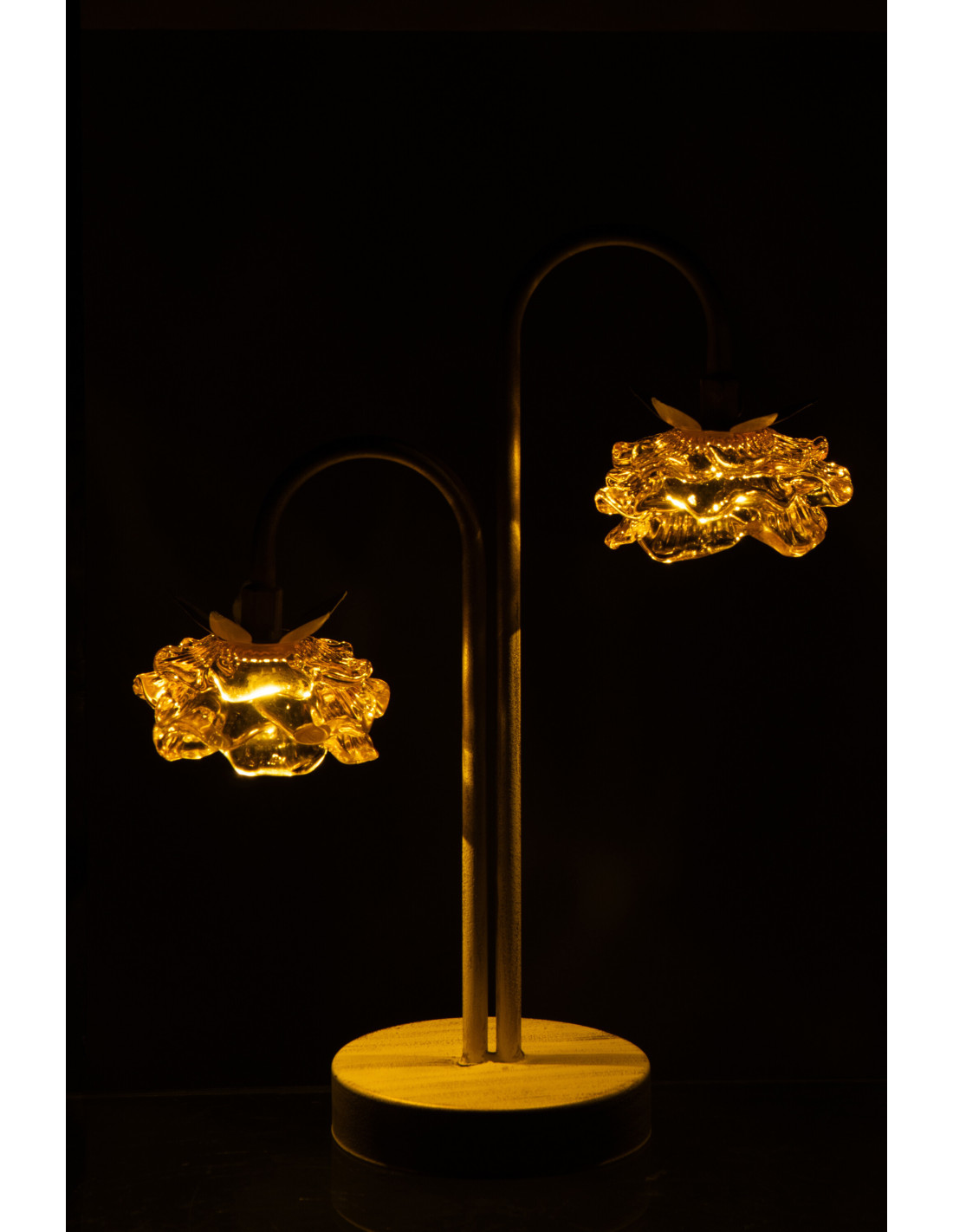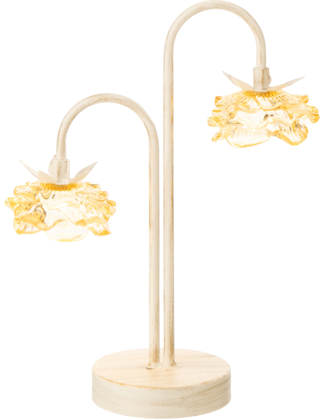 Lampe à poser Led originale 2 Fleurs H 37 cm Verre Jaune Métal Blanc cassé Sunflya