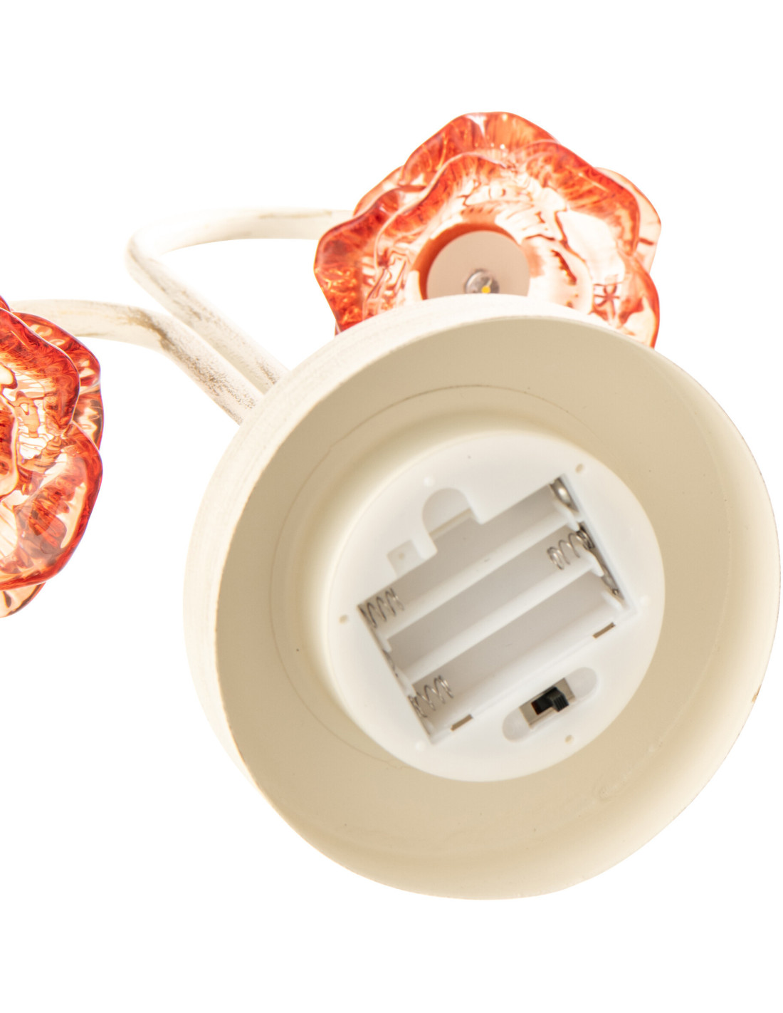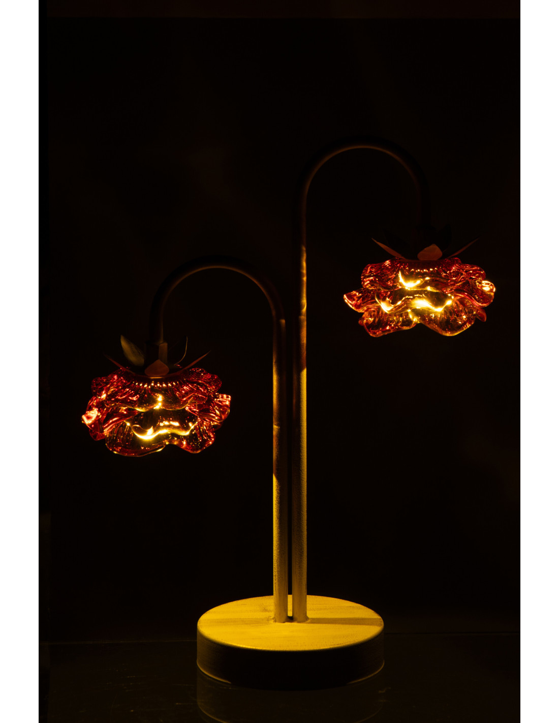 Lampe à poser Led originale 2 Fleurs H 37 cm Verre Orange Métal Blanc cassé Sunflya