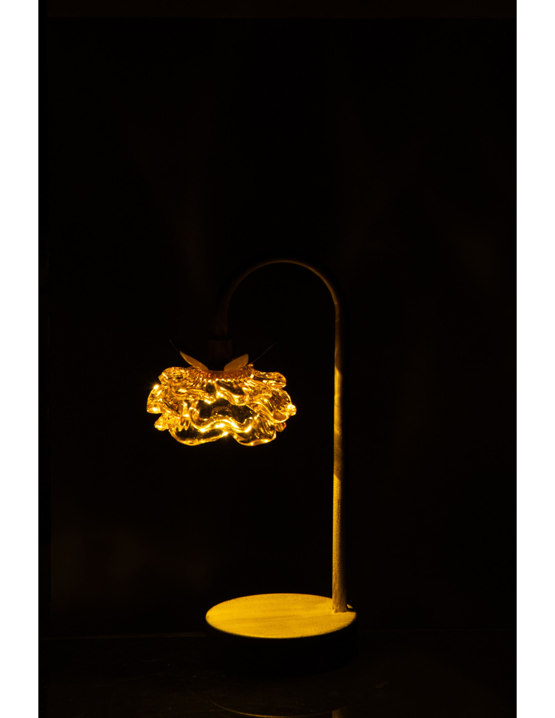 Lampe à poser Led originale Fleur H 36 cm Verre Jaune Métal Blanc cassé Sunflya