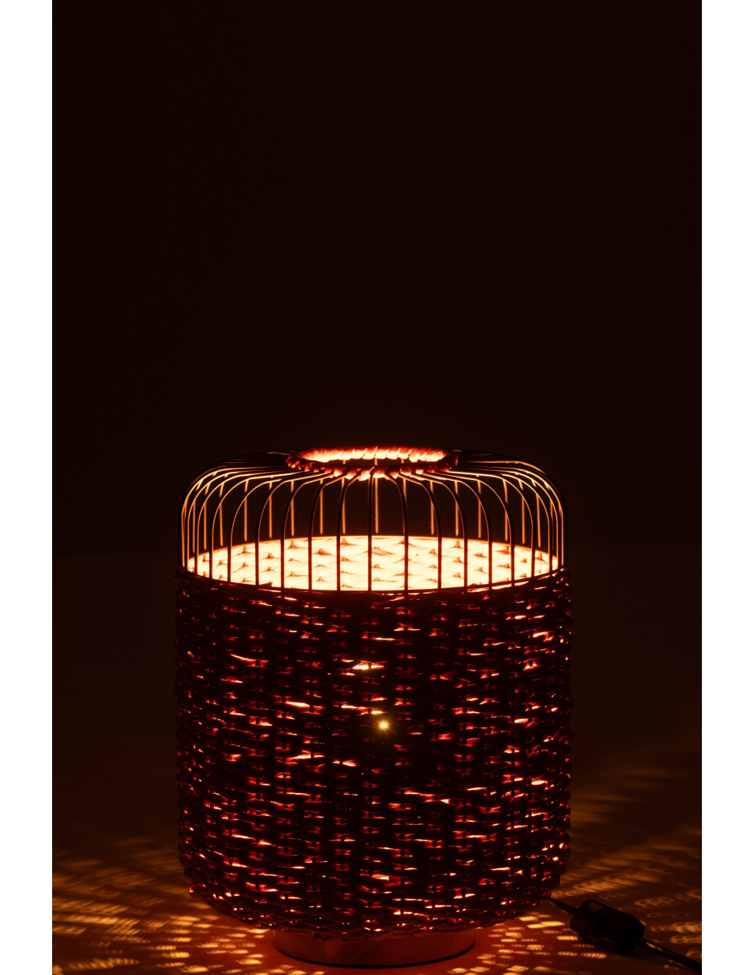 Lampe à poser moderne africaine Hauteur 34 cm en Fibre Orange Tressé Métal Noir Lemu