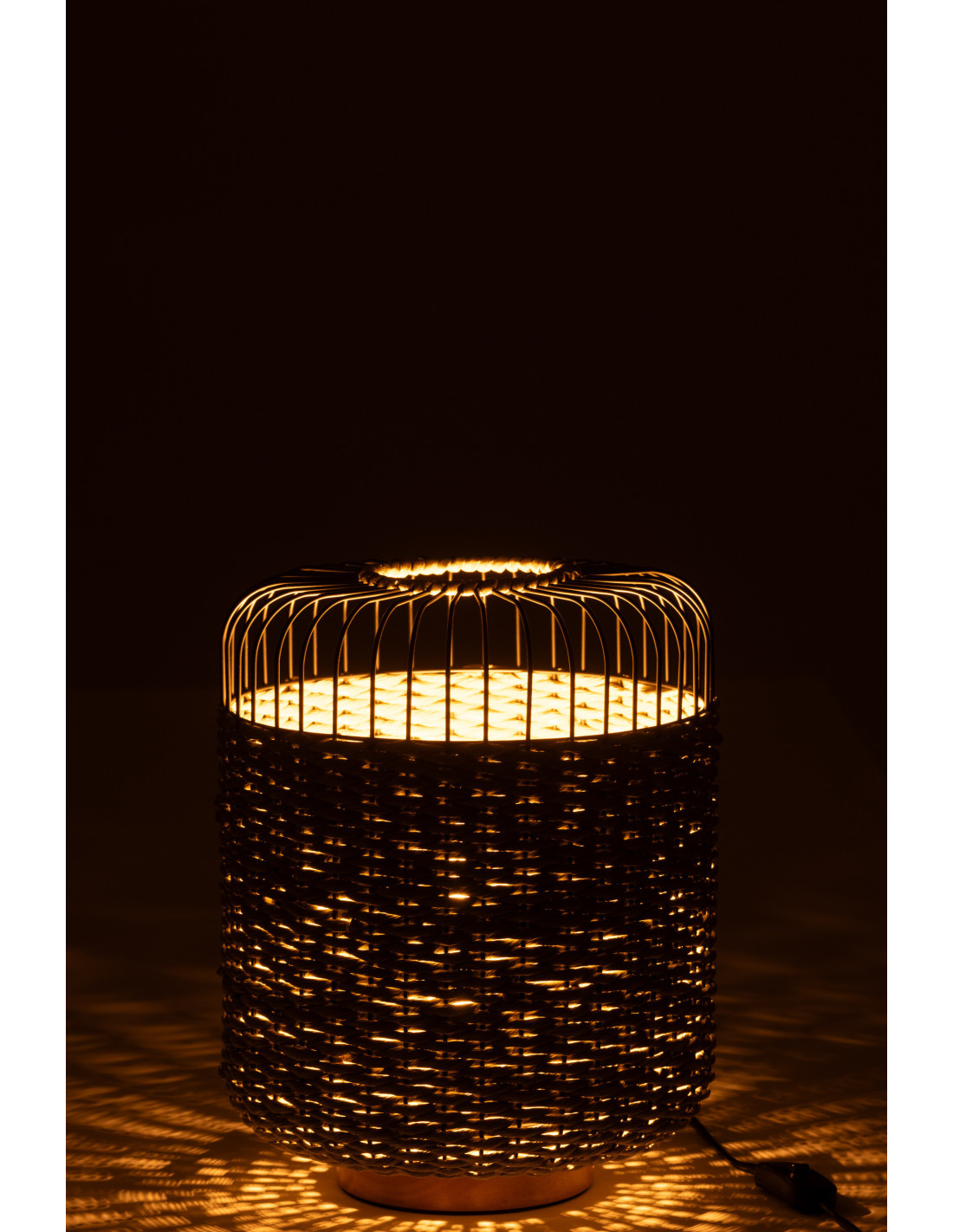 Lampe à poser moderne africaine Hauteur 34 cm en Fibre Vert Tressé Métal Noir Lemu