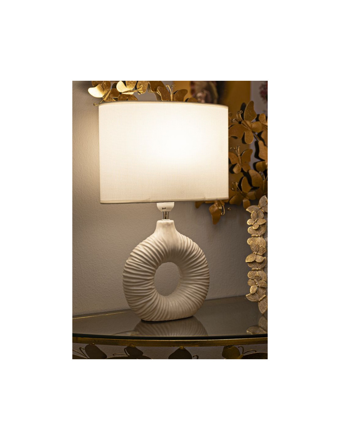 Lampe à poser moderne bord de mer Hauteur 43 cm en Céramique Tissu Blanc Métal Argenté Seta