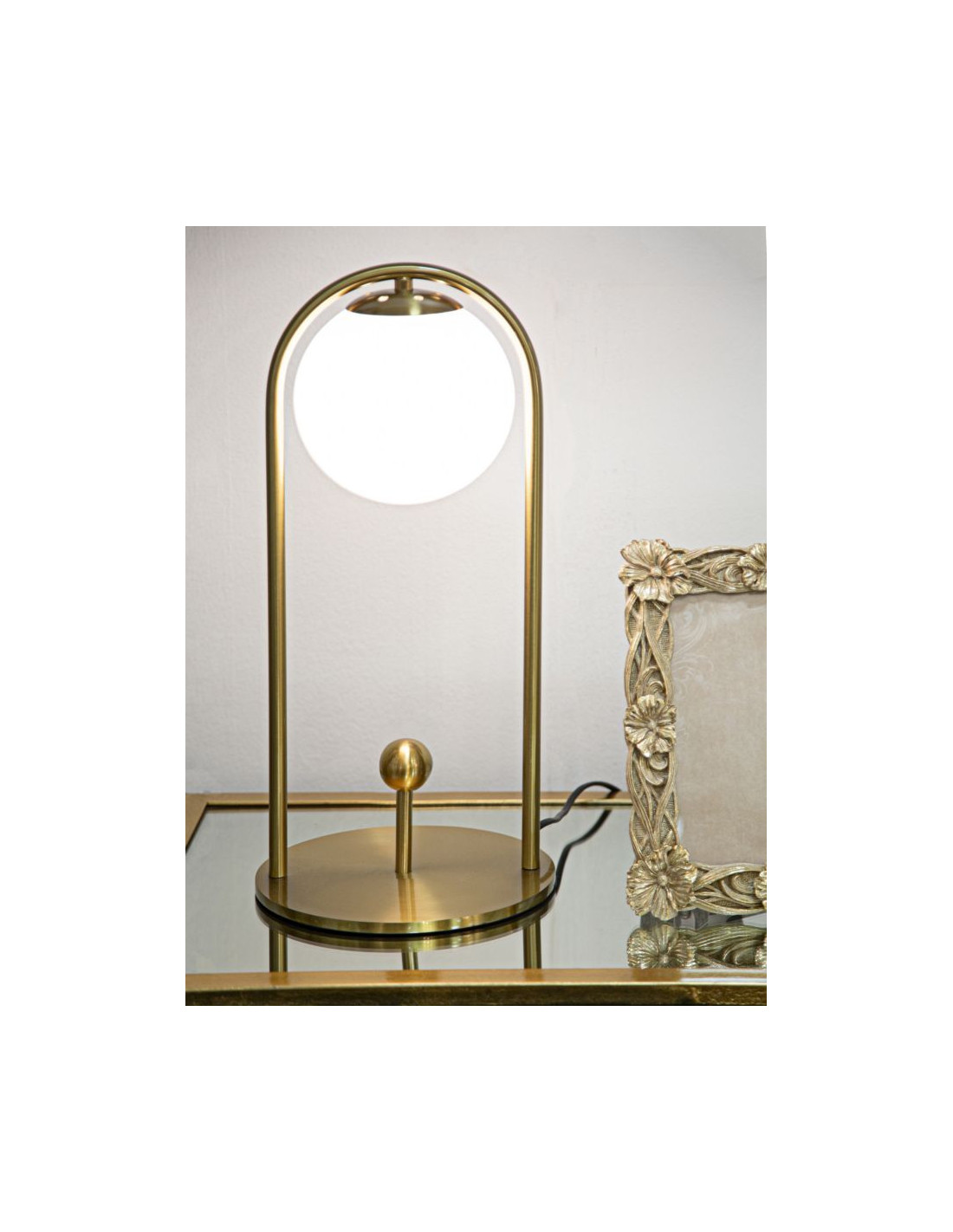 Lampe à poser moderne chic Boule Hauteur 47 cm Métal Doré Verre Blanc Glamy