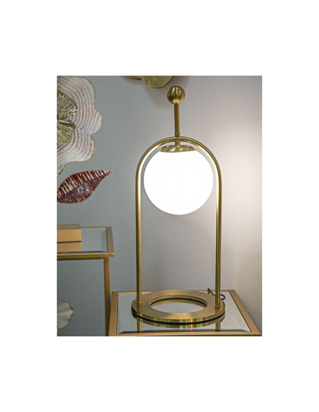Lampe à poser moderne chic Boule Hauteur 50 cm Métal Doré Verre Blanc Glamy