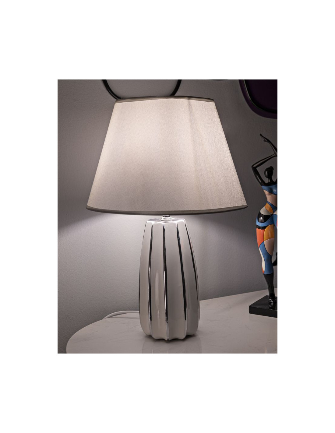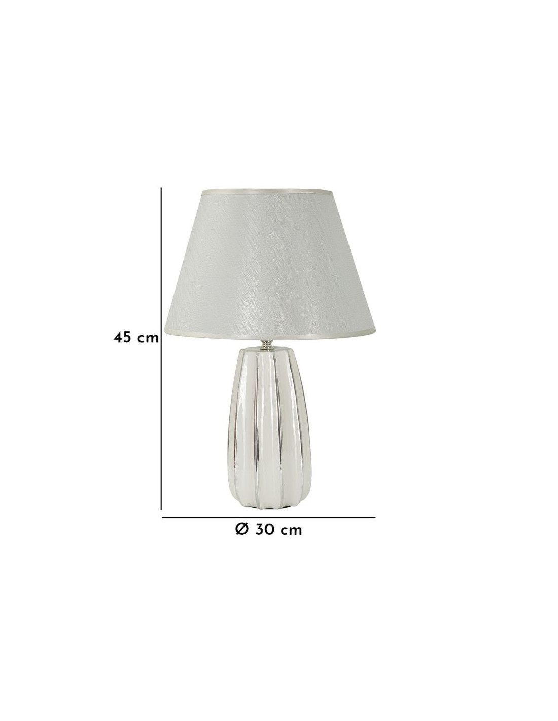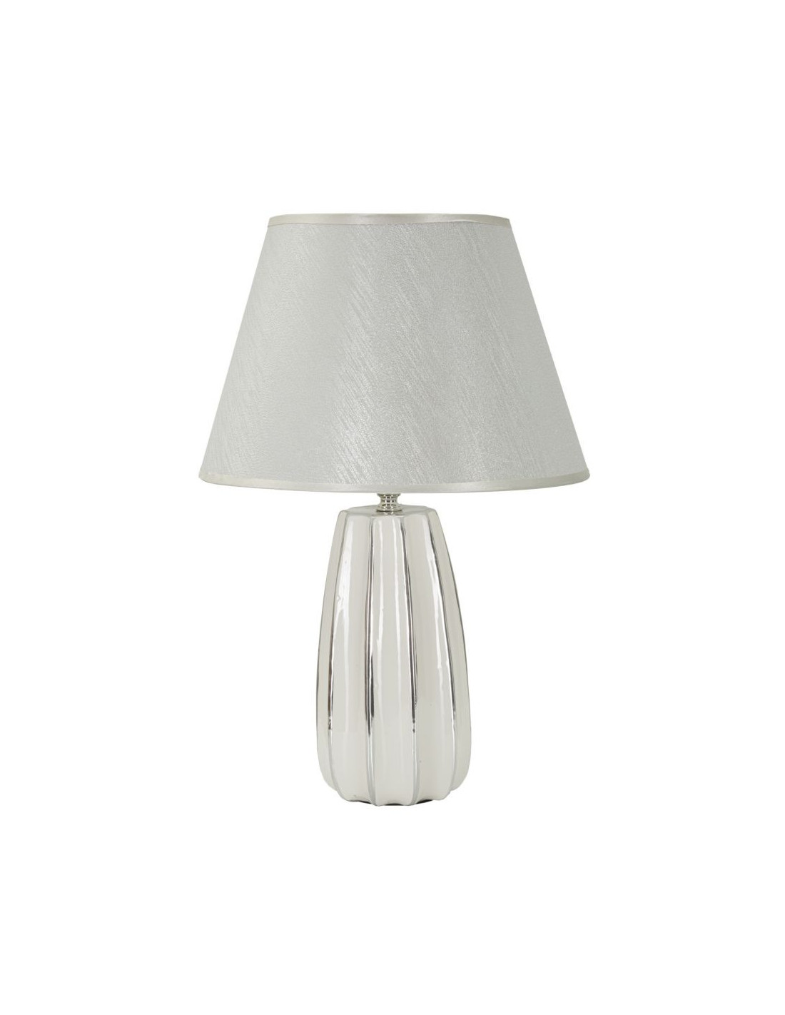 Lampe à poser moderne chic Hauteur 45 cm en Céramique Argenté Tissu Blanc Emmi