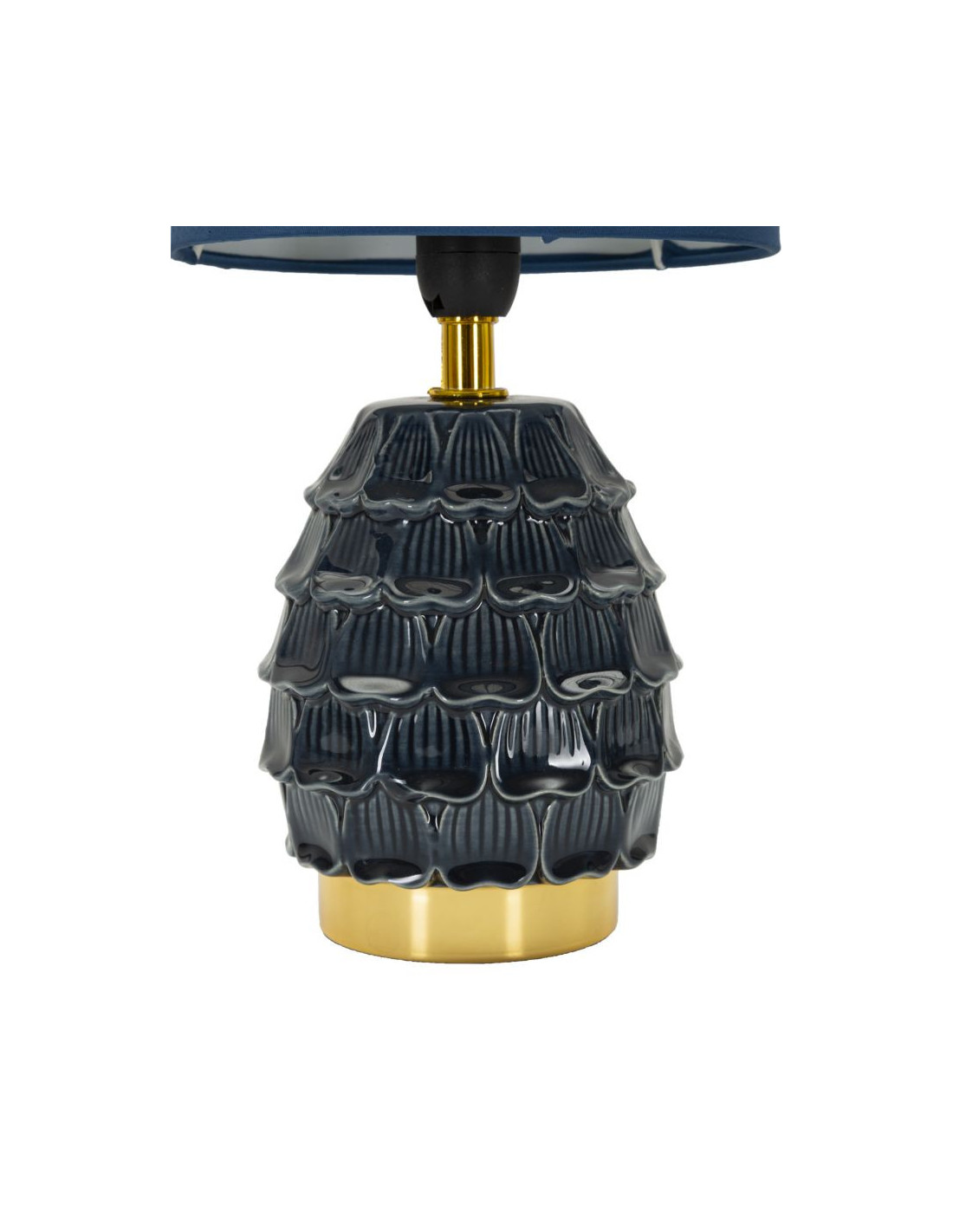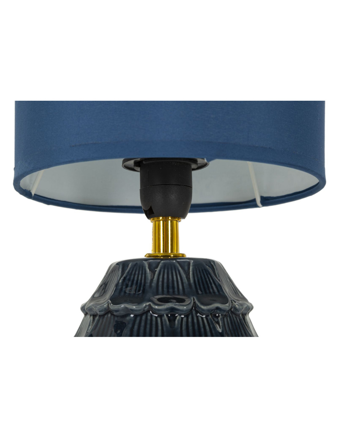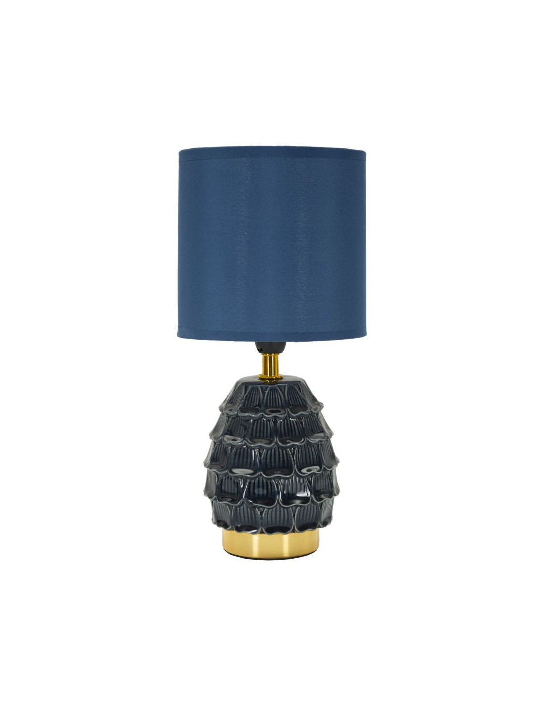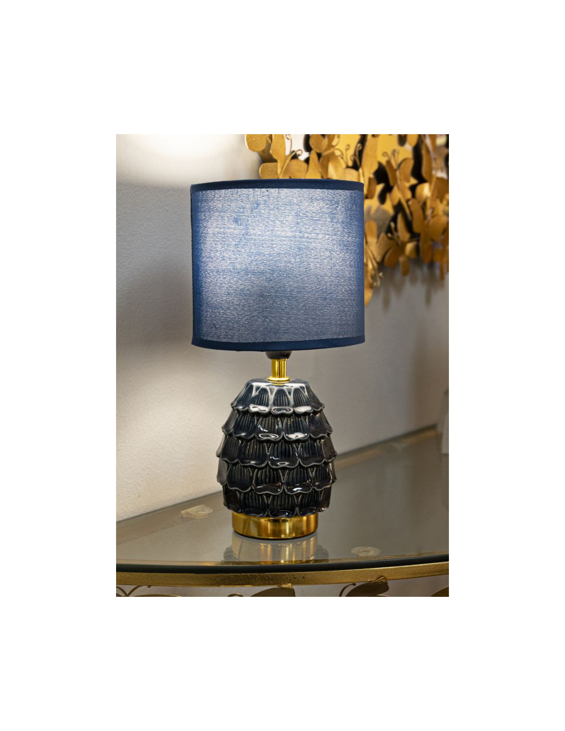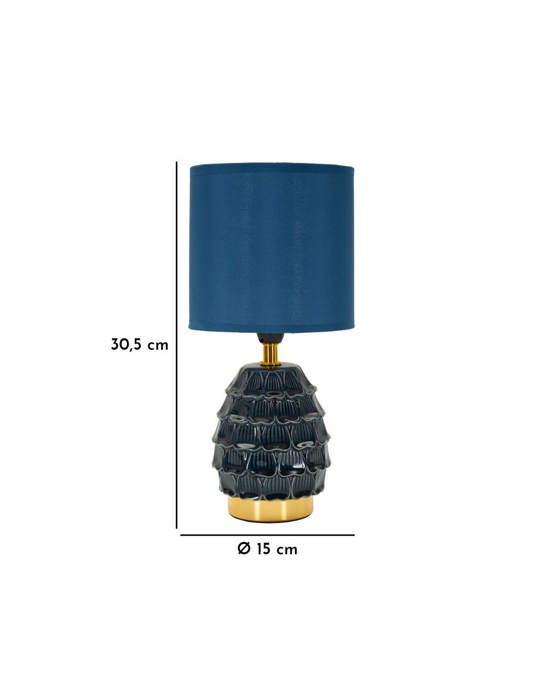 Lampe à poser moderne Hauteur 30 cm en Céramique Tissu Bleu foncé Métal Doré Pigny
