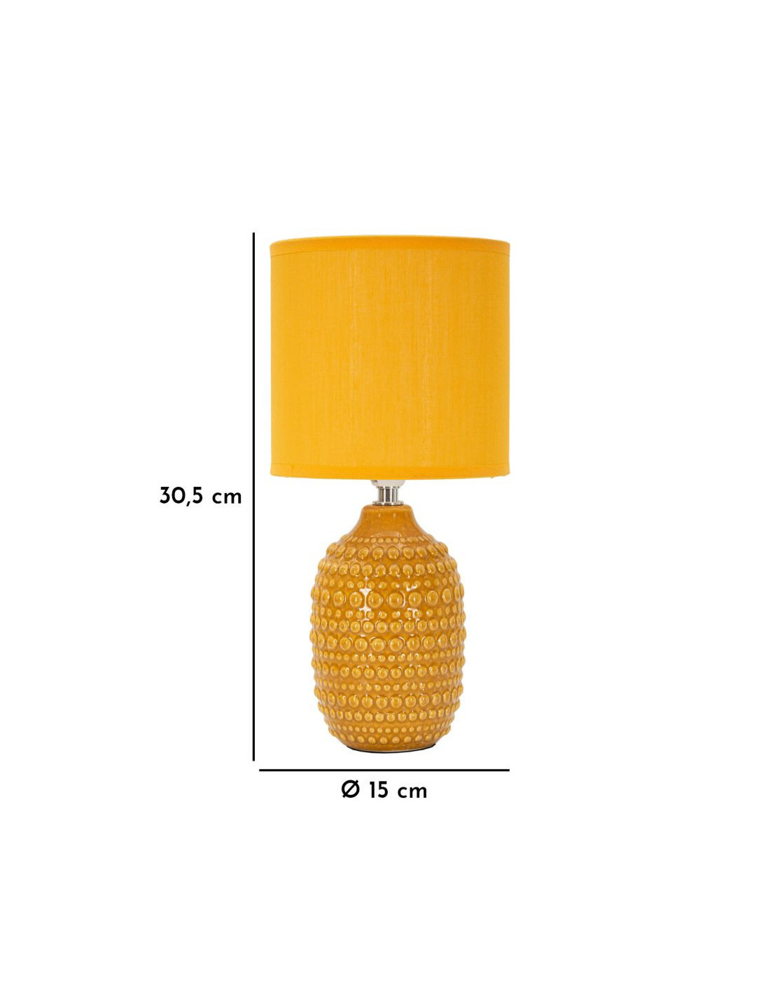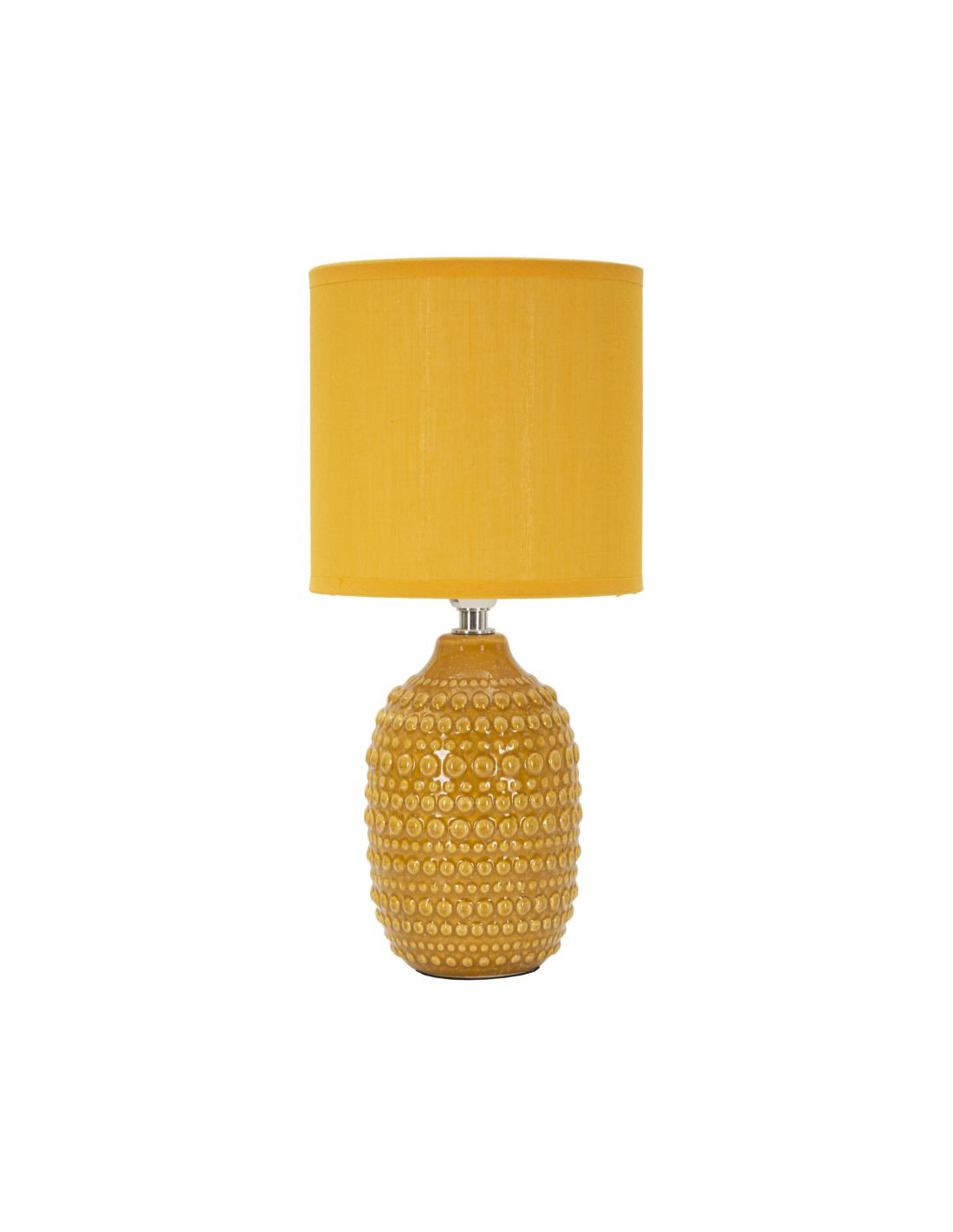 Lampe à poser moderne Hauteur 30 cm en Céramique Tissu Jaune ocre Métal Argenté Points