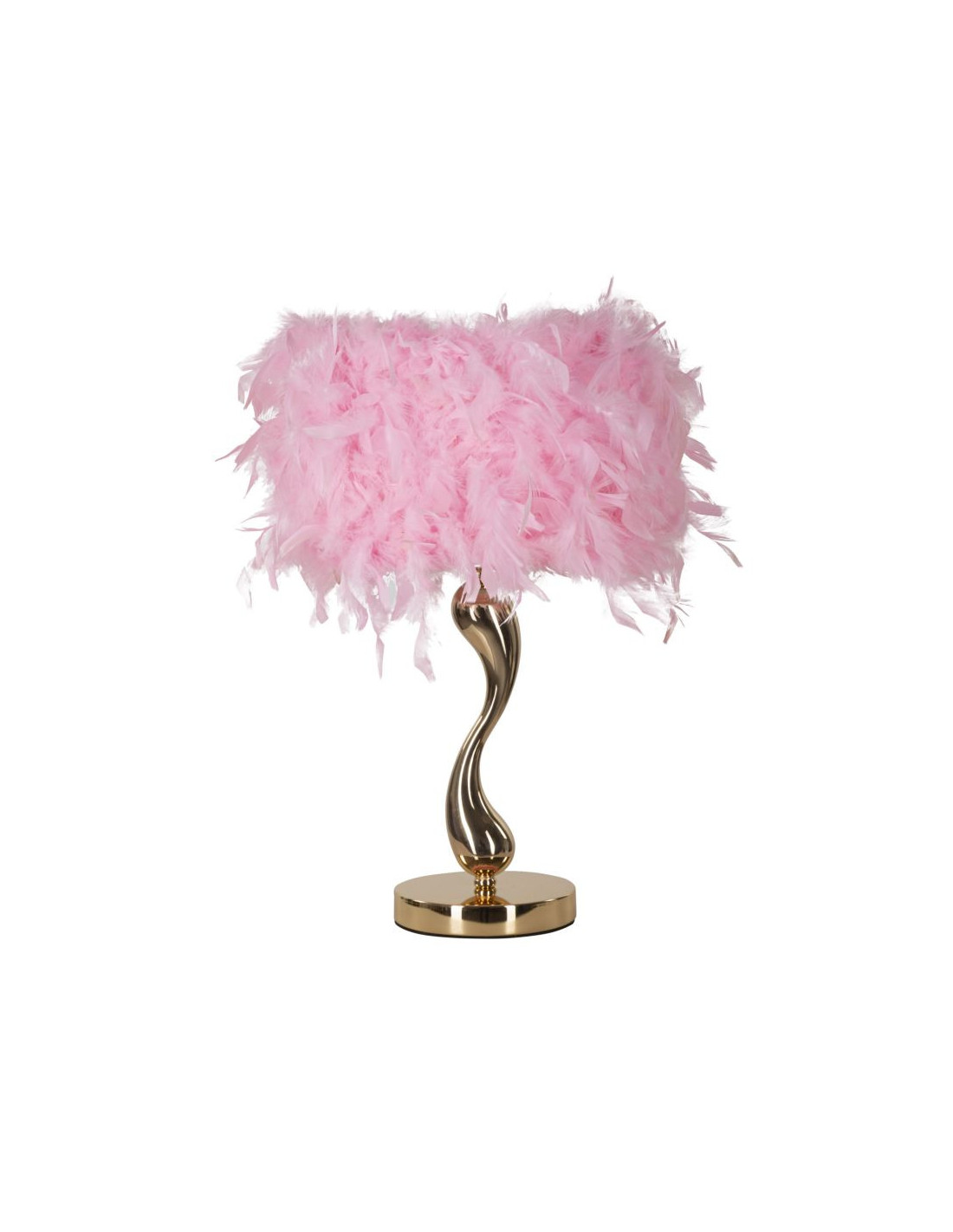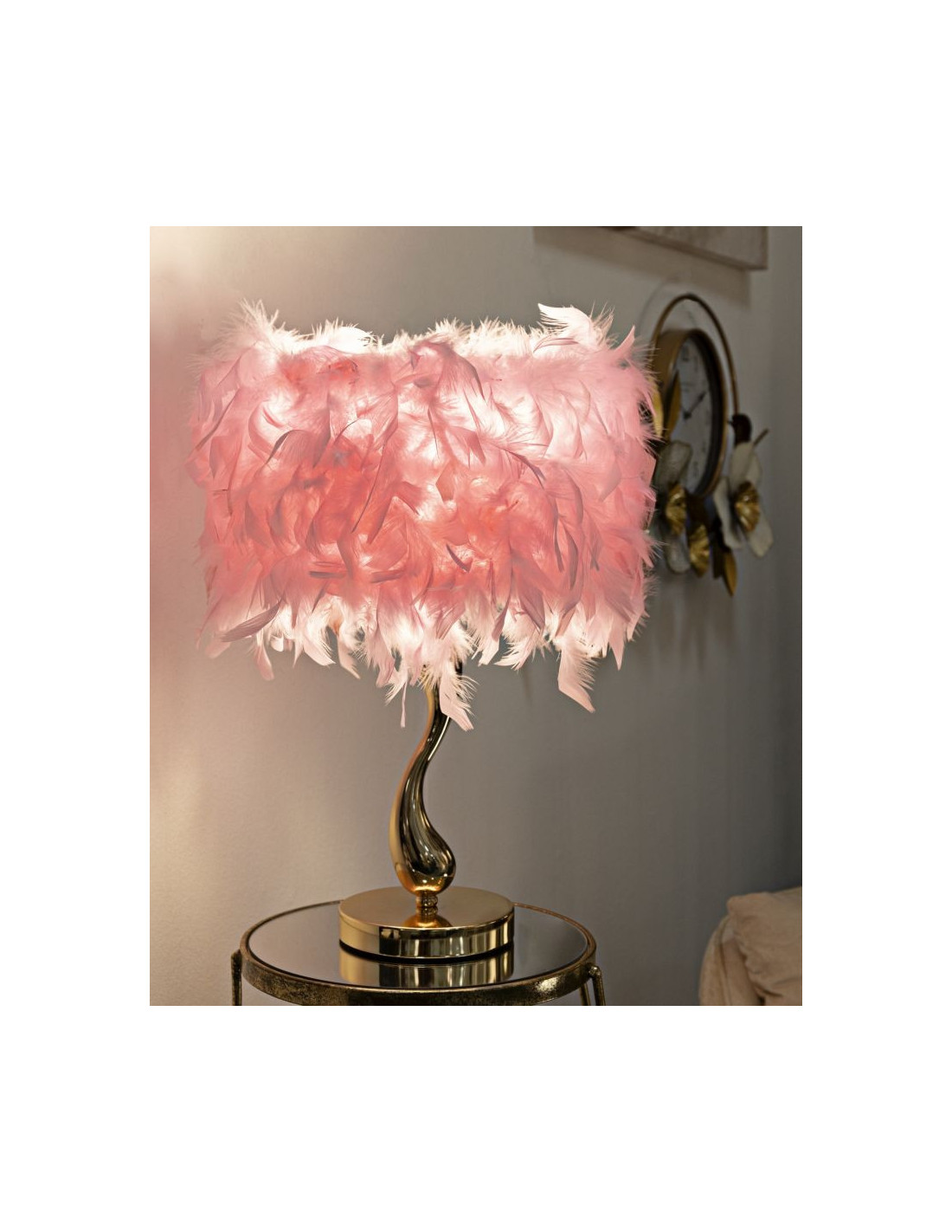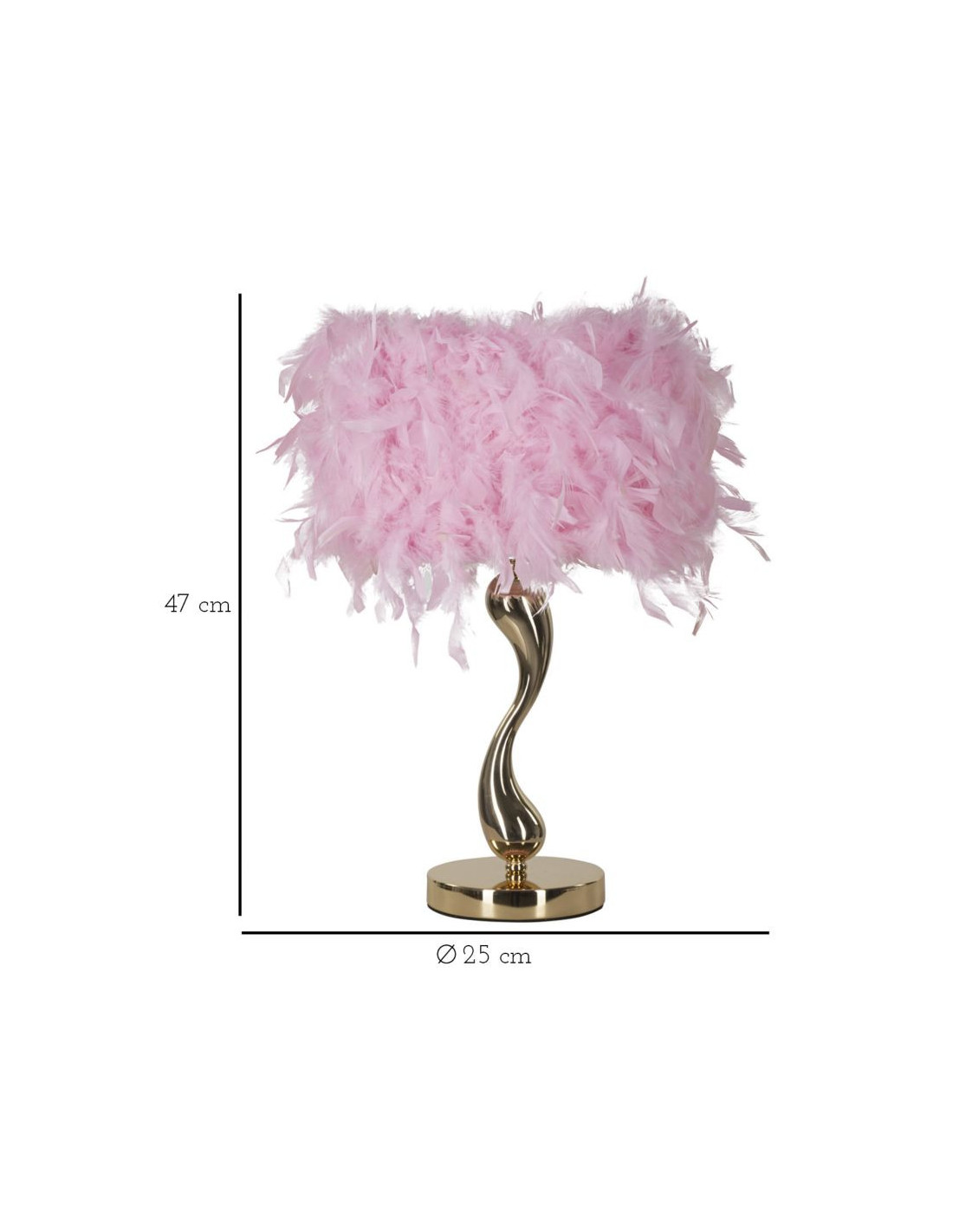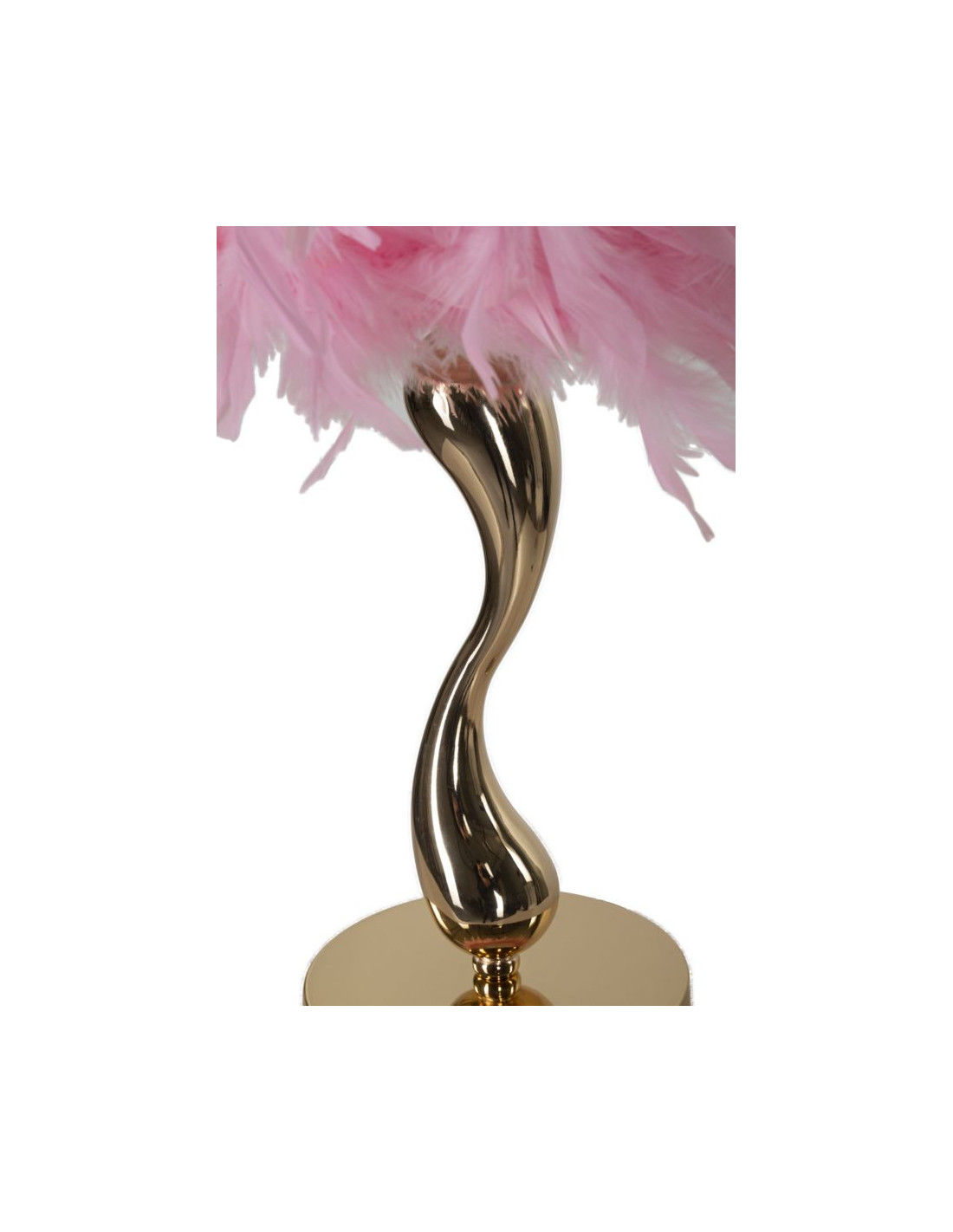 Lampe à poser moderne Plumes Hauteur 47 cm en Tissu Rose Métal Doré Cart