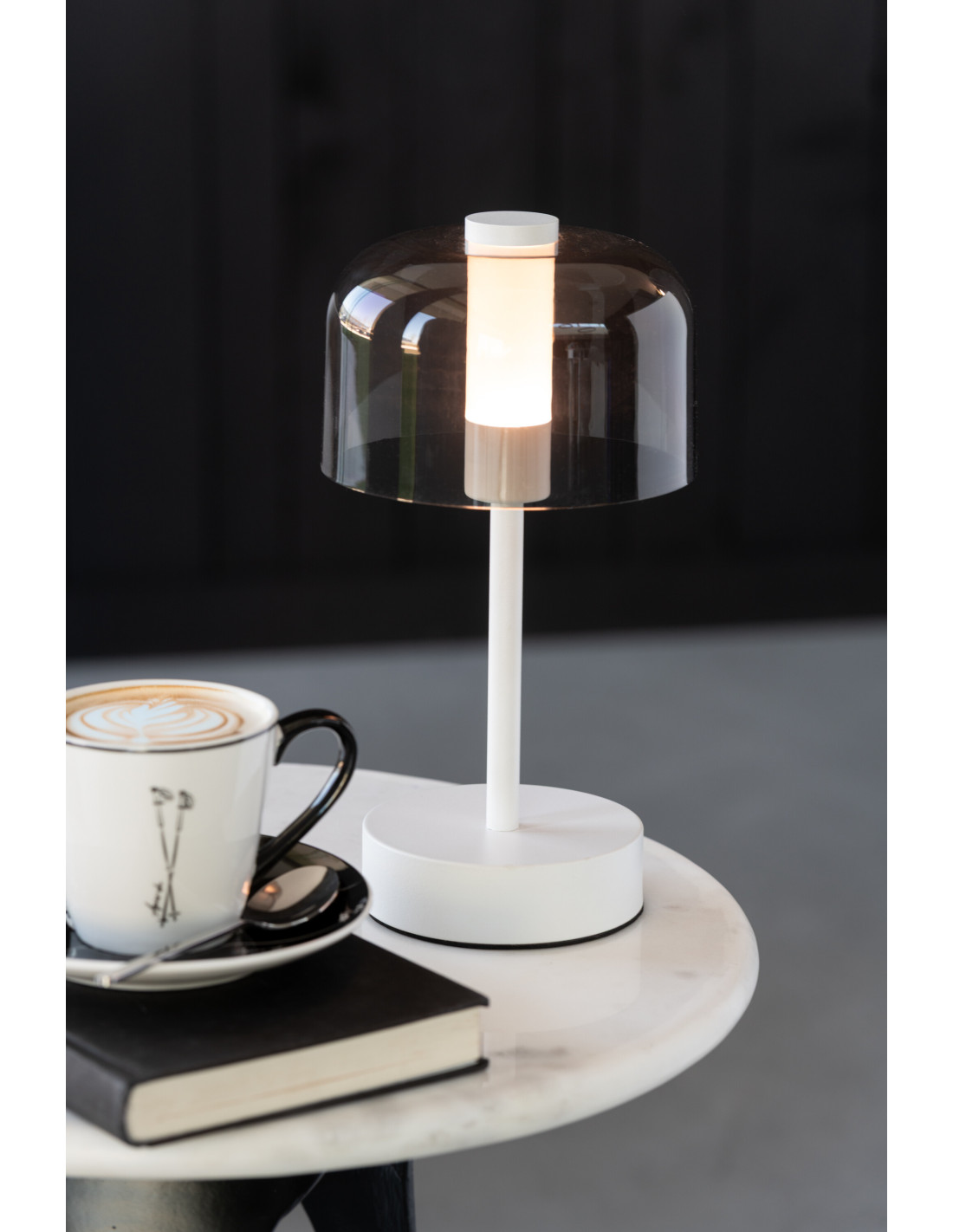 Lampe à poser moderne Tactile sans fil Hauteur 24 cm en Métal Blanc Transparent Woa - 1
