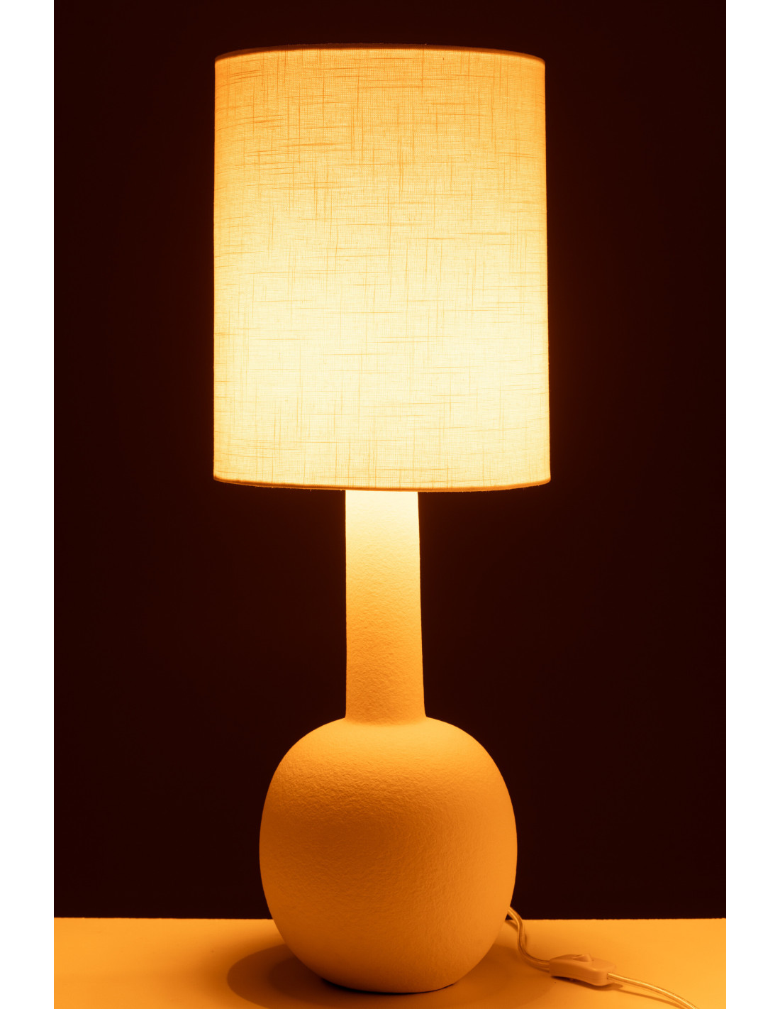 Lampe à poser originale boule Hauteur 76 cm en Grès Beige Tissu Blanc Siran