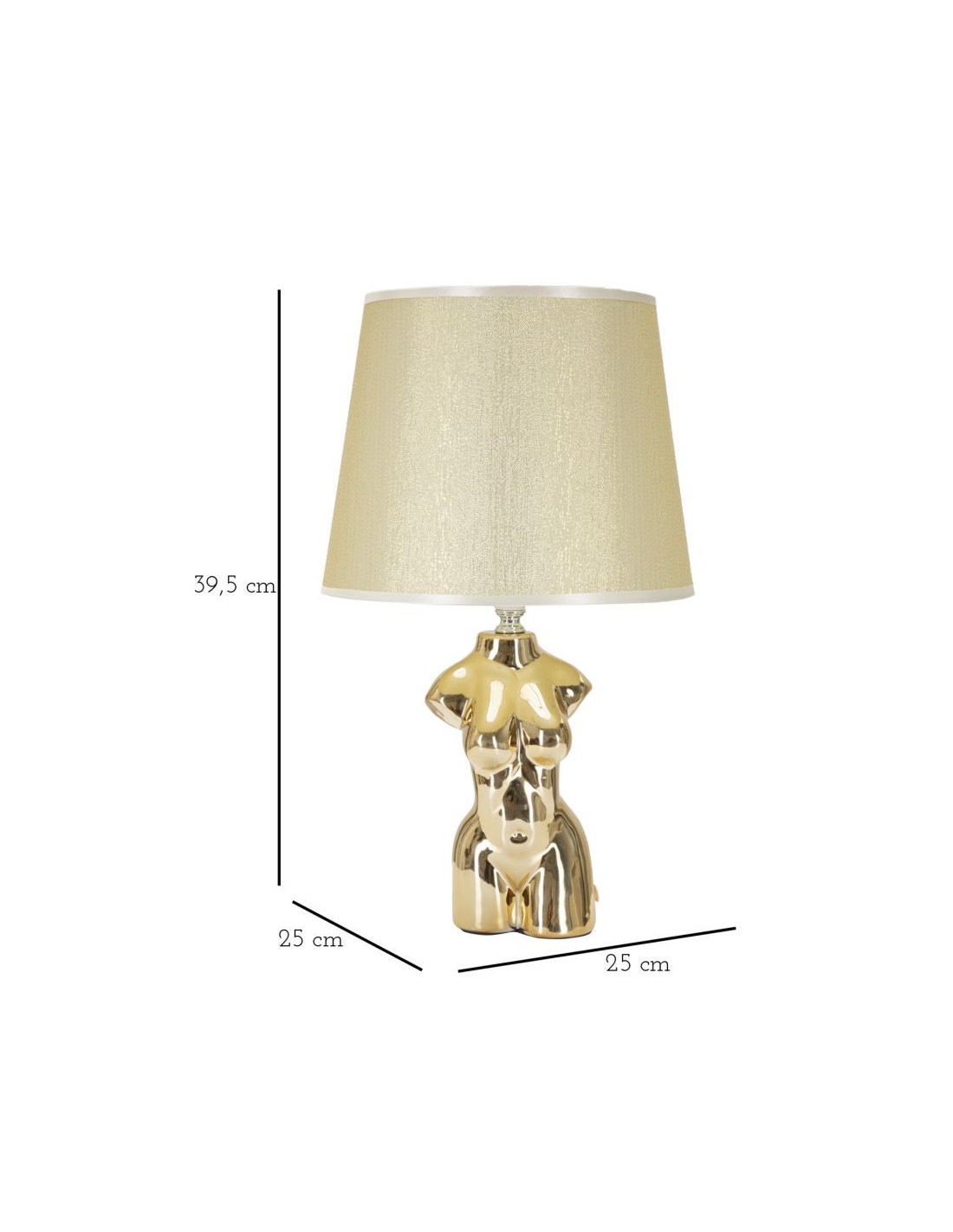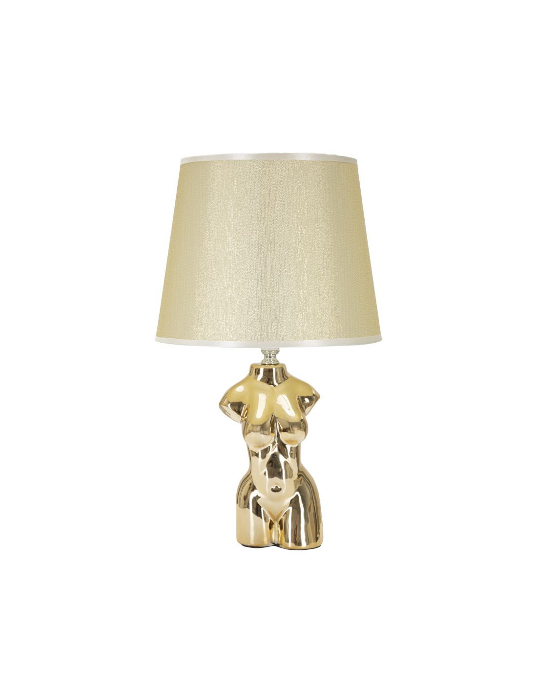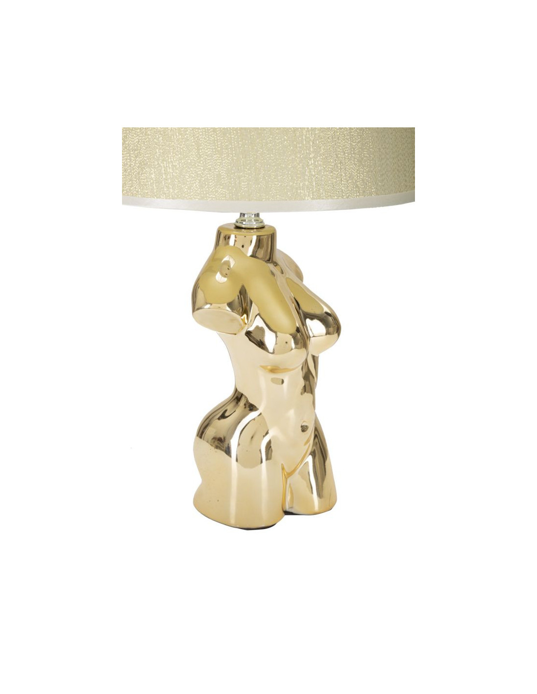 Lampe à poser originale Buste de femme Hauteur 39 cm en Céramique Doré Tissu Blanc crème Glam Woman