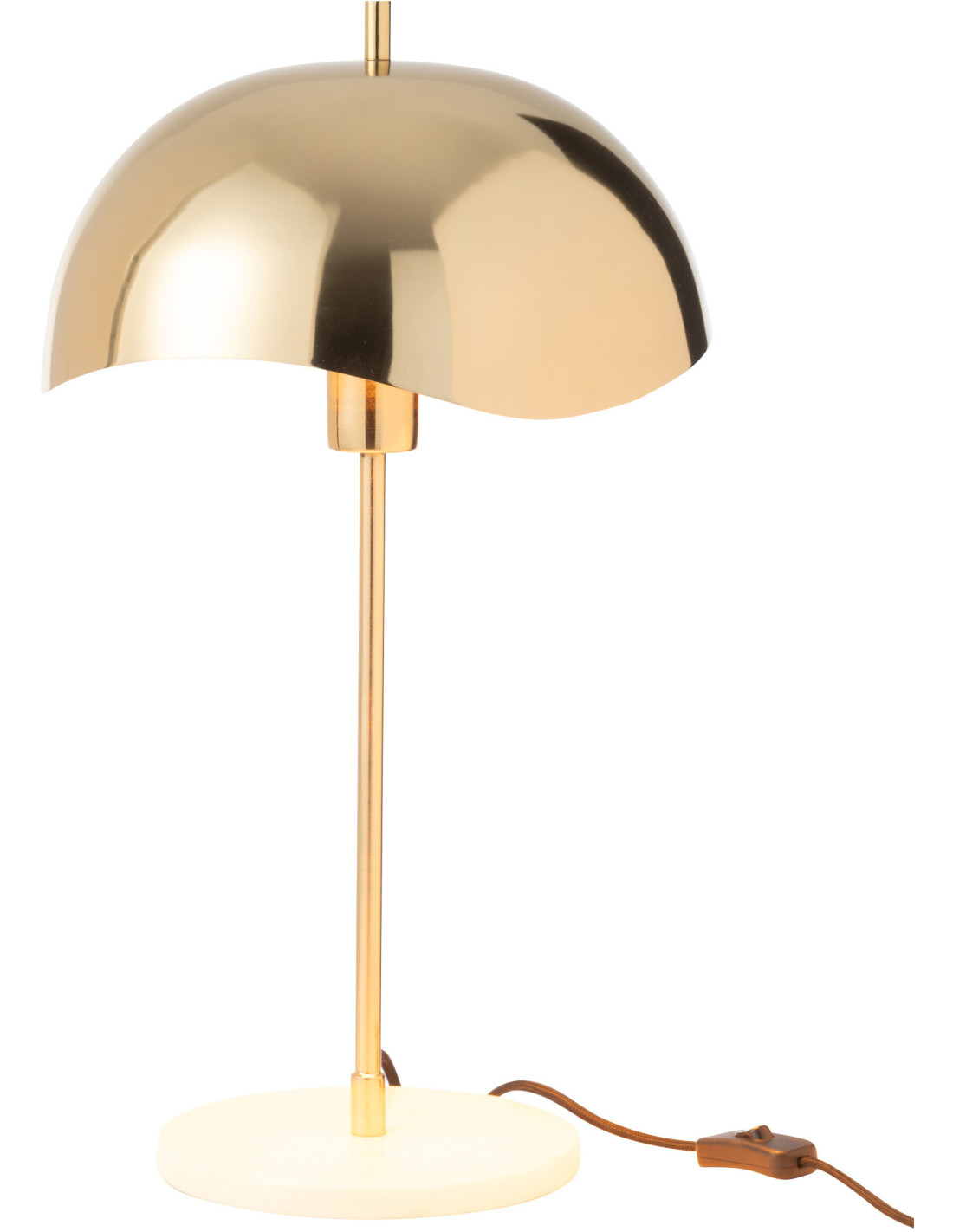 Lampe à poser originale champignon Hauteur 56 cm en Métal Doré Marbre Blanc Ulion