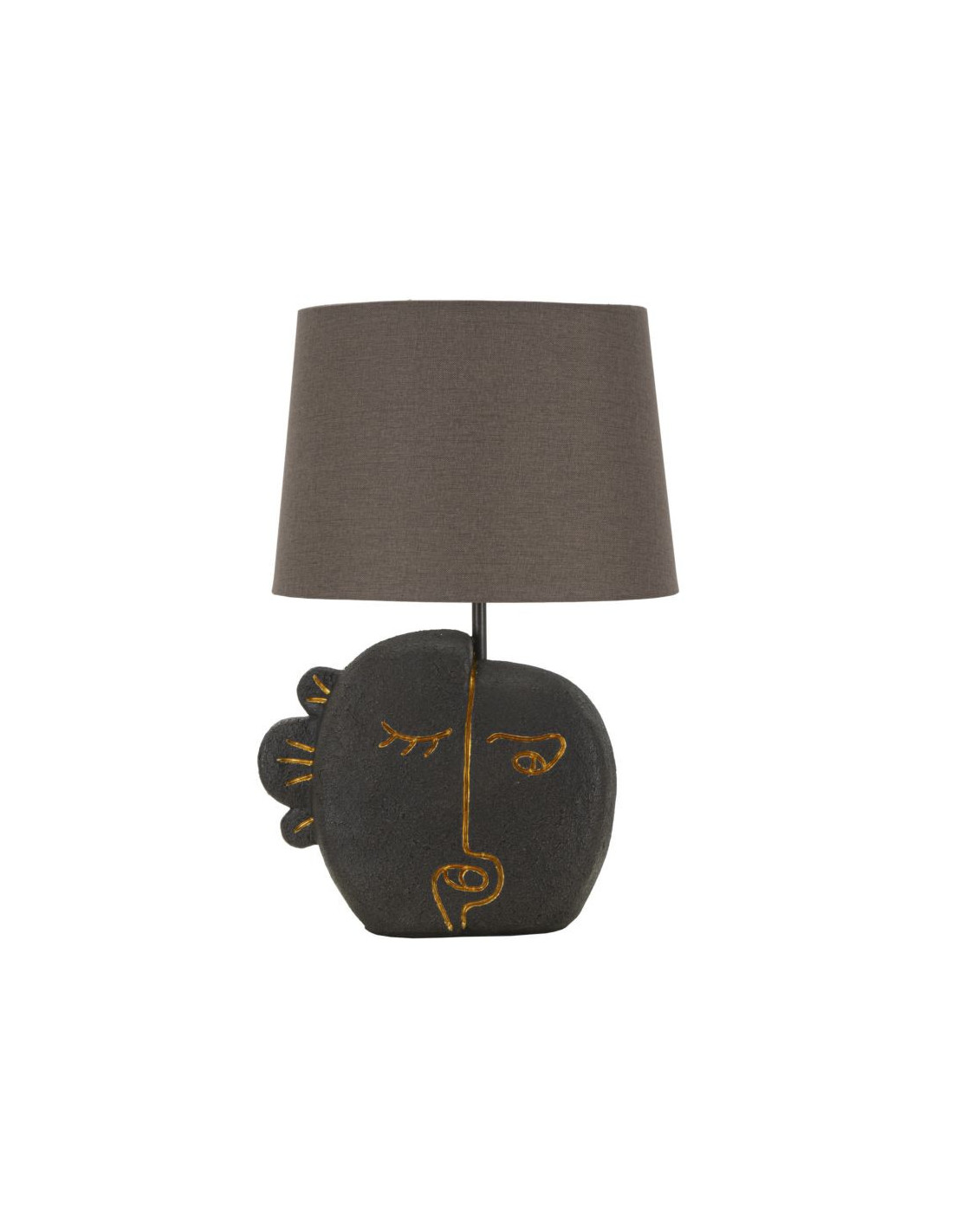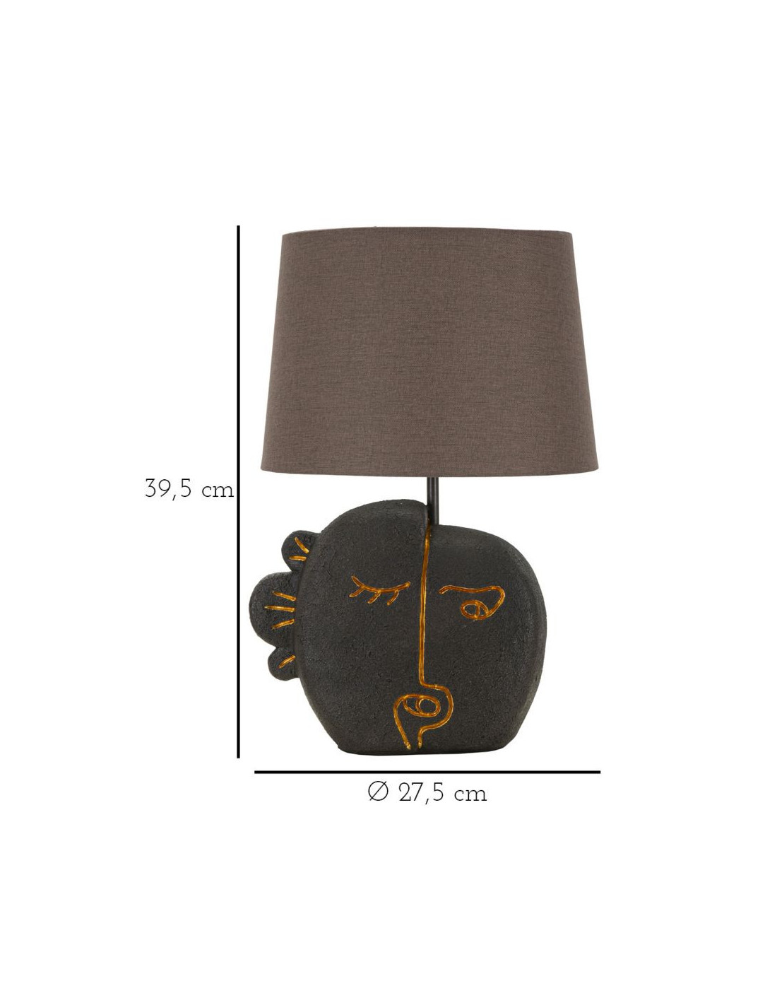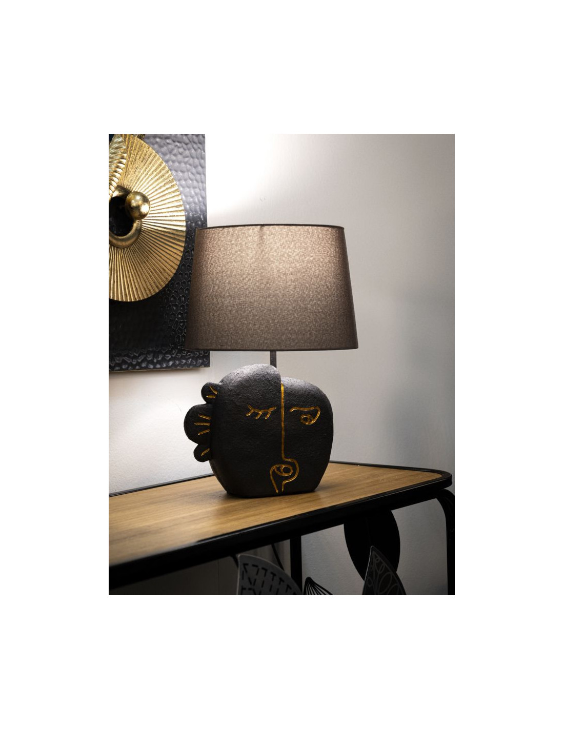 Lampe à poser originale ethnique chic Visage Hauteur 39 cm Résine Tissu Marron Tribal