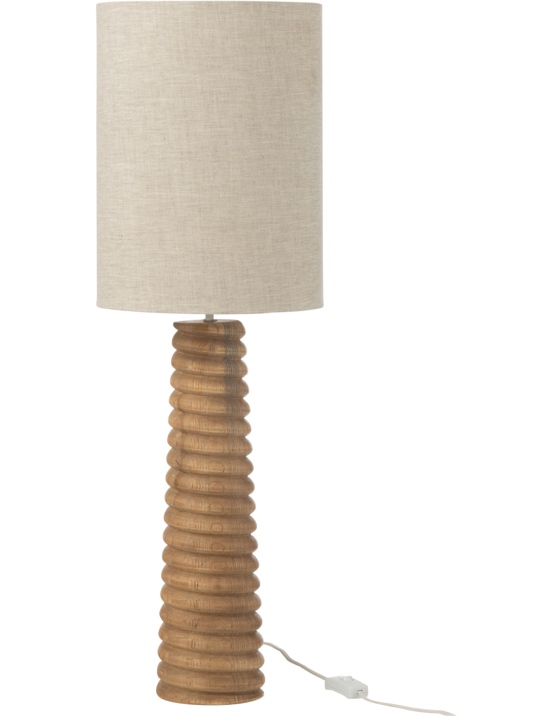Lampe à poser originale filetée Hauteur 85 cm en Bois d'ailanthus Naturel Tissu Gris Varil
