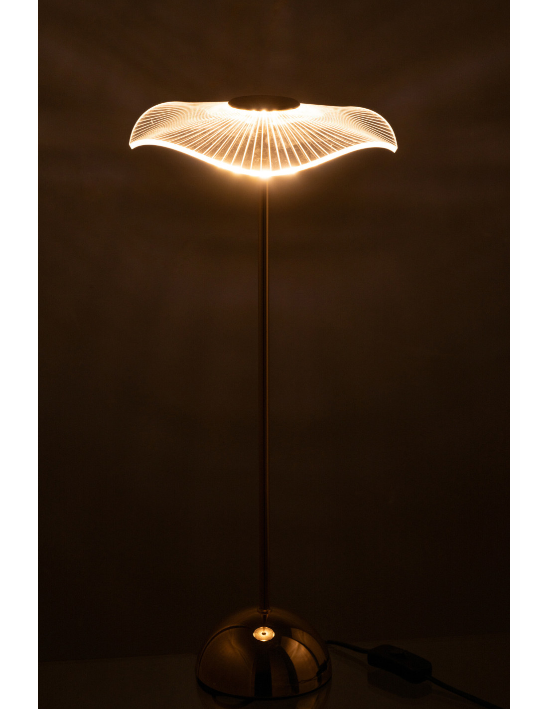 Le métal doré apporte une touche élégante et lumineuse. Il contraste avec la transparence du diffuseur pour créer un ensemble équilibré.