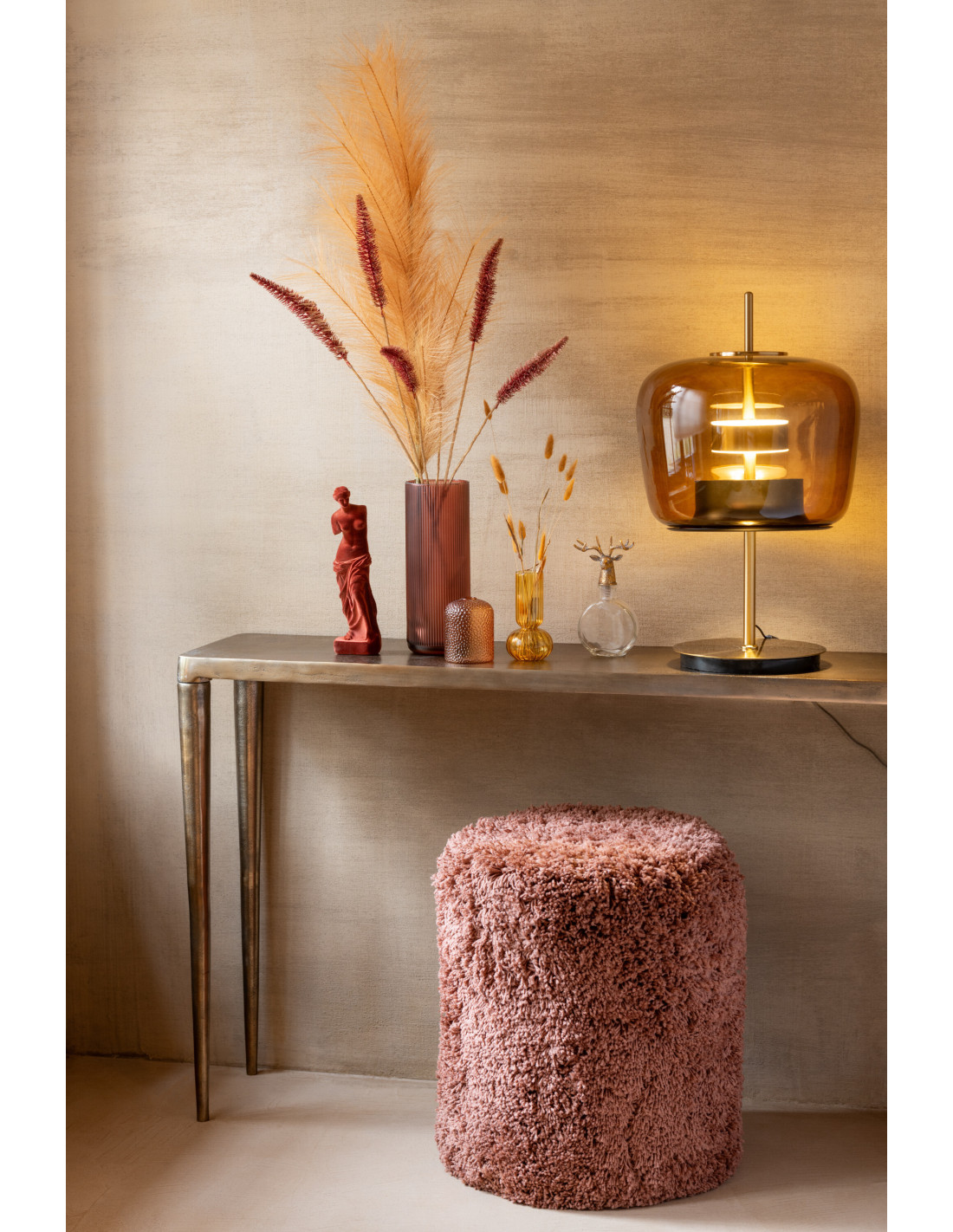 Lampe à poser originale Led Hauteur 59 cm en Verre Ambre Métal Doré Relor