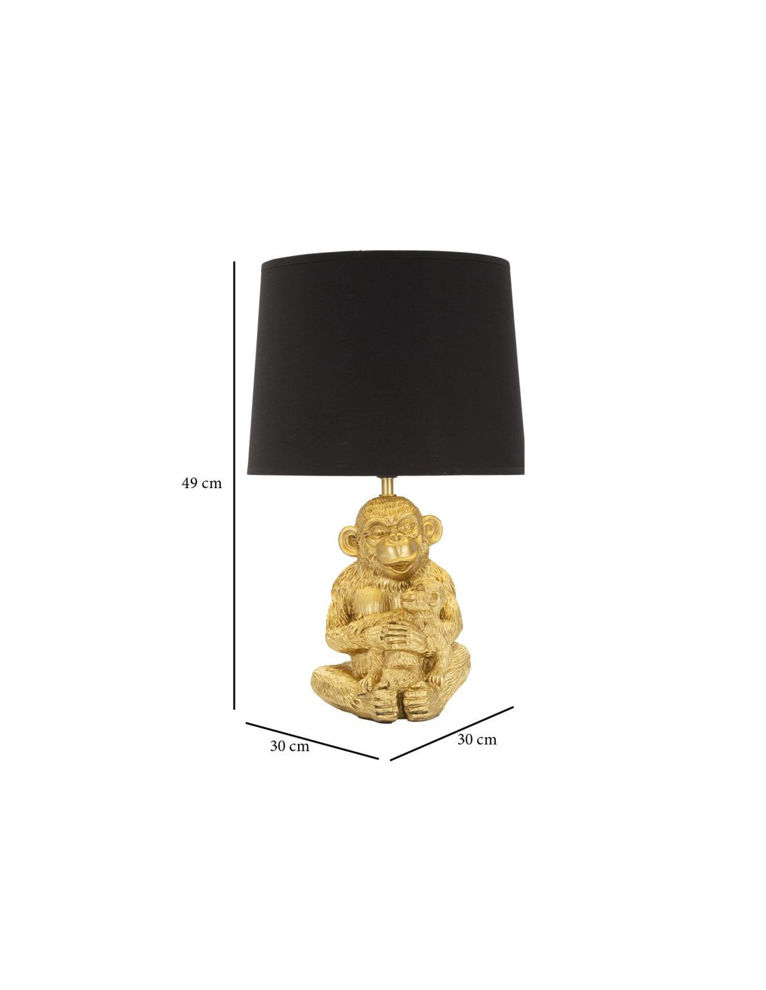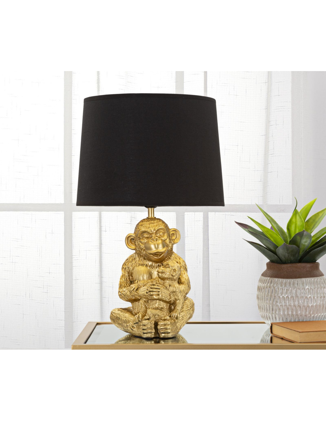 Lampe à poser originale Maman Singe Hauteur 49 cm en Résine Métal Doré Tissu Noir Monkey Mum
