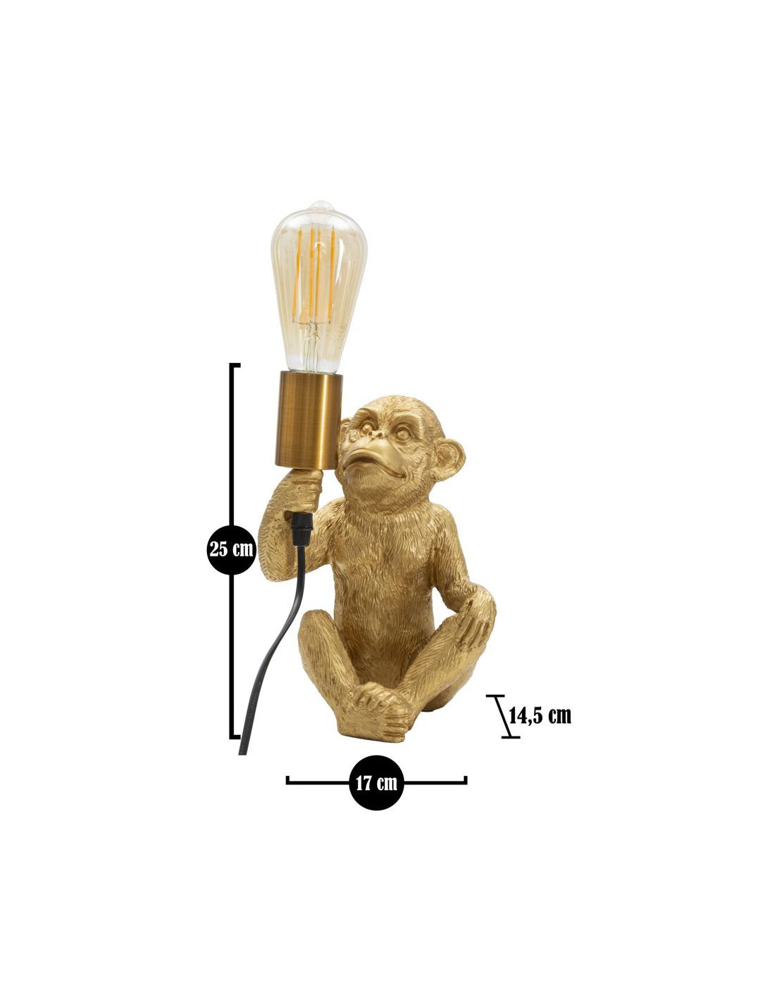 Lampe à poser originale Singe assis Hauteur 25 cm en Résine Métal Doré Monkey