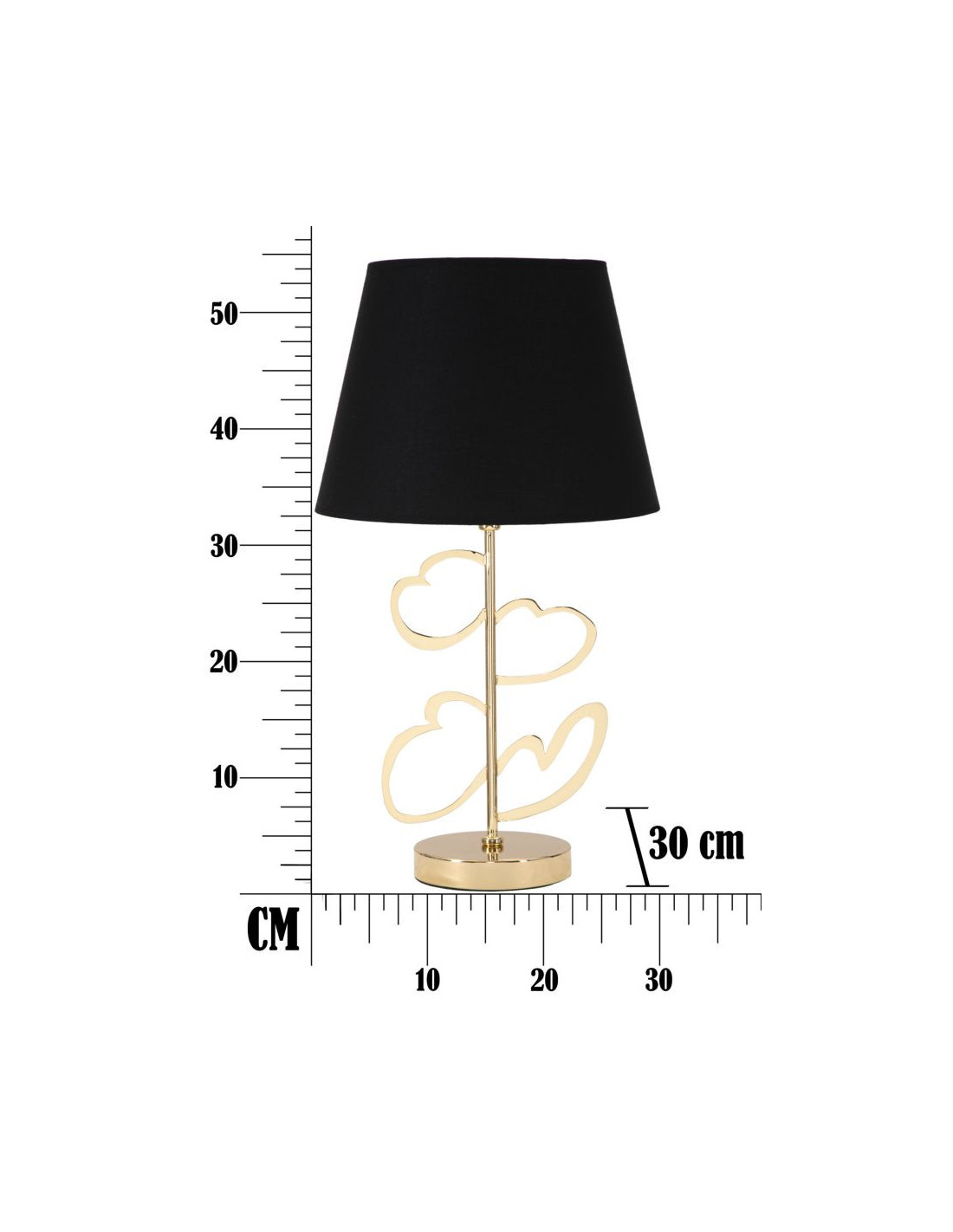 Lampe à poser originale XL Coeurs Hauteur 54 cm en Métal Doré Tissu Noir Hearts