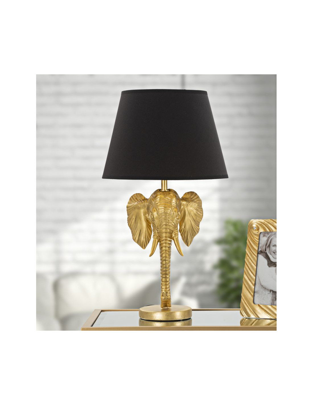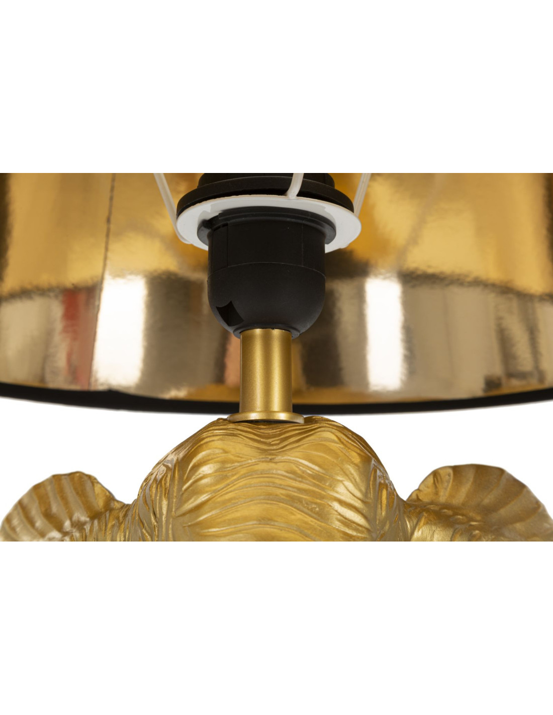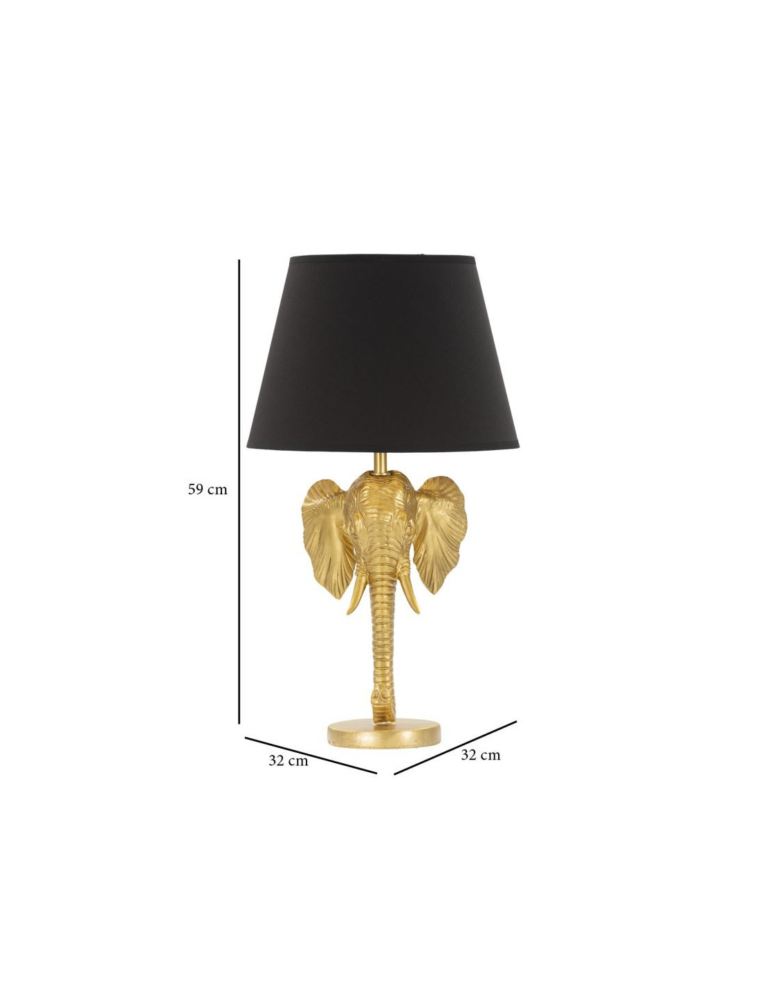 Lampe à poser originale XL Éléphant Hauteur 59c m en Résine Métal Doré Tissu Noir Elefante