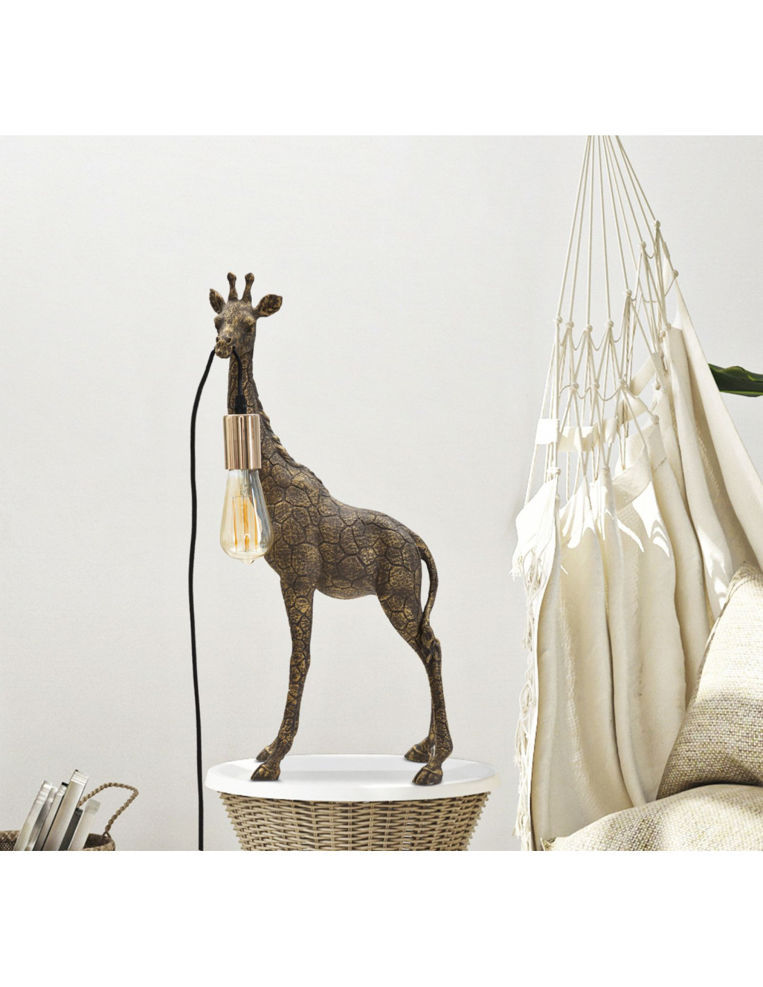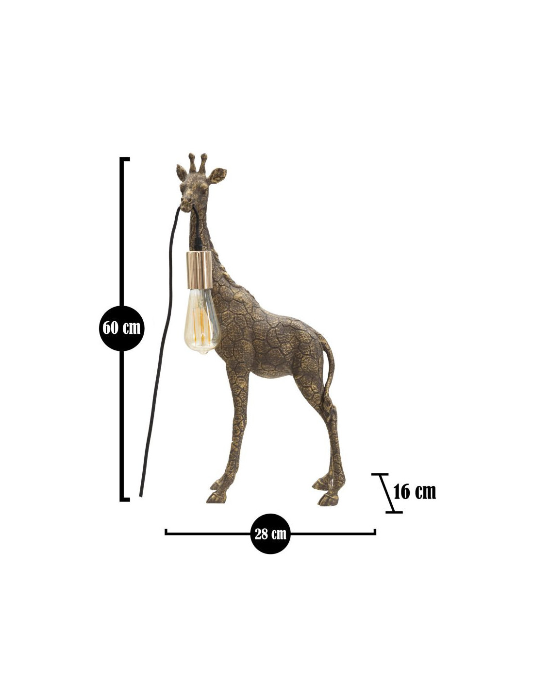 Lampe à poser originale XL Girafe Hauteur 60 cm en Résine Marron Métal Doré Giraffa