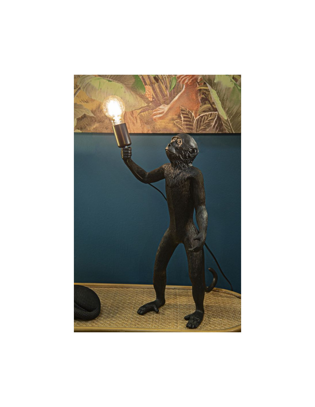Lampe à poser originale XL Singe debout Hauteur 55 cm en Résine Métal Noir Monkey