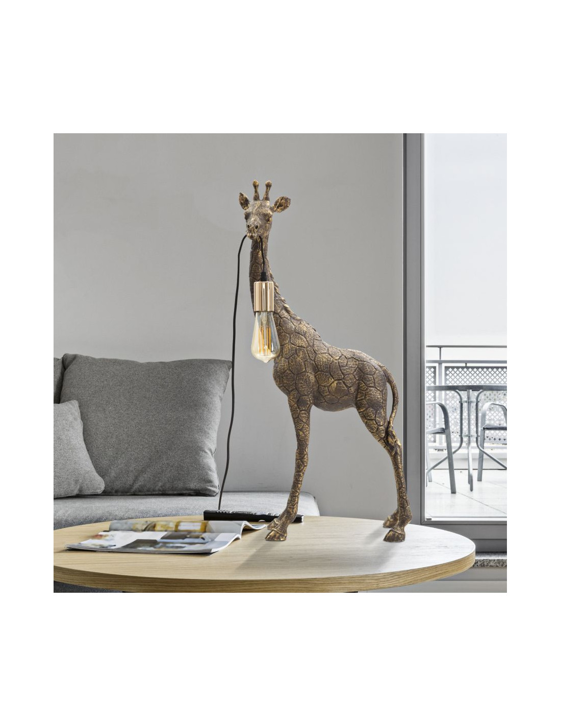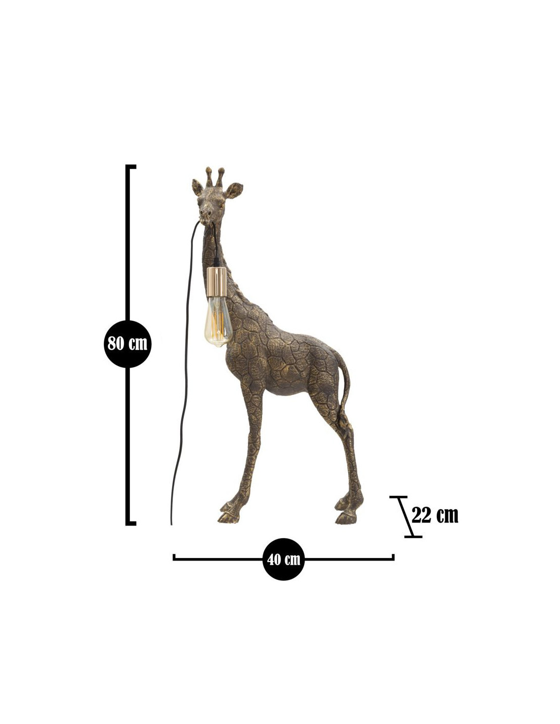 Lampe à poser originale XXL Girafe Hauteur 80 cm en Résine Marron Métal Doré Giraffa
