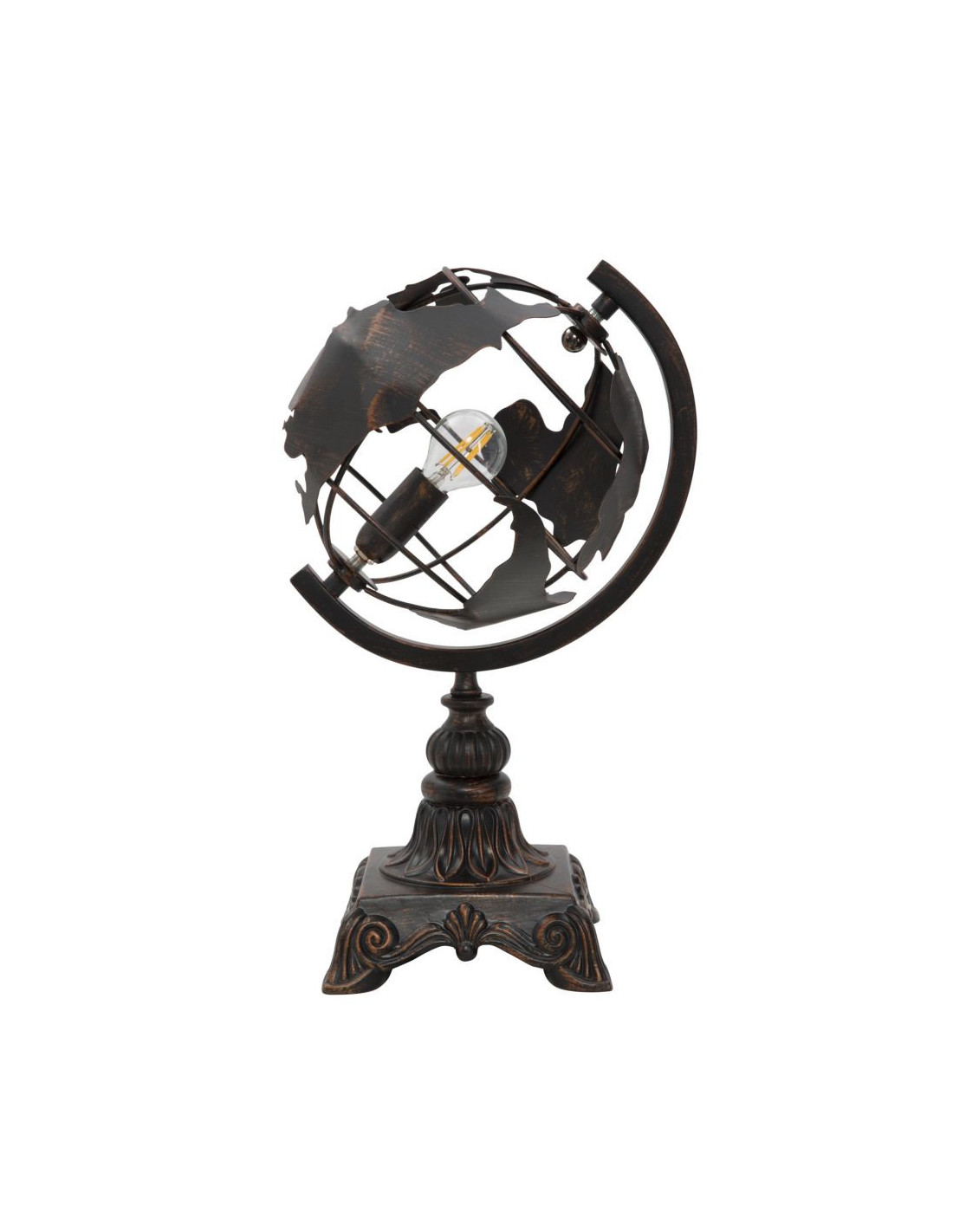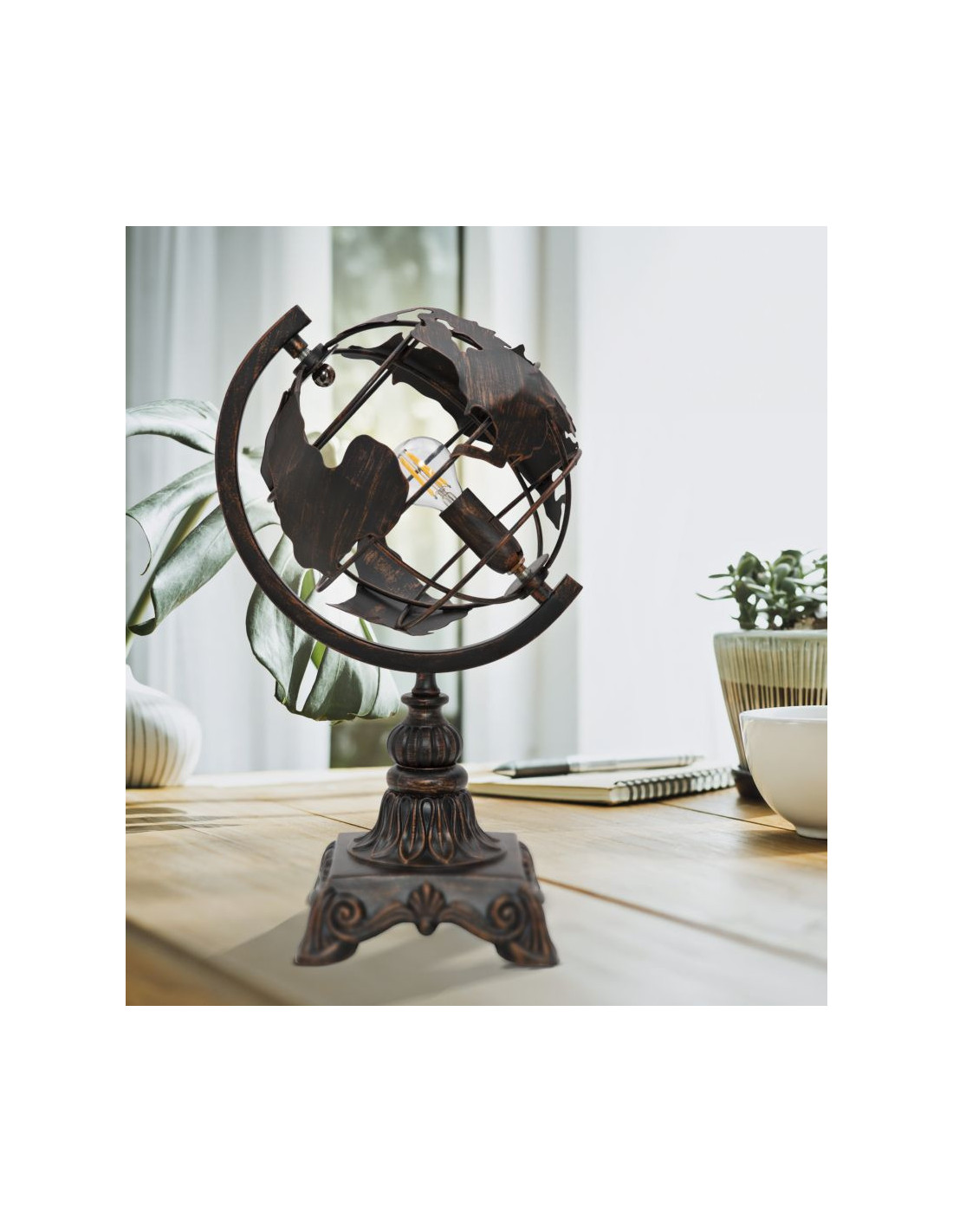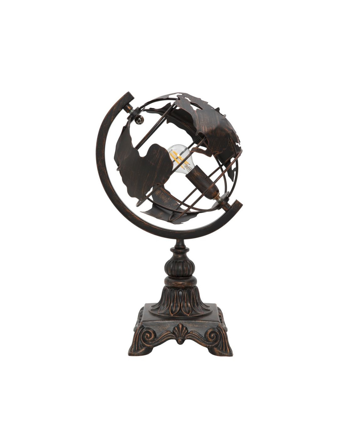 Lampe design industrielle chic Globe terrestre Métal Rouille World H 40 cm