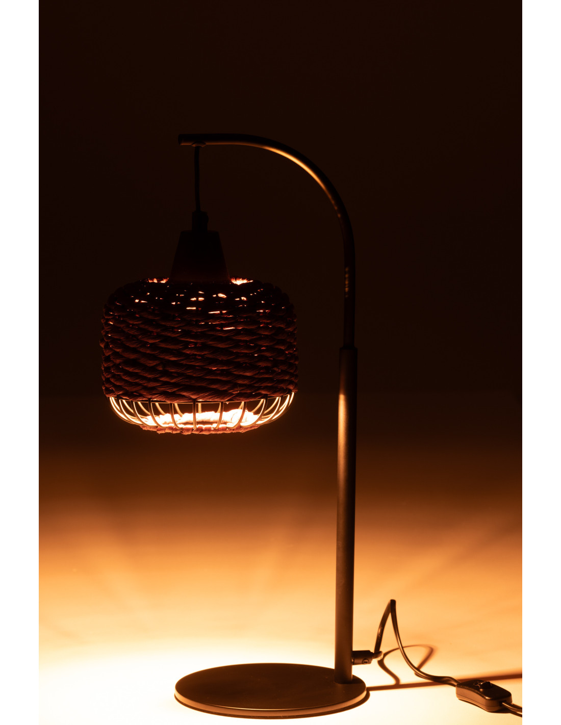 Lampe sur pied moderne africaine Hauteur 52 cm en Fibre Violet Tressé Métal Noir Lemu
