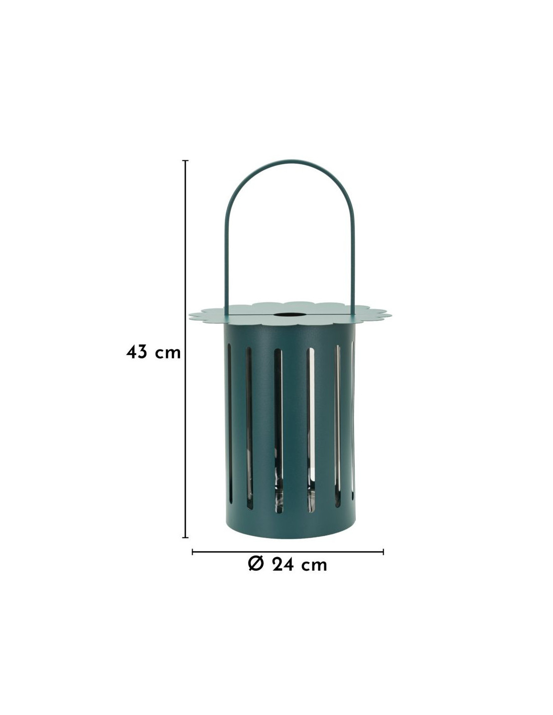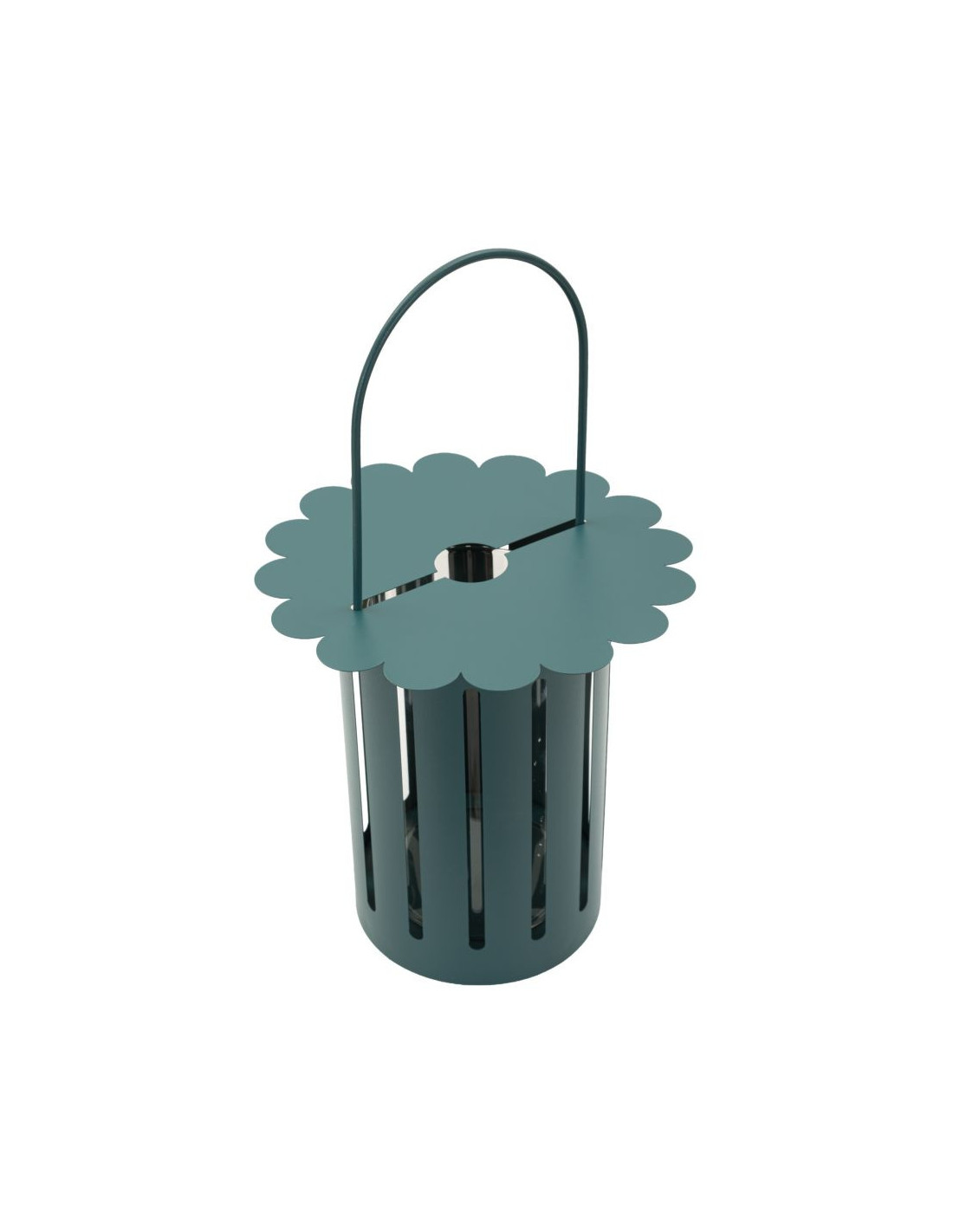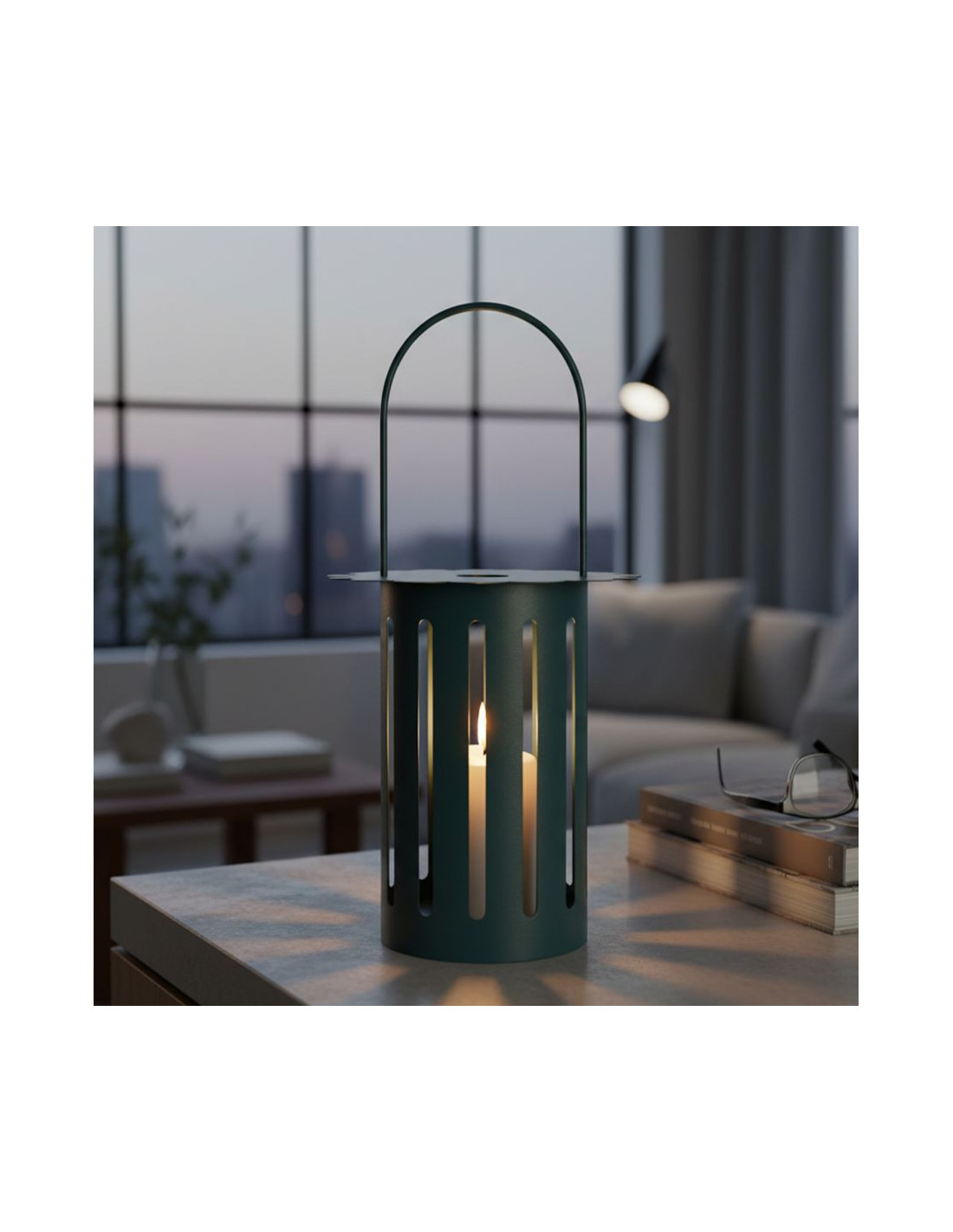 Lanterne design photophore Hauteur 43 cm Métal Bleu canard Motif lignes Verre Transparent Saturno