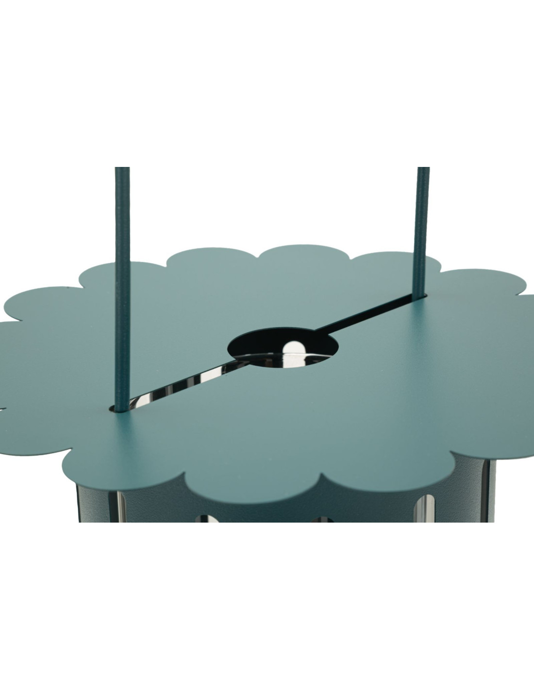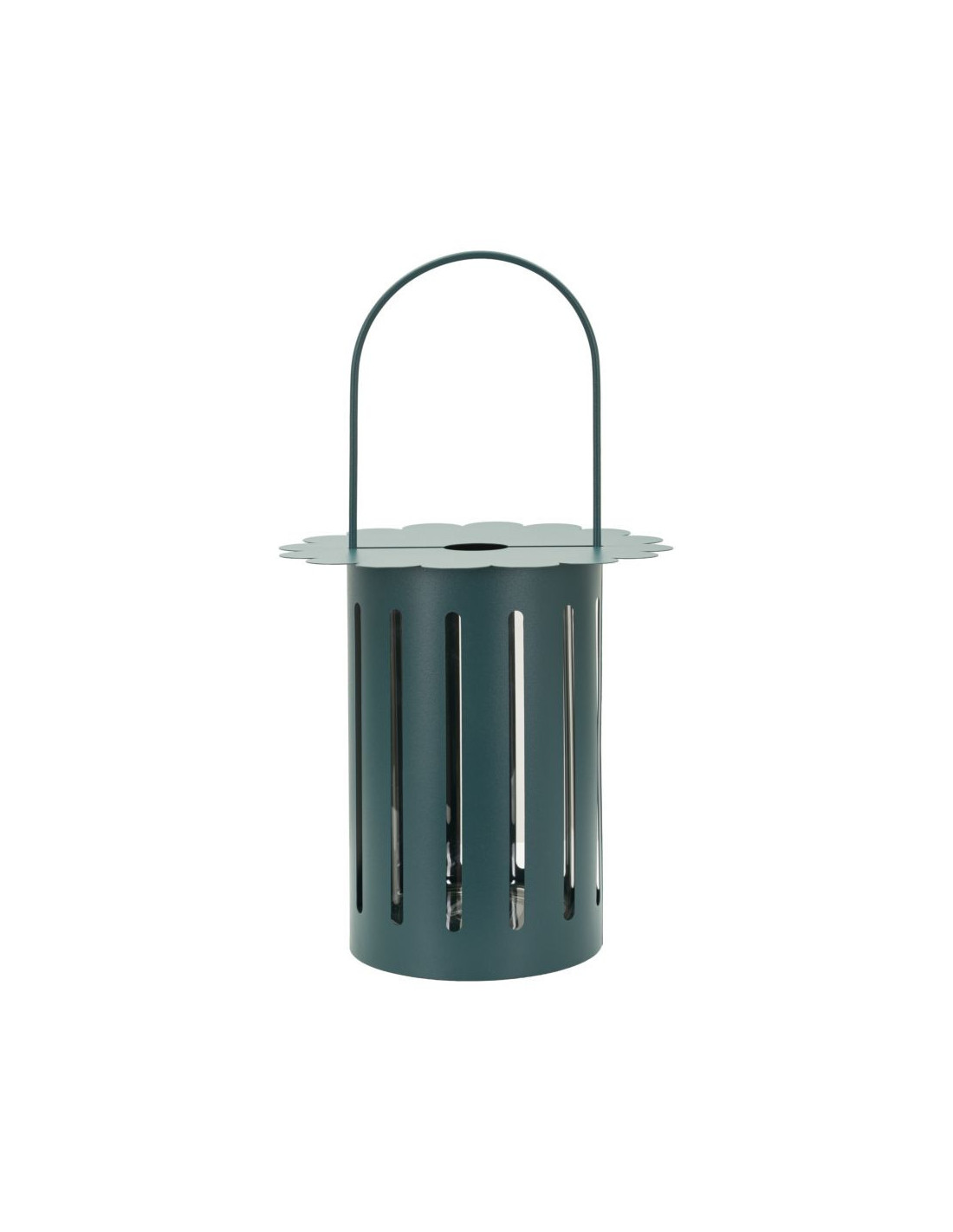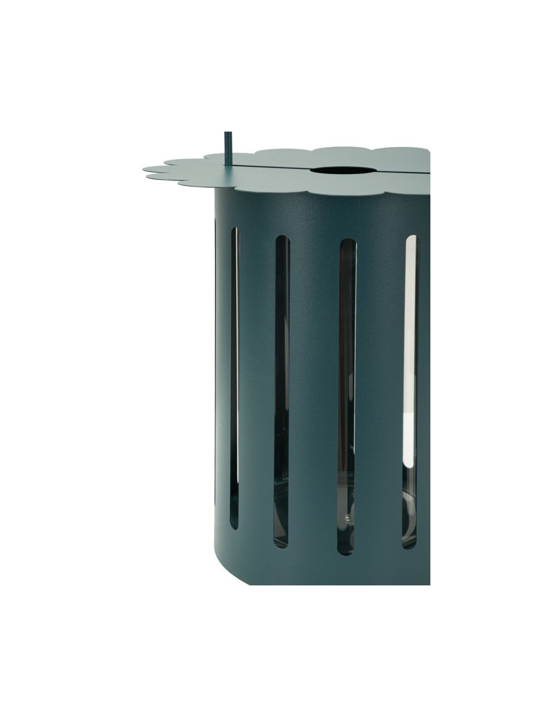 Lanterne design photophore Hauteur 43 cm Métal Bleu canard Motif lignes Verre Transparent Saturno