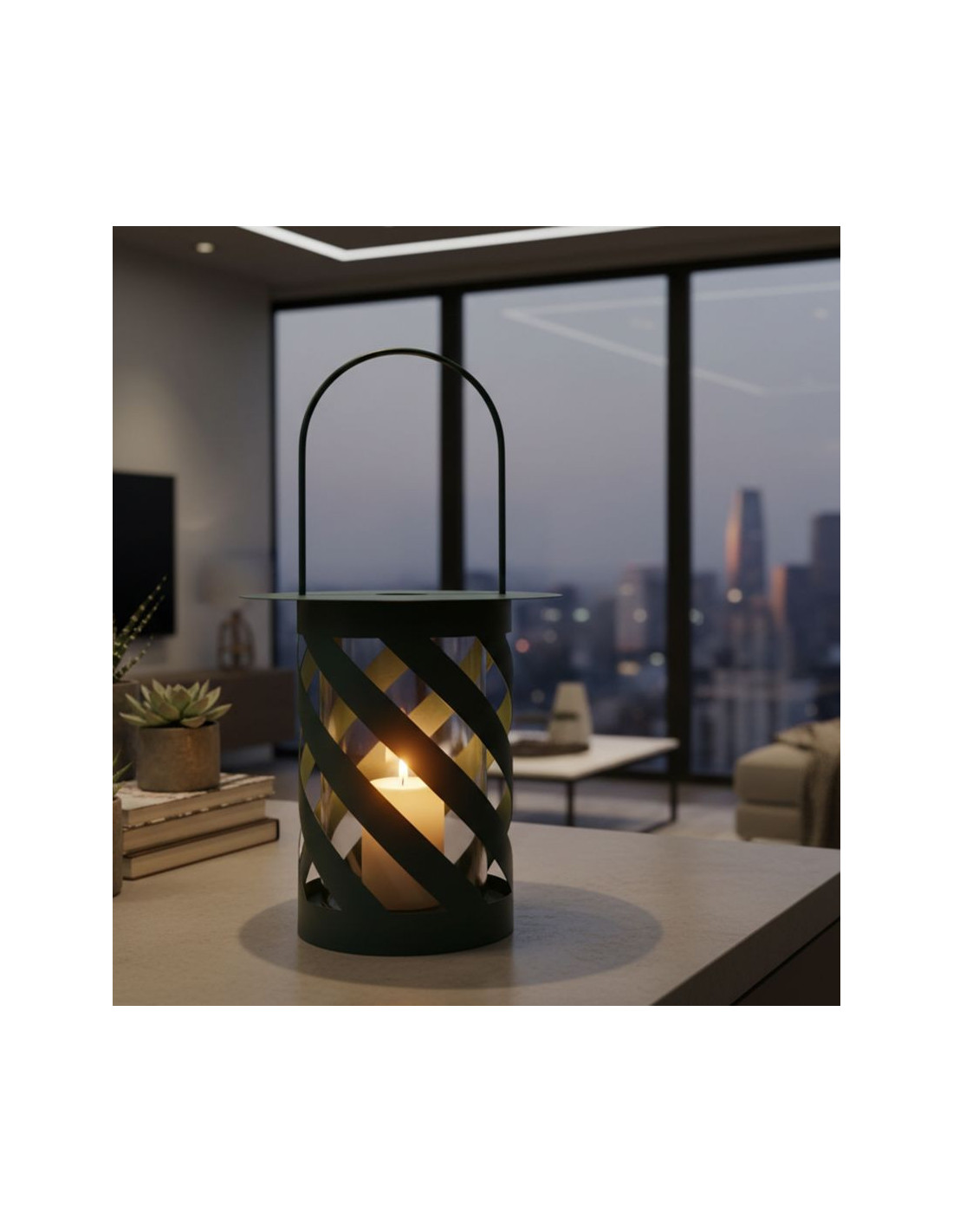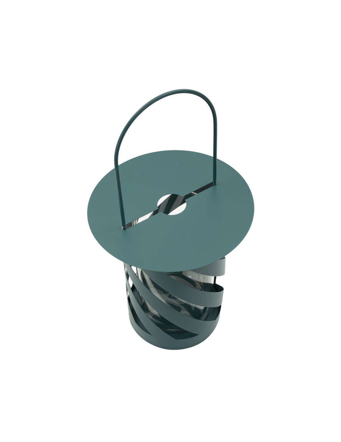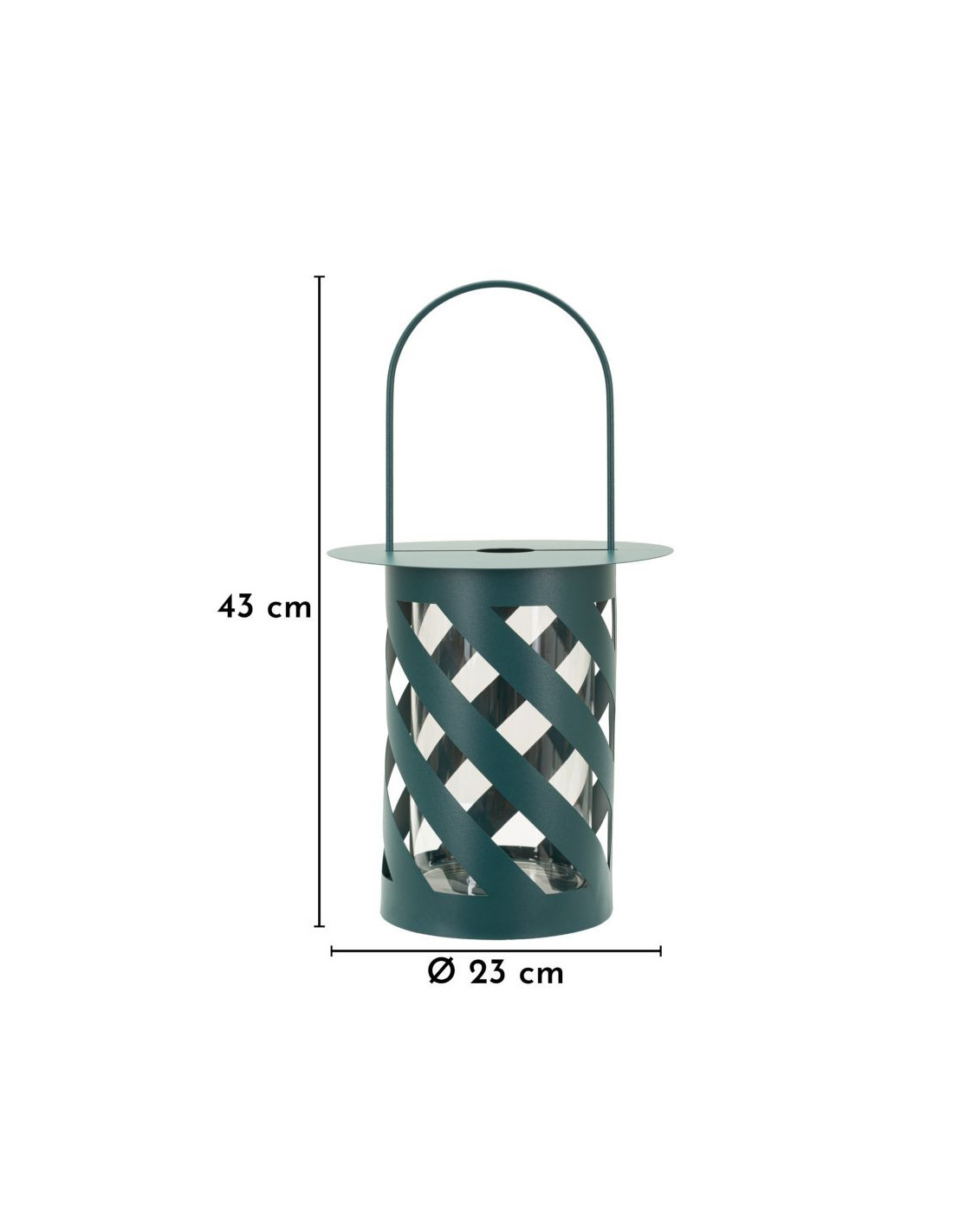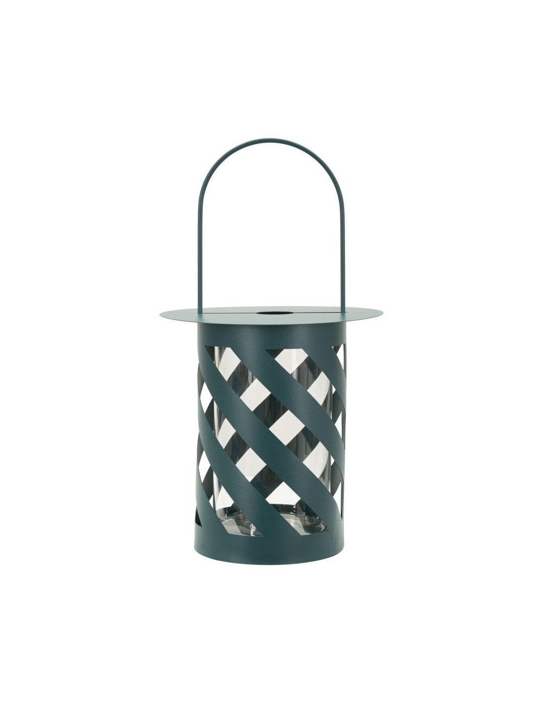 Lanterne design photophore Hauteur 43 cm Métal Bleu canard Motif tressé Verre Transparent Saturno