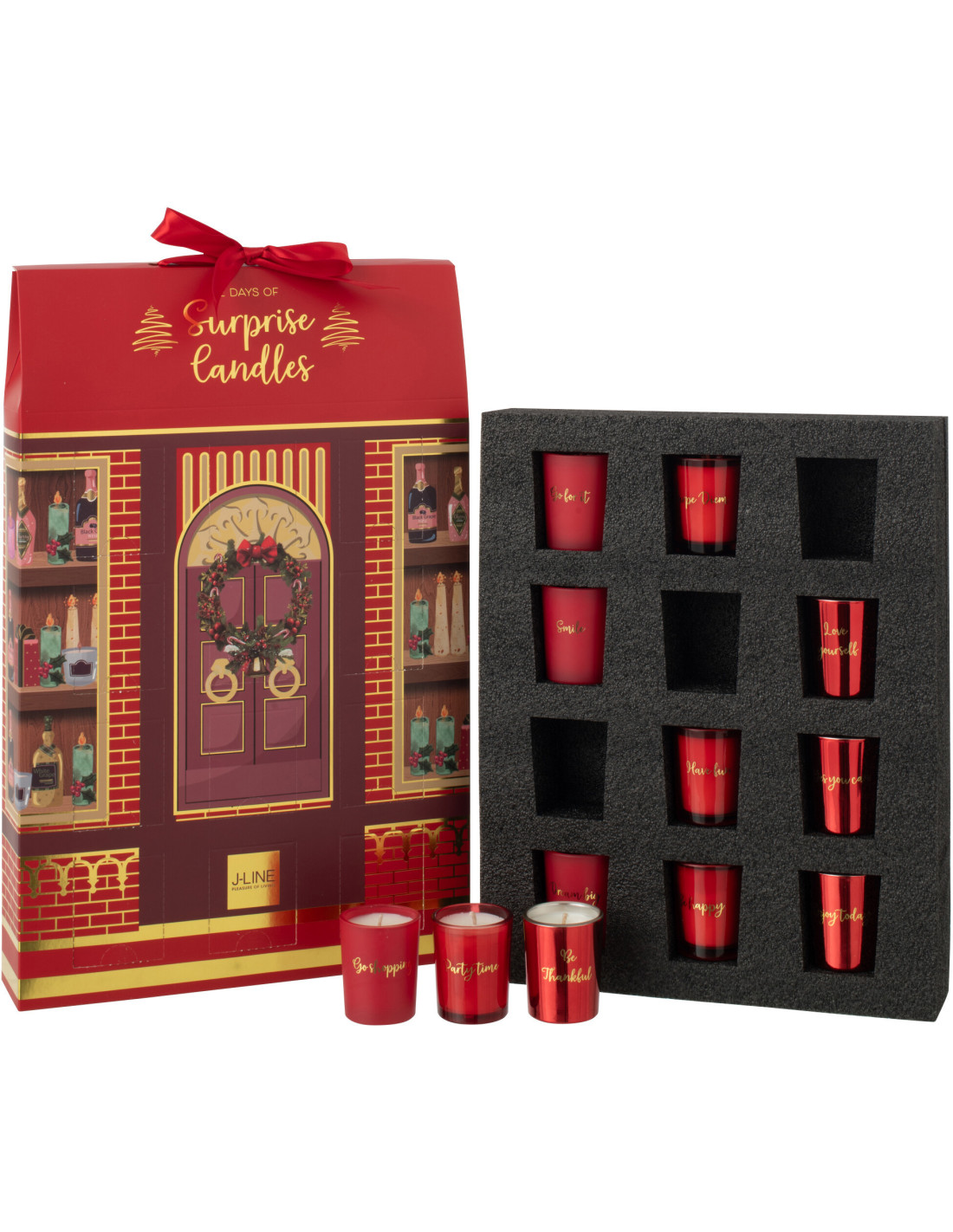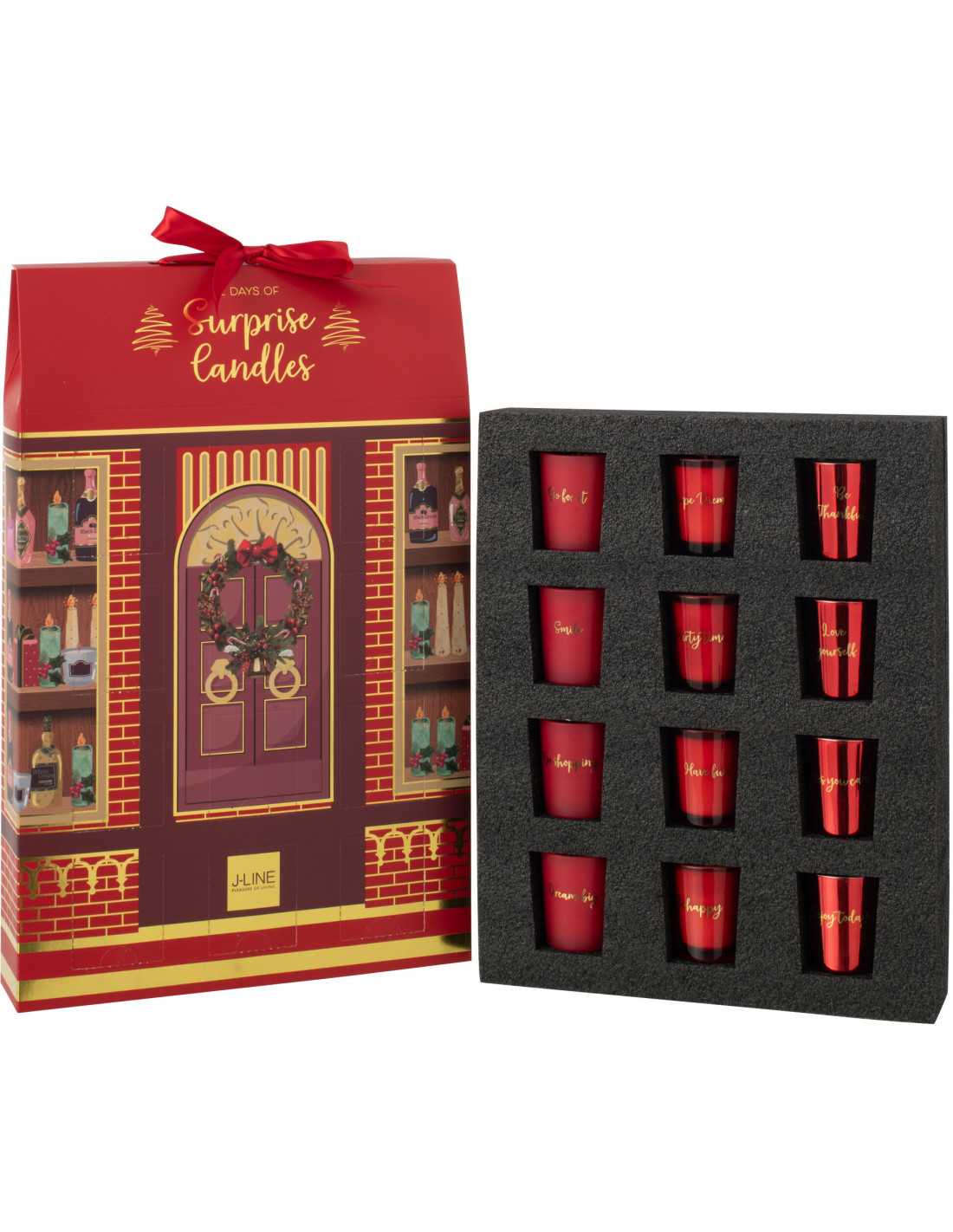 Lot de 12 bougies Parfums surprises 7 H Verre Rouge Cire Surprise Window