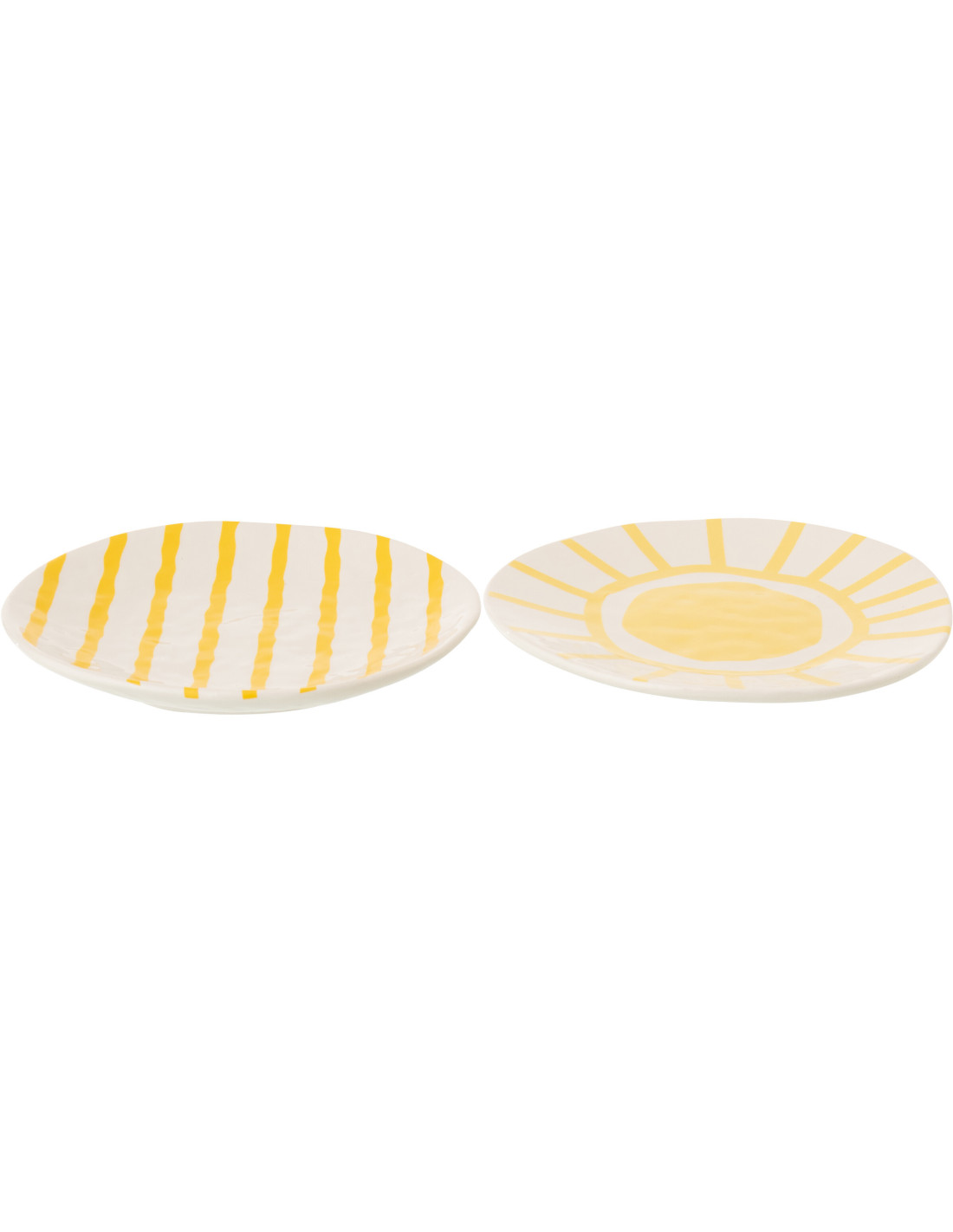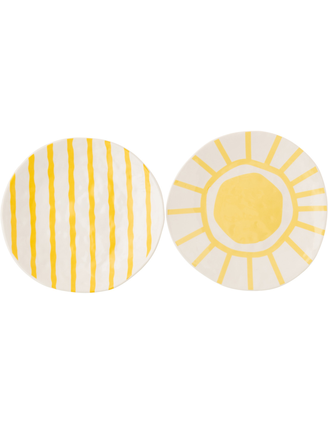 Lot de 2 Assiettes à dessert plates style méditerranéen Organique 23 cm Dolomite Blanc Jaune Motif lignes Solawa